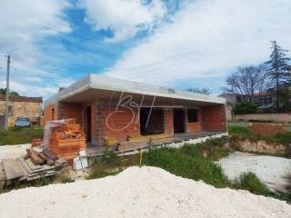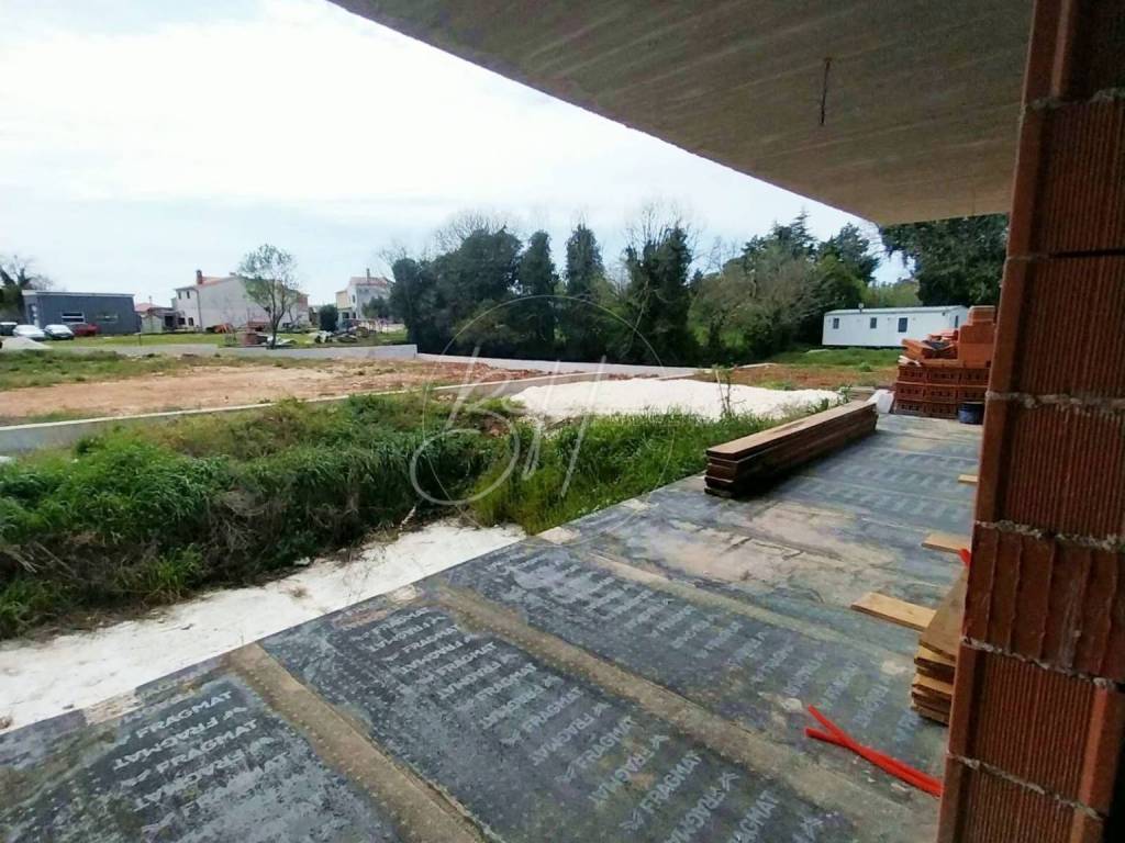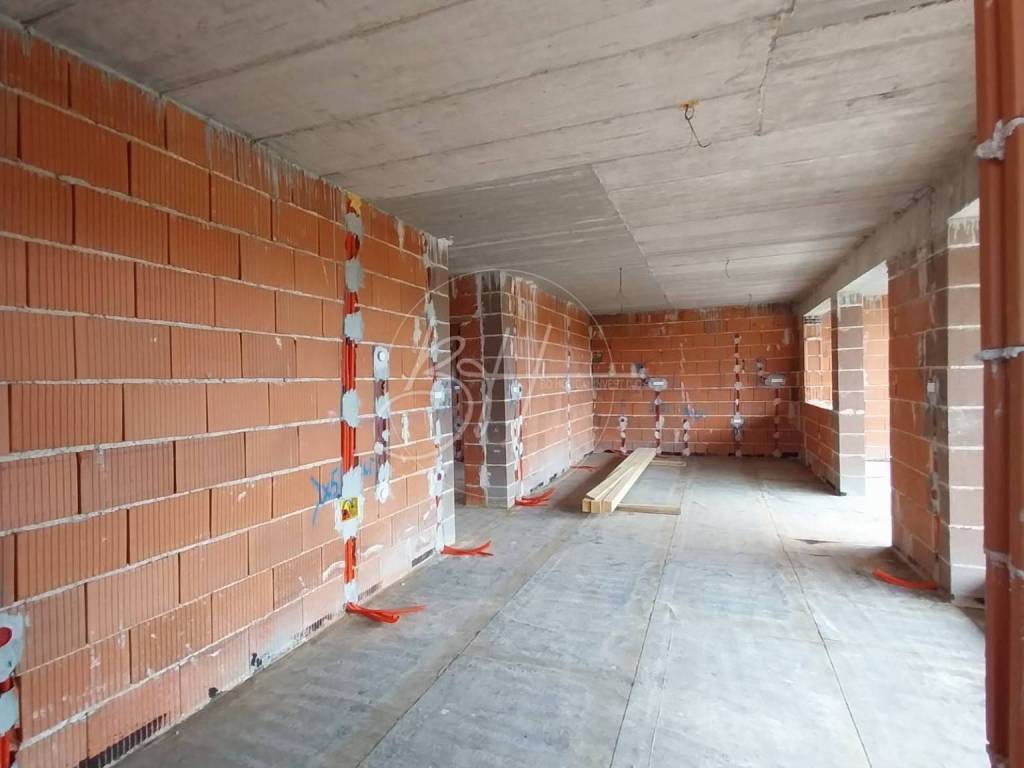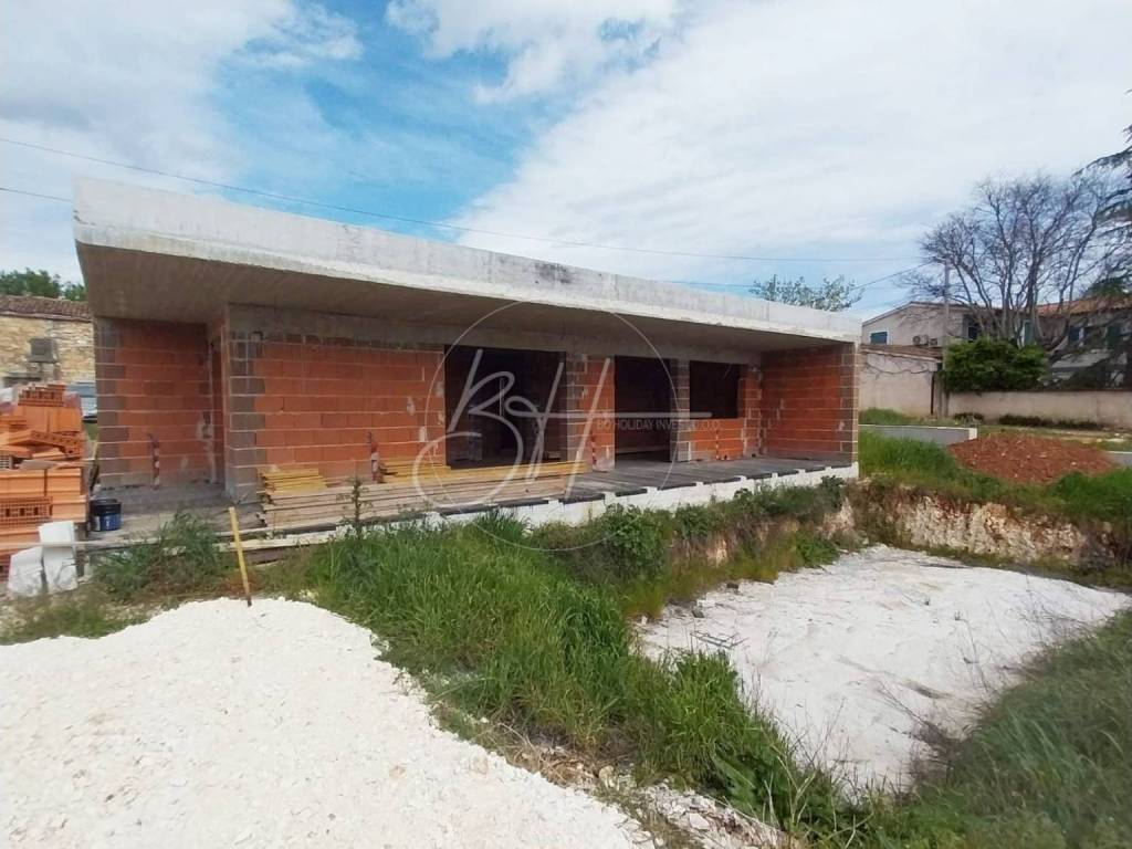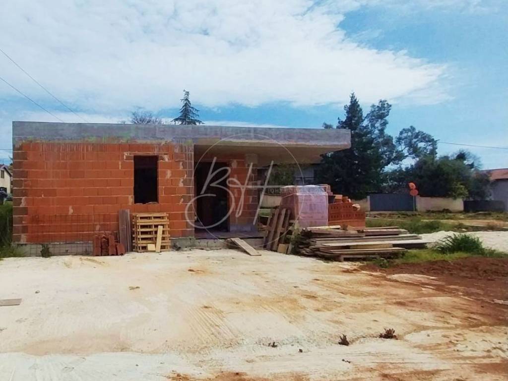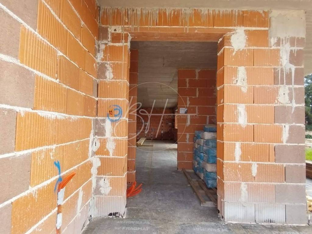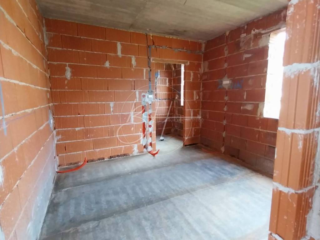A house for sale that is 150 m2 in the beginning of construction. The house will consist of a hallway, a kitchen with a dining room, a living room, two bedrooms each with their own bathroom, a toilet and a terrace.