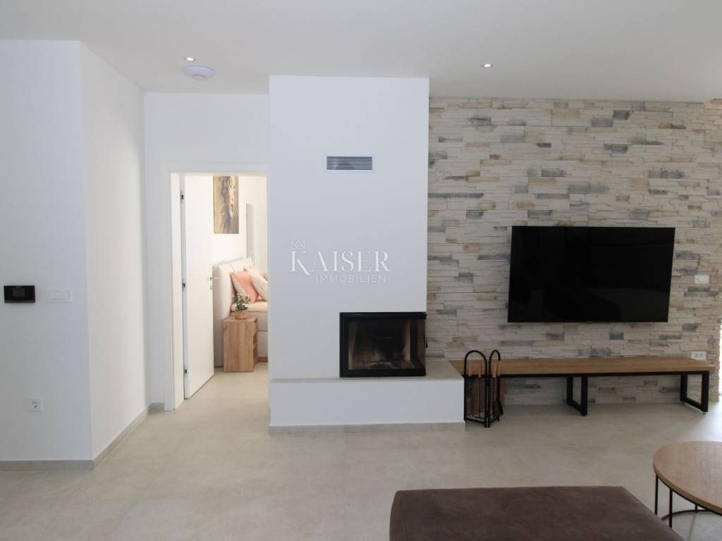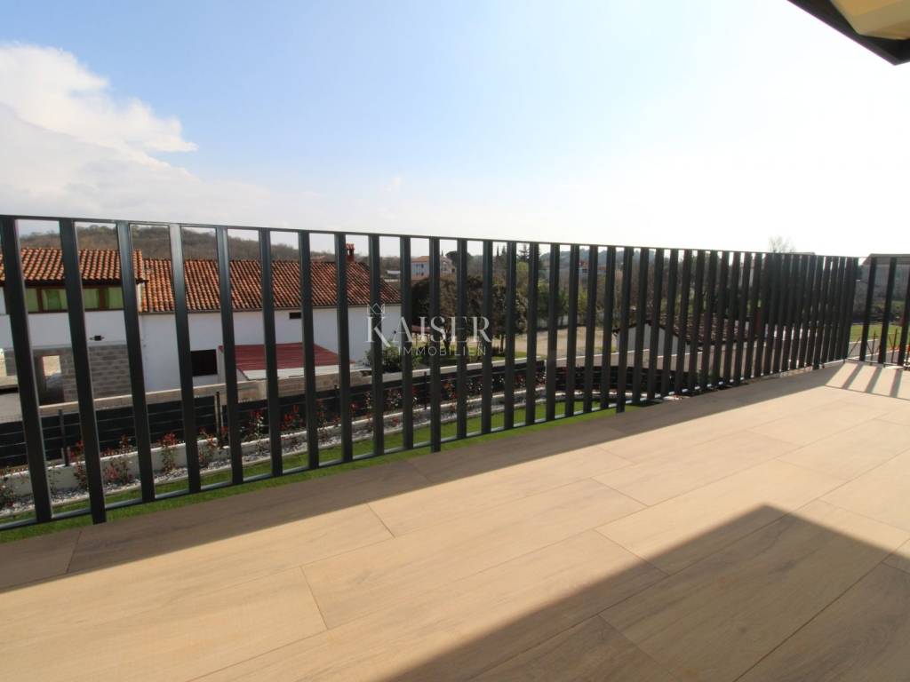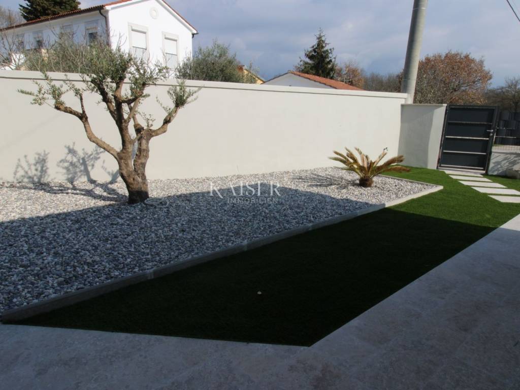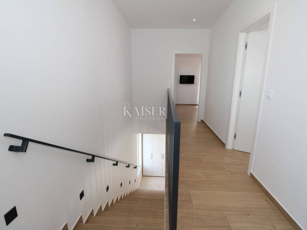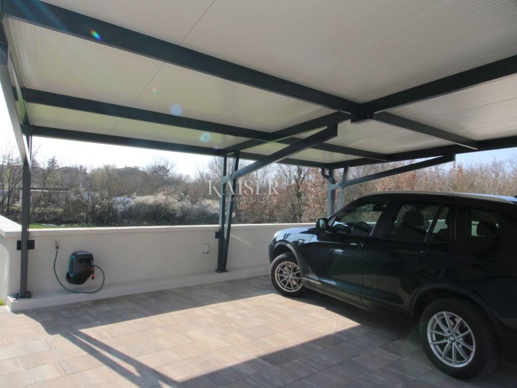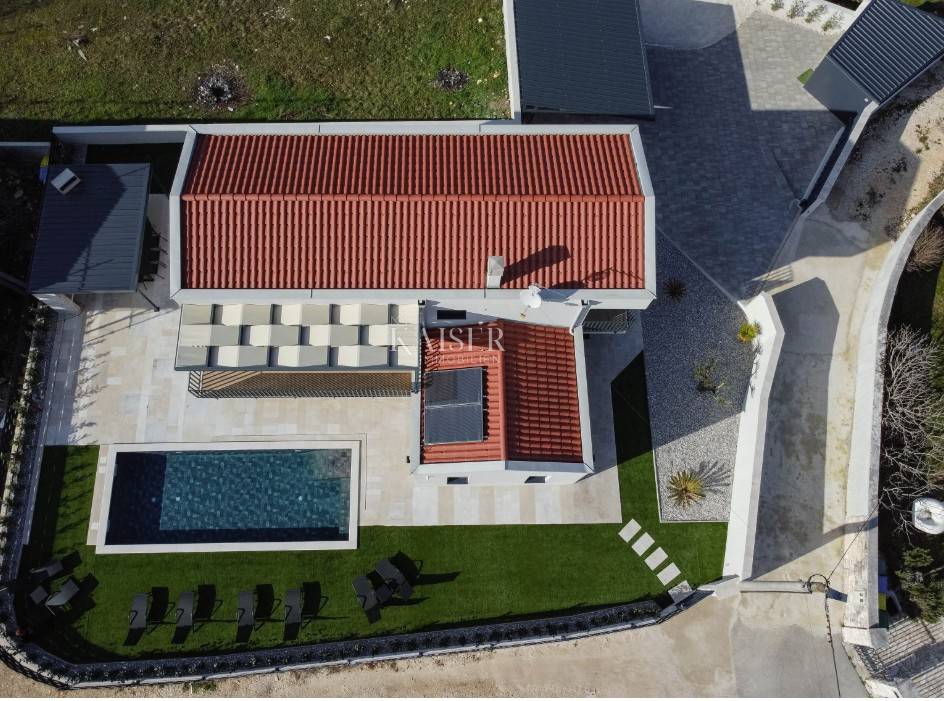 Kaiser Immobilien offers for sale an imposing villa on the west coast of Istria. The villa is located in a small indigenous village, only 14 km from the city of Poreč. All the most necessary facilities are located in the immediate vicinity of the villa, only 2 km from the villa. This beautiful property is only 3 km from the very famous Gulf of Istria, the Lim channel, which is widely known for its excellent shellfish farming and excellent fish restaurants. The property is located at the very edge of the settlement, no more construction will be done next to it, and it offers a wonderful view of nature that gives you warmth and peace. Due to its geographical location, this villa offers plenty of sun and wonderful light throughout the day. The villa consists of a ground floor and one floor. On the ground floor of the villa there is a spacious sunny living room, kitchen and dining room. What leaves an impression is the size and spaciousness of the open space effect of the living room, which offers the real pleasure of living. In the living room there is a modern wood-burning fireplace, lined with glass on the front, which will provide you with real pleasure and warmth in the winter months. The exit to the pool is connected through two balcony doors, of considerable size, which form two large glass walls. On the ground floor of the villa there is one bedroom with a bathroom, another additional bathroom and toilet for guests, and an area for washing and maintaining bed linen and laundry. This villa offers one specific feature, which is that the bedroom, bathroom and the entire lower part are very adaptable for people with disabilities. Considering the width of the passage and the flat surfaces, the space offers the possibility that a disabled person can easily move from the entrance to the interior of the house, if there is a need for it. Climbing upstairs, we pass through beautiful wooden stairs that connect us to the space upstairs. Upstairs we have three more bedrooms, each of which is connected with its own separate bathroom. Each bedroom is equipped in a special and different way, as are their bathrooms, so the space never seems monotonous or monotonous. All bedrooms have balcony access, and all balconies are covered, one is covered in pergola style. From the upper balconies there is a wonderful view of the pool, the village and the beautiful green nature in the distance. Each bedroom has a TV and air conditioning. Outside the villa there is a beautifully landscaped garden with a modern design, and a walkway that allows you to move around the property. On the outside, there is a machine room, that is, a technical room where there are swimming pool equipment, satellite program, video surveillance, antennas, and other technical systems. The engine room has its own separate entrance, in case you are not there, the technical inspection can be done without you. Outside the villa there is a covered outdoor kitchen with a gas grill. There is a table and 8 chairs in the outdoor summer kitchen. The area around the villa is paved and decorated with the addition of decorated parts with stones and decorative trees. The courtyard of the villa offers parking for 4 vehicles, two of which are covered. There is a charger for electric vehicles in the parking lot. In the courtyard there is a 20 m2 garden house for storing tools and other necessities. The main entrance to the yard is opened by remote control. On the roof there are solar panels for heating water and a boiler of 400 liters. The heating of the villa is underfloor heating via a heat pump. The villa has 17 collectors with electricity of 7.4 kw. The size of the pool is 9x4, it has built-in installations for the possibility of heating the pool if someone wants it. There are mosquito nets on all windows to protect against mosquitoes and possible insects in the summer. The blinds are electric. The villa has a water purifier to clean the water, so there is no scale on the sanitary ware and glasses. There is a possibility to park two more vehicles outside the villa. The villa is sold fully furnished with all appliances, dishes and furniture as shown in the pictures. Distance of the property to the city: Poreč - Pula Airport, 43 km Poreč - Ljubljana, 162 km Poreč - Vienna, 544 km Poreč - Prague, 868 km Poreč - Munich, 565 km If you are planning to start your new life in Istria or are looking for a property that to be used as a tourist rental, then this beautiful, very modern villa is just for you. Contact the agent at phone number 00385 923782803, or at the email address: ivana@kaiser-immobilien.hr and allow us to start your new life in Istria together with you. Agency commission is 3% + VAT.