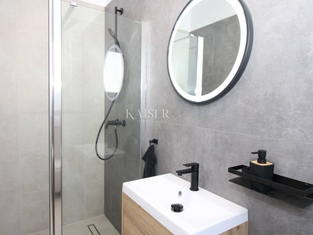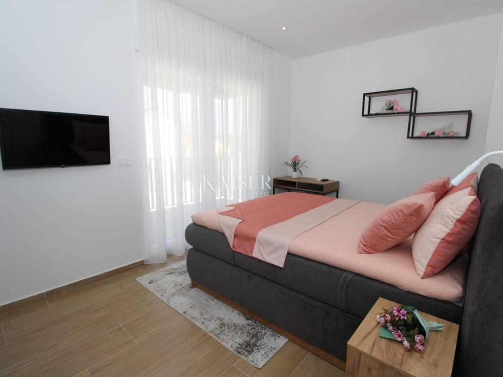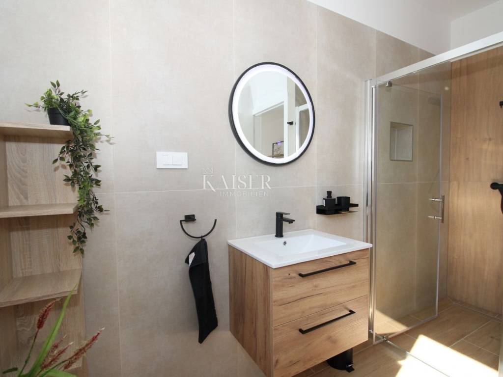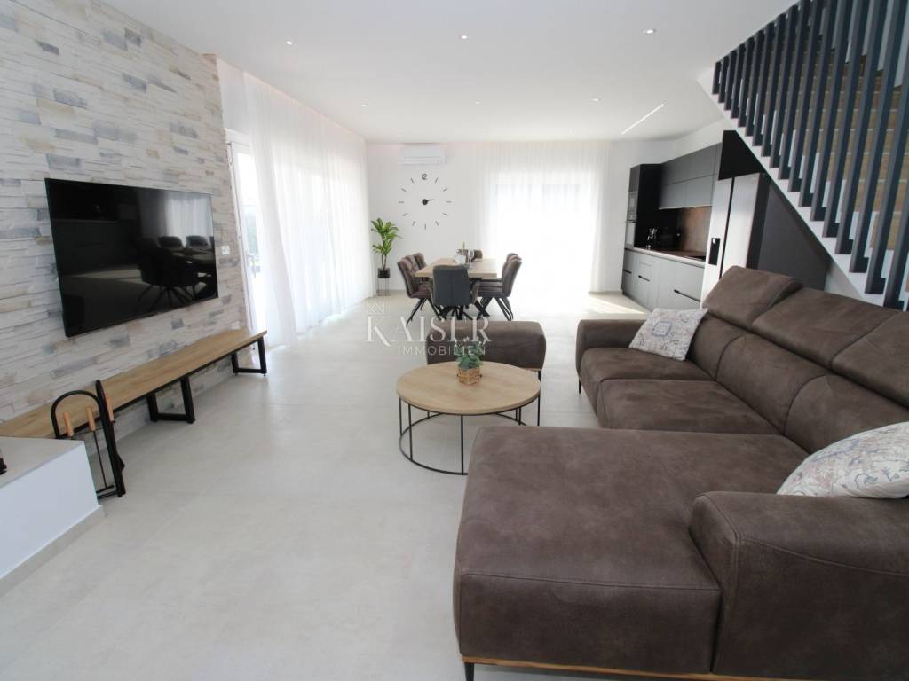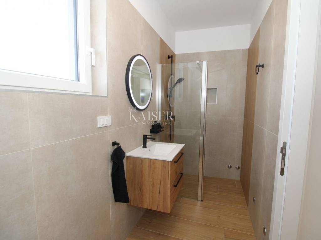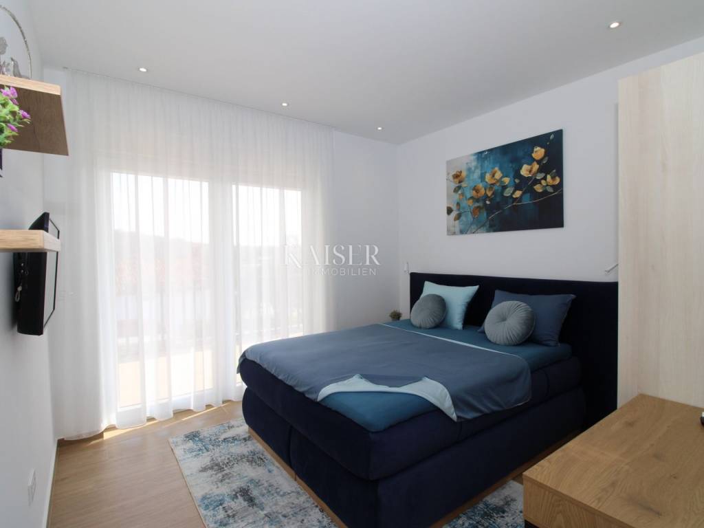 Kaiser Immobilien offers for sale an imposing villa on the west coast of Istria. The villa is located in a small indigenous village, only 14 km from the city of Poreč. All the most necessary facilities are located in the immediate vicinity of the villa, only 2 km from the villa. This beautiful property is only 3 km from the very famous Gulf of Istria, the Lim channel, which is widely known for its excellent shellfish farming and excellent fish restaurants. The property is located at the very edge of the settlement, no more construction will be done next to it, and it offers a wonderful view of nature that gives you warmth and peace. Due to its geographical location, this villa offers plenty of sun and wonderful light throughout the day. The villa consists of a ground floor and one floor. On the ground floor of the villa there is a spacious sunny living room, kitchen and dining room. What leaves an impression is the size and spaciousness of the open space effect of the living room, which offers the real pleasure of living. In the living room there is a modern wood-burning fireplace, lined with glass on the front, which will provide you with real pleasure and warmth in the winter months. The exit to the pool is connected through two balcony doors, of considerable size, which form two large glass walls. On the ground floor of the villa there is one bedroom with a bathroom, another additional bathroom and toilet for guests, and an area for washing and maintaining bed linen and laundry. This villa offers one specific feature, which is that the bedroom, bathroom and the entire lower part are very adaptable for people with disabilities. Considering the width of the passage and the flat surfaces, the space offers the possibility that a disabled person can easily move from the entrance to the interior of the house, if there is a need for it. Climbing upstairs, we pass through beautiful wooden stairs that connect us to the space upstairs. Upstairs we have three more bedrooms, each of which is connected with its own separate bathroom. Each bedroom is equipped in a special and different way, as are their bathrooms, so the space never seems monotonous or monotonous. All bedrooms have balcony access, and all balconies are covered, one is covered in pergola style. From the upper balconies there is a wonderful view of the pool, the village and the beautiful green nature in the distance. Each bedroom has a TV and air conditioning. Outside the villa there is a beautifully landscaped garden with a modern design, and a walkway that allows you to move around the property. On the outside, there is a machine room, that is, a technical room where there are swimming pool equipment, satellite program, video surveillance, antennas, and other technical systems. The engine room has its own separate entrance, in case you are not there, the technical inspection can be done without you. Outside the villa there is a covered outdoor kitchen with a gas grill. There is a table and 8 chairs in the outdoor summer kitchen. The area around the villa is paved and decorated with the addition of decorated parts with stones and decorative trees. The courtyard of the villa offers parking for 4 vehicles, two of which are covered. There is a charger for electric vehicles in the parking lot. In the courtyard there is a 20 m2 garden house for storing tools and other necessities. The main entrance to the yard is opened by remote control. On the roof there are solar panels for heating water and a boiler of 400 liters. The heating of the villa is underfloor heating via a heat pump. The villa has 17 collectors with electricity of 7.4 kw. The size of the pool is 9x4, it has built-in installations for the possibility of heating the pool if someone wants it. There are mosquito nets on all windows to protect against mosquitoes and possible insects in the summer. The blinds are electric. The villa has a water purifier to clean the water, so there is no scale on the sanitary ware and glasses. There is a possibility to park two more vehicles outside the villa. The villa is sold fully furnished with all appliances, dishes and furniture as shown in the pictures. Distance of the property to the city: Poreč - Pula Airport, 43 km Poreč - Ljubljana, 162 km Poreč - Vienna, 544 km Poreč - Prague, 868 km Poreč - Munich, 565 km If you are planning to start your new life in Istria or are looking for a property that to be used as a tourist rental, then this beautiful, very modern villa is just for you. Contact the agent at phone number 00385 923782803, or at the email address: ivana@kaiser-immobilien.hr and allow us to start your new life in Istria together with you. Agency commission is 3% + VAT.