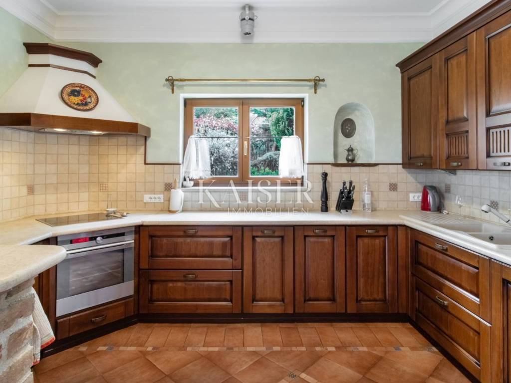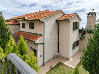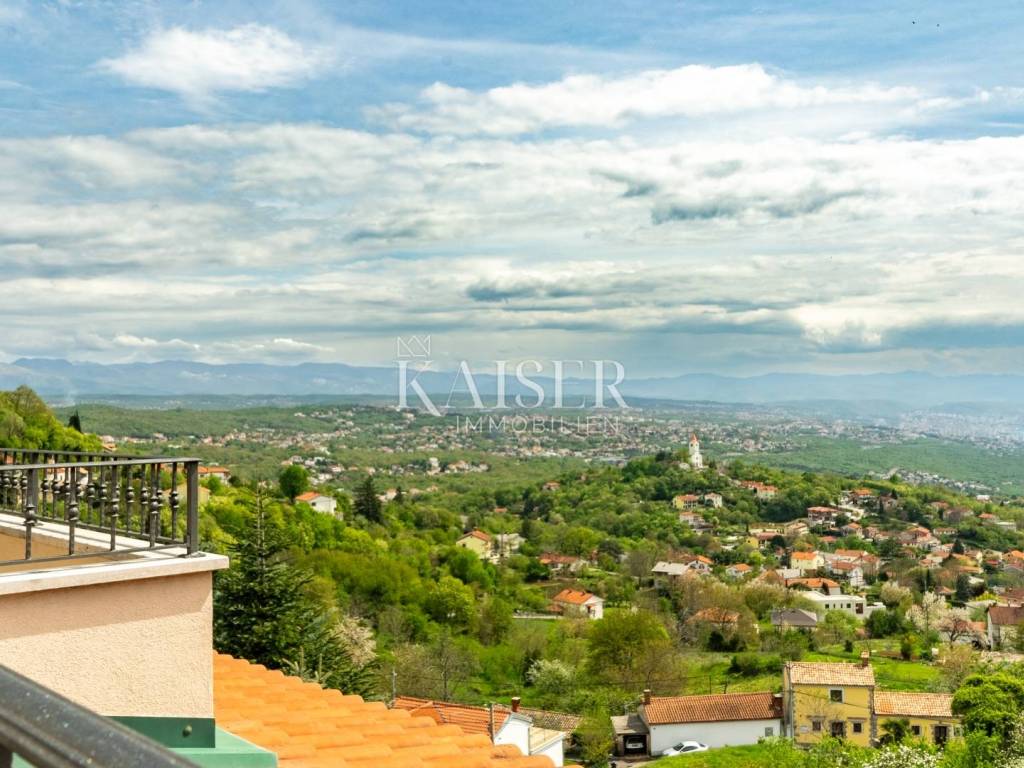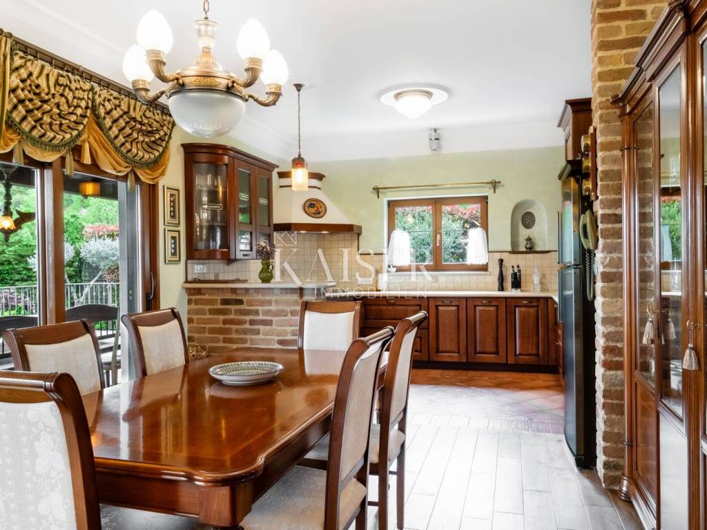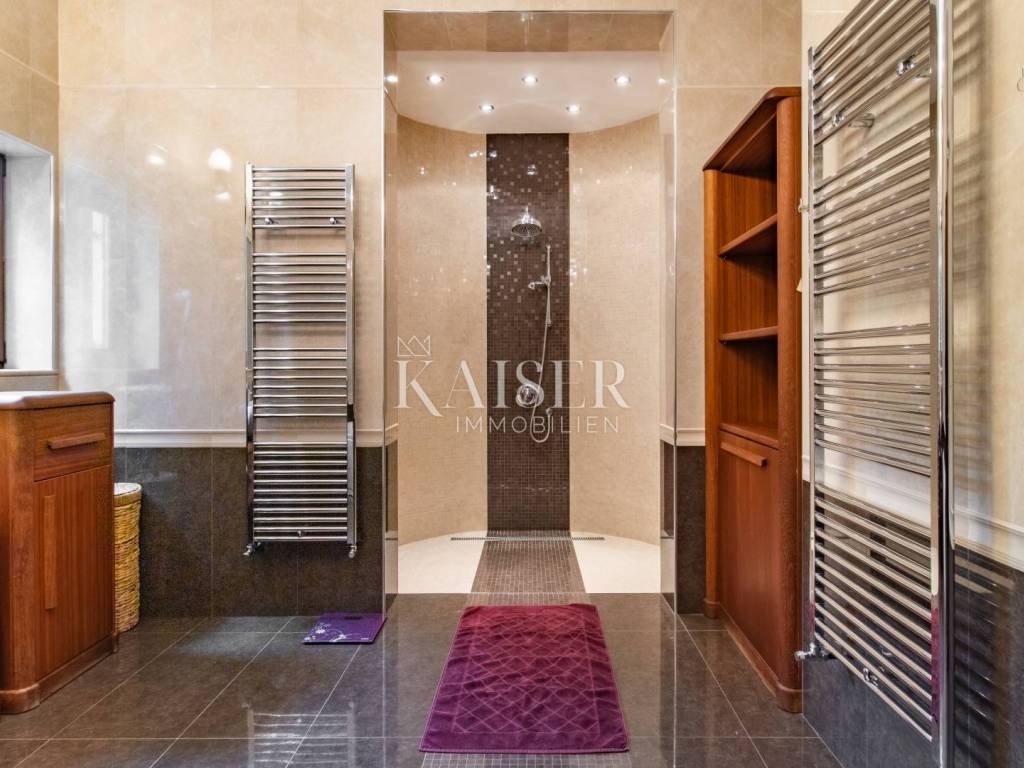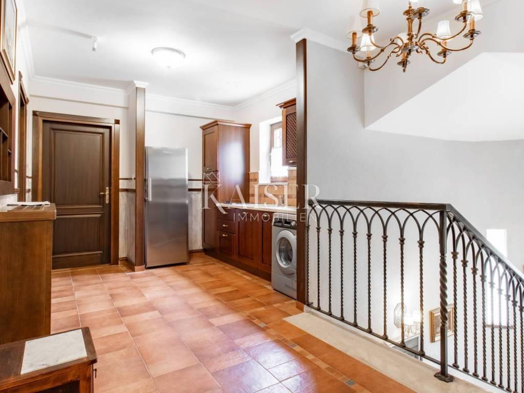 Below the slopes of Učka gora, surrounded by the nature park Lisinska šuma, on several natural terraces with a view towards the sea, is the villa property presented to you by Kaiser-immobilien Opatija. A luxuriously furnished villa on three floors with a garage, a swimming pool, two large outdoor grills, sheltered by a natural hedge and the natural slope of the terrain on an area of 1400 m2, offers comfort, peace and an open view of the sea. Upon entering the ground floor of the villa, a large area of the living room, dining room and kitchen opens in front of us, with an exit from each room to the terrace facing the sea, where there is an outdoor grill, with a large table for family and other gatherings. The living room, which is open and spacious, is dominated by a crocodile leather sofa with a Persian carpet. On the same floor, there is a master bedroom with a dressing room and a large bathroom belonging to it. There are two additional rooms on the same floor. Upstairs there are 4 bedrooms, each with its own bathroom, kitchen and living room. All rooms have a sea view and access to the terrace. In the basement there is a large room for social gatherings, a massage room, a Finnish sauna, a bathroom with a shower, a study room with an auxiliary area, a home cinema equipped with the highest quality speakers and armchairs for enjoyment and relaxation, as well as a room - a wine cellar with a natural temperature for preserving wine and food. The space is connected to a terrace, an outdoor grill and a swimming pool. The grounds of the villa are ennobled and maintained with Mediterranean plants and greenery. The garage, which is at the height of the first floor, has a freight elevator that can be used to go down to the entrance to the villa. The villa for enjoyment and rest is only a 10-minute drive from Opatija and the first beaches for swimming. Opatija and Matulji center ten minutes by car, Rijeka approx. 30 minutes, Trieste approx. 1h, 30 min, Zagreb approx. 1h, 30 min, Ljubljana approx. 2 h, Krk airport approx. 50 min. For additional information and a tour, contact your agent: Eli Lovko, mob: 0916133776; eli@kaiser-immobilien.hr Agency commission is 3% + VAT