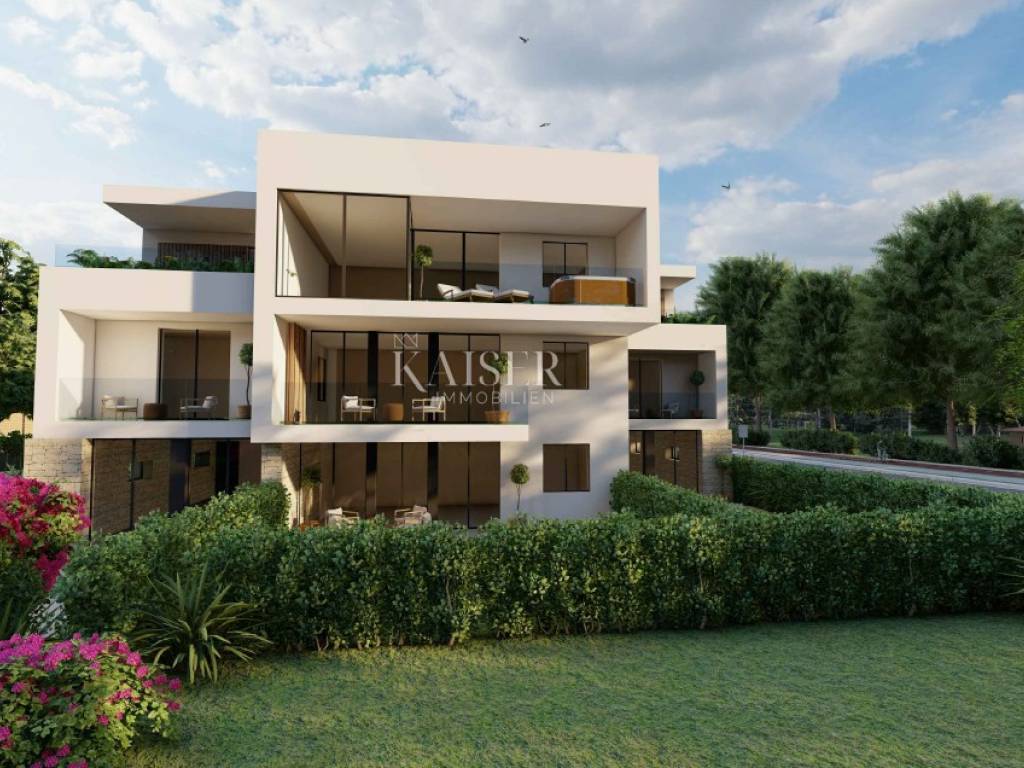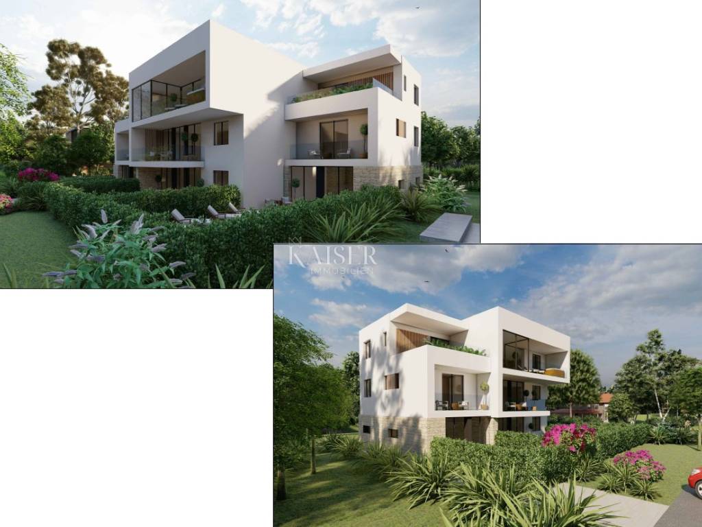 Kaiser Immobilien offers for sale a modern three-story apartment under construction, in one of the quietest parts of Poreč, ideal for a comfortable family life. This apartment has its own special feature, which is that the apartment, due to its contents, is more like a private house than an apartment. Since it has its own entrance, it has its own garden and it consists of the ground floor, first and second floor. The apartment is located in a part of the city of Poreč, only 800 meters from the sea and the beach, in a very popular and beautiful location, which is equally interesting for residents of that part of the city and tourists who return regularly every year and enjoy the beauty of the village and tourist activities. This apartment is located in a new modern building with a total of 5 residential units, very modern construction and attractive design. The building has an elevator. The apartment has a net size of 105.73 m2, while the gross size is 141.38 m2. On the ground floor of the apartment there is a living room, kitchen, dining room, entrance, guest toilet and laundry room, storage room and staircase, and a garden of approx. 50 m2. On the first floor there are 2 bedrooms, 2 bathrooms, a hallway and a staircase and a covered terrace of 7.05 m2. On the second floor there is 1 bedroom and 1 bathroom, a hallway, a covered terrace of 9.40 m2 on which a jacuzzi can be installed, and 1 uncovered terrace of 10.81 m2. The apartment has 1 parking space in front of the building. The planned completion of construction and occupancy is 2025. Technical characteristics: Underfloor heating throughout the apartment for maximum comfort Four air conditioners (living room and bedrooms) for an ideal temperature throughout the year Anti-burglary entrance door for additional security PVC joinery with built-in mosquito nets Private garden of approx. 50 m² - a perfect place to relax or gardening Private parking space in front of the building Distance of the property to the city: Poreč - Pula Airport, 45 km Poreč - Ljubljana, 162 km Poreč - Vienna, 544 km Poreč - Prague, 868 km Poreč - Munich, 565 km If you are looking for a new and modern apartment in a good and safe location, contact us with confidence on the phone number 00385 923782803, or on the email address: ivana@kaiser-immobilien.hr.