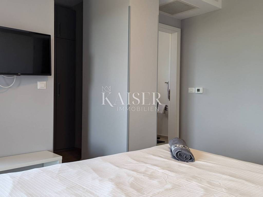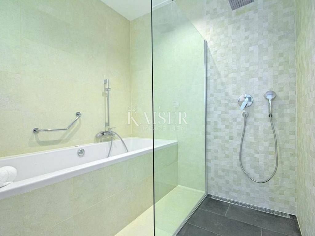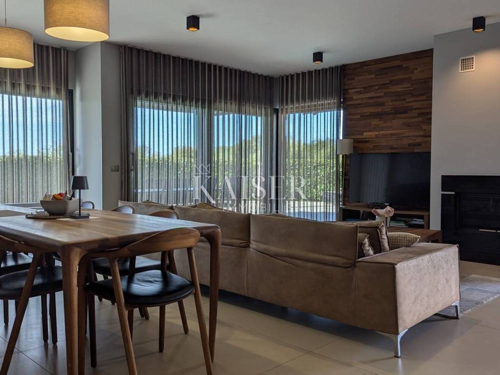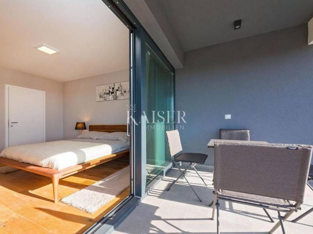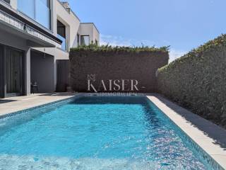 Kaiser Immobilien offers for sale a unique opportunity, a luxurious and furnished villa with a swimming pool and sauna in a top location in the city of Poreč. The villa is only 500 m from the sea and the first beaches, on the border of the green belt with a beautiful view of the sea and the nature around it. It is located in a part of the city of Poreč only 1 km from the center, and close to all the necessary amenities for life. This villa, with the possibility of renting, due to its extraordinary location, primarily offers a luxurious and comfortable life in a great location in a beautiful settlement. The villa is adorned with a unique modern look, a very beautiful architectural design with a combination of modern and rustic lines. In addition to the beautiful shape, the special feature that makes it stand out is certainly the addition of stone and wooden elements, all of which is surrounded by glass railings with special lighting fixtures that make the villa luxurious and modern. What left an impression on me, in addition to all of the above, is the light that penetrates the space throughout the day, because the concept of the villa is oriented in such a way that throughout the day the villa absorbs a lot of sunlight, which gives you a pleasant feeling in every room you are in. The villa consists of a ground floor and first floor, and a spa area in the basement of the villa. On the ground floor of the villa there is a living room, kitchen and dining room and a guest toilet. The entire concept of the villa is based on an open space system and offers you a beautiful view of the pool and garden from all rooms through large glass walls. On the first floor of the villa there are three bright bedrooms with their own bathrooms and exits to the balcony where there is a unique view of the sea. The villa is connected with very modern wooden stairs that lead you to the basement of the villa where there is a spa area, i.e. a sauna, a relaxation area and a fitness studio. On the roof of the villa, the space is used very economically and provides us with an additional oasis of relaxation with a jacuzzi tub and a sunbathing area from which there is an incredible view. The courtyard of the villa is decorated very elegantly, with walkways, green plants and the occasional beautiful Istrian olive tree. The size of the courtyard is 393 m2. The villa has 2 parking spaces. The entire villa is decorated very luxuriously and elegantly and is being sold as such. This villa is located in a great location and as such is a unique opportunity to buy. Distance from the property to the town: Poreč - Pula Airport, 45 km Poreč - Ljubljana, 162 km Poreč - Vienna, 544 km Poreč - Prague, 868 km Poreč - Munich, 565 km If you are looking for your perfect villa, please contact us with confidence at the phone number 00385 923782803, or at the email address: ivana@kaiser-immobilien.hr. The agency fee is 3% + VAT, and is charged with the first legal act.