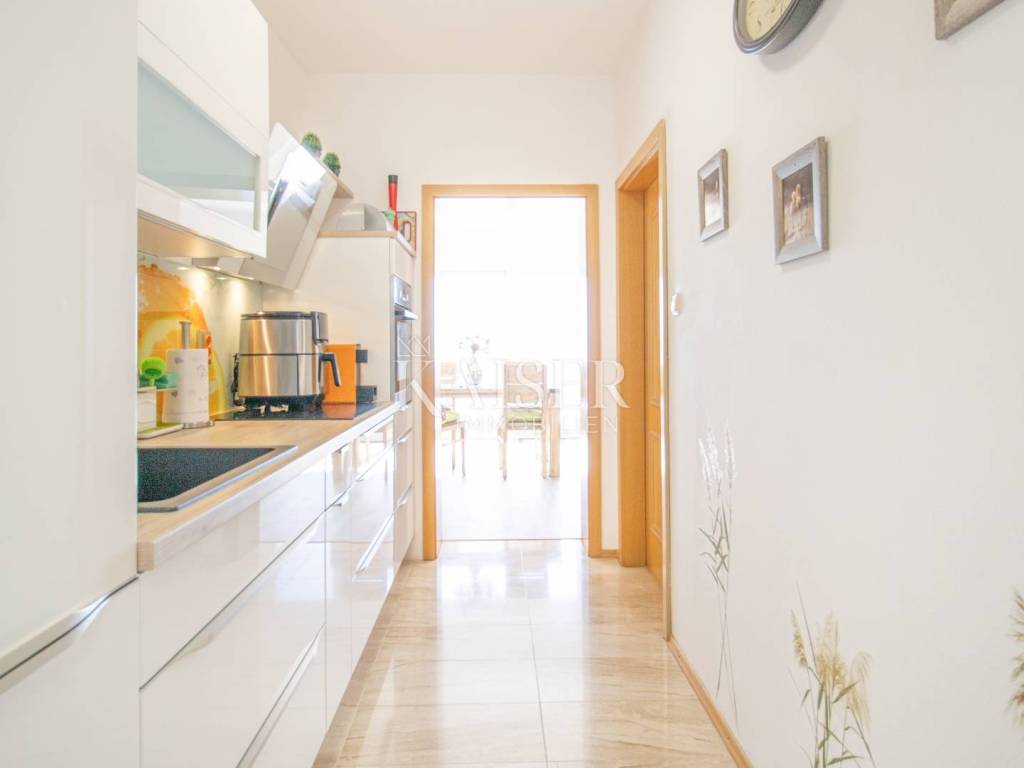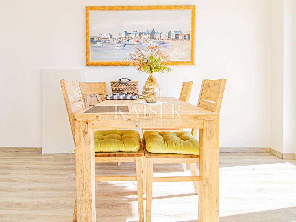 Kaiser Immobilien presents you with an exceptional apartment with a breathtaking view of Kvarner and the islands. This luxurious apartment is located in one of the most beautiful locations in Kvarner, offering an impeccable, breathtaking view of the entire Kvarner Bay, the city of Rijeka and the magnificent islands of Krk and Cres. Every moment spent in this apartment will be a true harmony for your senses - from unforgettable sunrises with morning coffee on the spacious terrace to romantic sunsets with evening gatherings with friends. The apartment is located on the first floor and spreads through elegantly designed rooms, which include a bright and functional kitchen, a spacious dining room, a cozy living room, a beautiful bedroom and a modernly equipped bathroom. We especially highlight the spacious covered and uncovered terrace of 16.26 m² (calculated according to coefficients) which is an extended part of the living room - here you will enjoy every moment, whether you are relaxing with a glass of wine or simply absorbing the beauty of the landscape. From the terrace, which offers one of the most beautiful views of the Adriatic Sea, your everyday activities will take on a completely new dimension. Thanks to carefully selected materials and a functional layout, the apartment provides exceptional comfort and quality of life. The space is open, airy and perfectly aligned with all the needs of modern life. The quiet location of the apartment allows for a complete retreat from the city crowds, while at the same time providing excellent connections to all necessary amenities such as markets, restaurants and other services that will make your life even more enjoyable. Whether you are looking for an ideal place for a quiet family life, or you want to invest in a tourist rental in one of the most attractive locations on the Adriatic, this apartment is the right opportunity for you. Although surrounded by natural beauty, the apartment is close enough to Rijeka to provide you with easy access to all city amenities and services. Imagine living in a space that combines comfort, functionality and the beauty of nature. Imagine relaxing with a view of the sea, enjoying the sunset and the peaceful atmosphere that comes with such a location. This apartment is not just a place to live - it is a lifestyle, a place where every day will be filled with tranquility and beauty. Such opportunities do not come often. Do not miss the chance to become its owner. Coast, beach: 5.3 km / 10 minutes Opatija center: 5.6 km / 10 minutes Lovran: 12.4 km / 20 minutes Rijeka: 17 km / 24 minutes Rijeka Airport: 41.6 km / 35 minutes Pula Airport: 93.5 km / 70 minutes Zagreb Airport: 185 km / 2 hours and 10 minutes Venice Airport: 215 km / 2 hours and 34 minutes Graz: 307 km / 3 hours and 31 minutes Munich: 509 km / 5 hours and 52 minutes The agency commission for the buyer is 3% + VAT and is paid in the case of purchasing a property, upon conclusion of the first legal act. For more information, please contact: Silvija Blažić Phone: +385 915 223 893 E-mail: silvija.blazic@kaiser-immobilien.hr Property code: 111-151