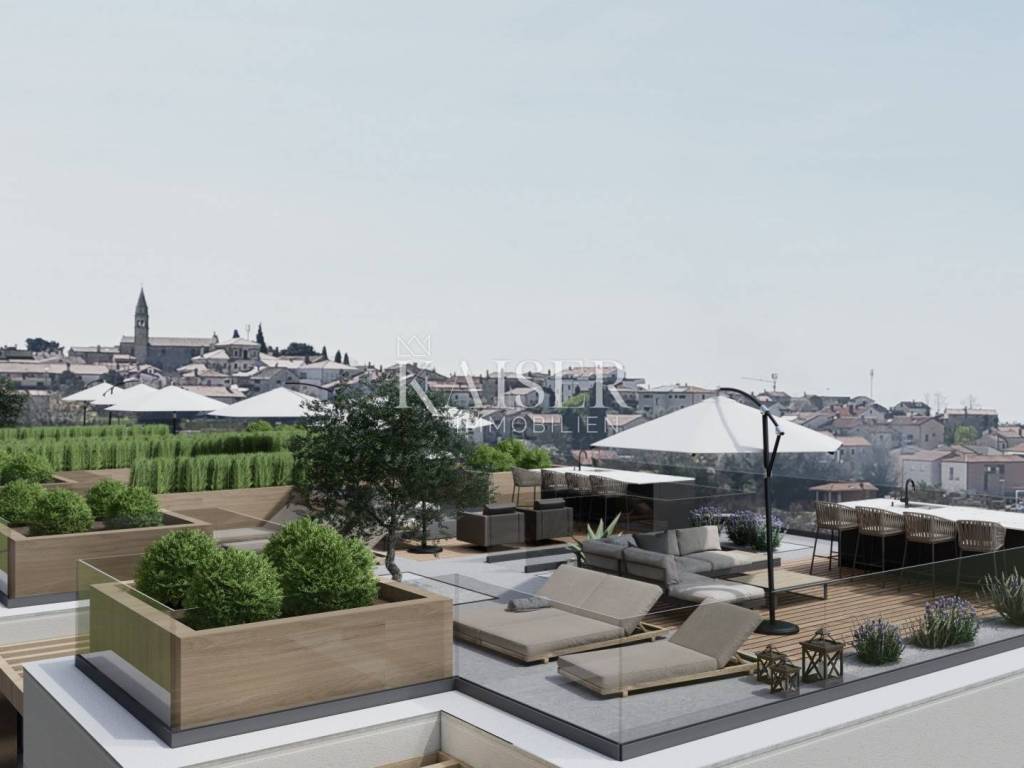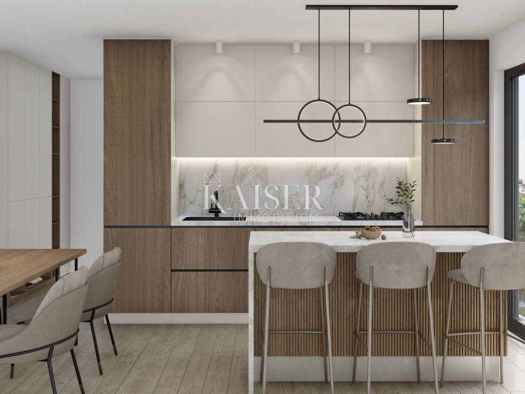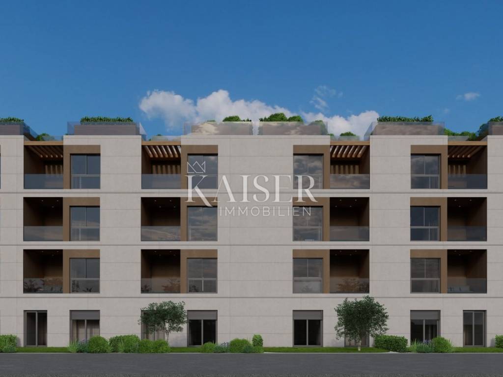 Kaiser Immobilien offers for sale a modern two-bedroom apartment in a new settlement in the Tar region. In Tar, just a few minutes from the town center, there is a new and modern settlement with elegant apartments that exudes a contemporary way of living in a peaceful environment. We present the apartment marked D10, which is located on the second floor of a newly built residential building, providing a perfect combination of comfort, functionality and contemporary design. The apartment spreads over a carefully designed floor plan, and consists of: - entrance hall, - open space kitchen connected to the dining room and living room, from which there is access to a cozy loggia, - two bedrooms, one of which has access to a private balcony, - modern bathrooms. The price of the apartment also includes two parking spaces, which further emphasizes the practicality and value of this property. The special quality of the apartment consists of: - three-layer PVC joinery and electric shutters - underfloor heating throughout the apartment, - air conditioning for cooling and heating, - floor coverings made of top-quality Italian ceramics, - sanitary ware from the prestigious brand Villeroy & Boch. This apartment represents an excellent opportunity for a quiet family life close to all necessary amenities, but also for an investment in tourism, given the excellent location and quality construction. Distance from the property to the town: Poreč - Pula Airport, 45 km Poreč - Ljubljana, 162 km Poreč - Vienna, 544 km Poreč - Prague, 868 km Poreč - Munich, 565 km If you are looking for a new apartment in an attractive location, please contact us with confidence at: Phone: 00385923782803 Email address: ivana@kaiser-immobilien.hr. Seller: Ivana Gašparini. The agency fee is 3% + VAT, and is charged with the first legal act.