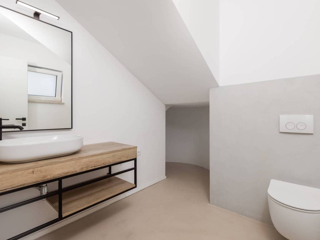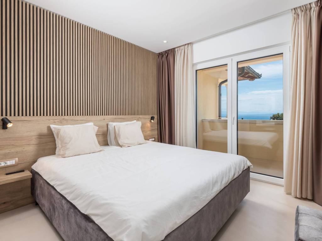 On the first floor of this villa there are a total of 3 bedrooms, each with its own bathroom, and two balconies with a wonderful panoramic view of the Kvarner Bay and the island of Cres.