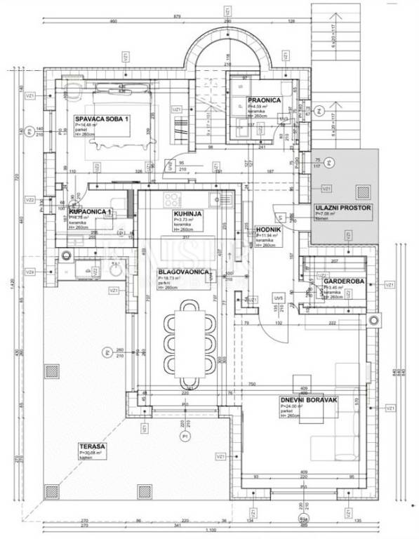 The villa is located on a plot of land with a total area of ​​almost 800 m2, and its living area is 200 m2.