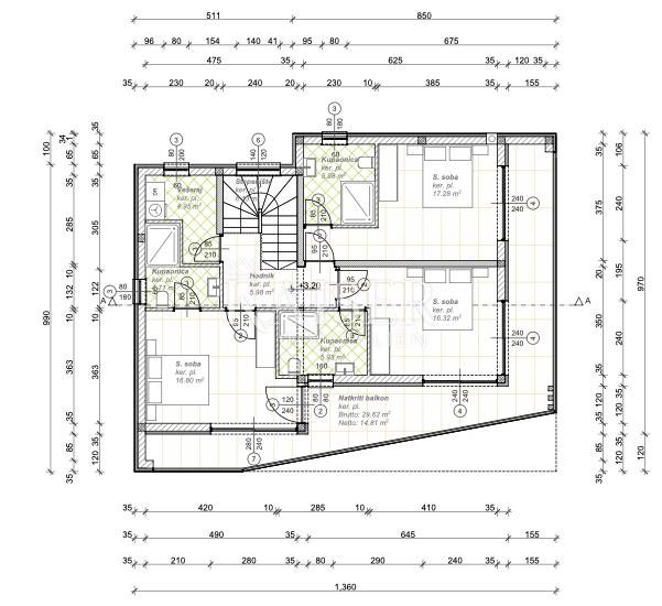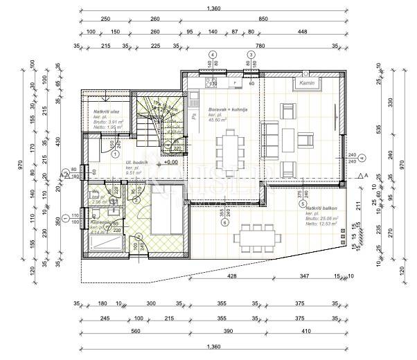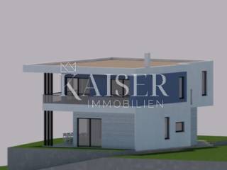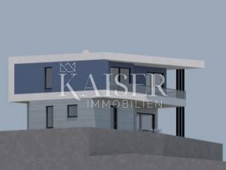 Kaiser immobilien offers this modern and superbly equipped villa on the island of Krk in the quiet village of Kornić, only 900 m from the sea. The living area of the villa is 250m2, on the ground floor we have a kitchen, a living room with a fireplace, a bedroom, a bathroom and a toilet, while on the first floor there are three more bedrooms with bathrooms and a laundry room. All bedrooms open onto a glazed terrace with a panoramic view of the sea. Top quality materials are used in the construction, a heating and cooling system powered by a heat pump is installed, while the bathrooms will have underfloor heating. The building will have solar panels for the production of its own electricity, a charging station for electric vehicles, electric shutters, and a video surveillance and alarm system. There is a swimming pool with a sunbathing area, a hydromassage pool and two covered parking spaces on the landscaped garden. Beach: 900 m. Restaurants: 2000 m. Airport: 30 km