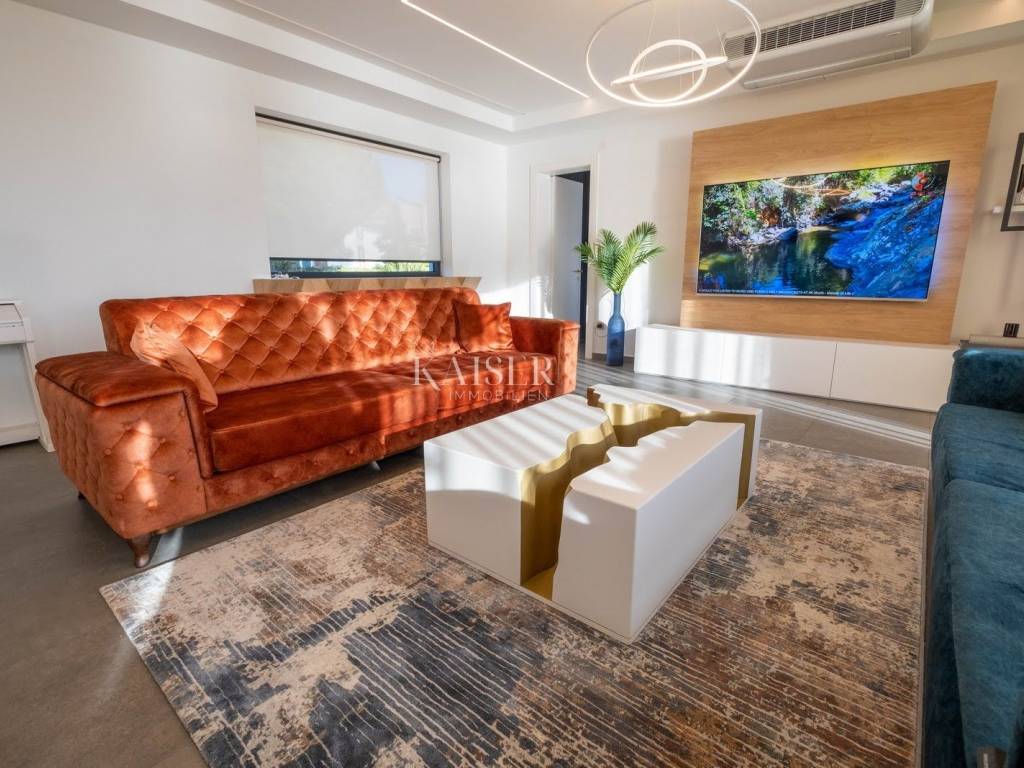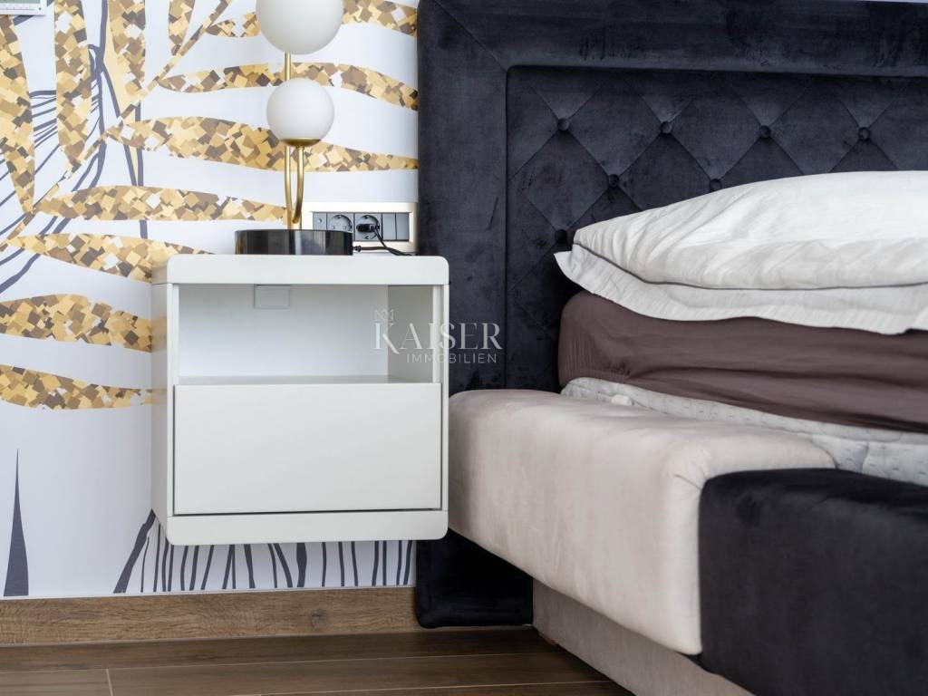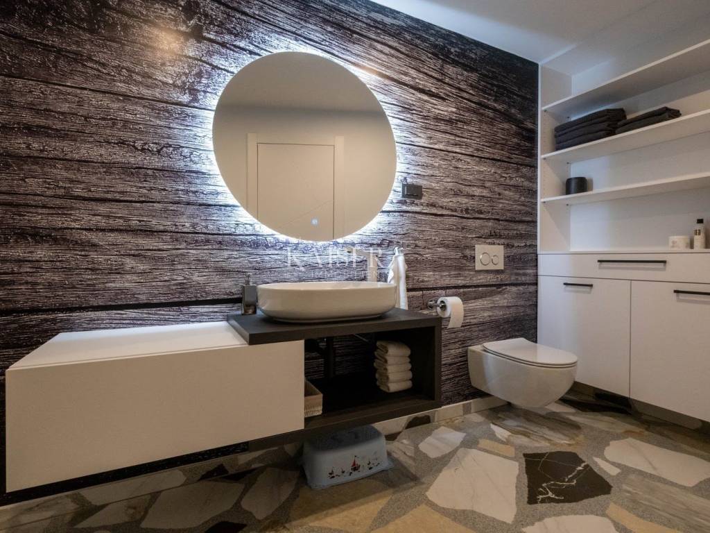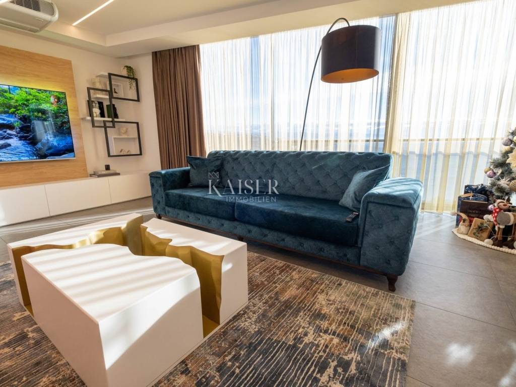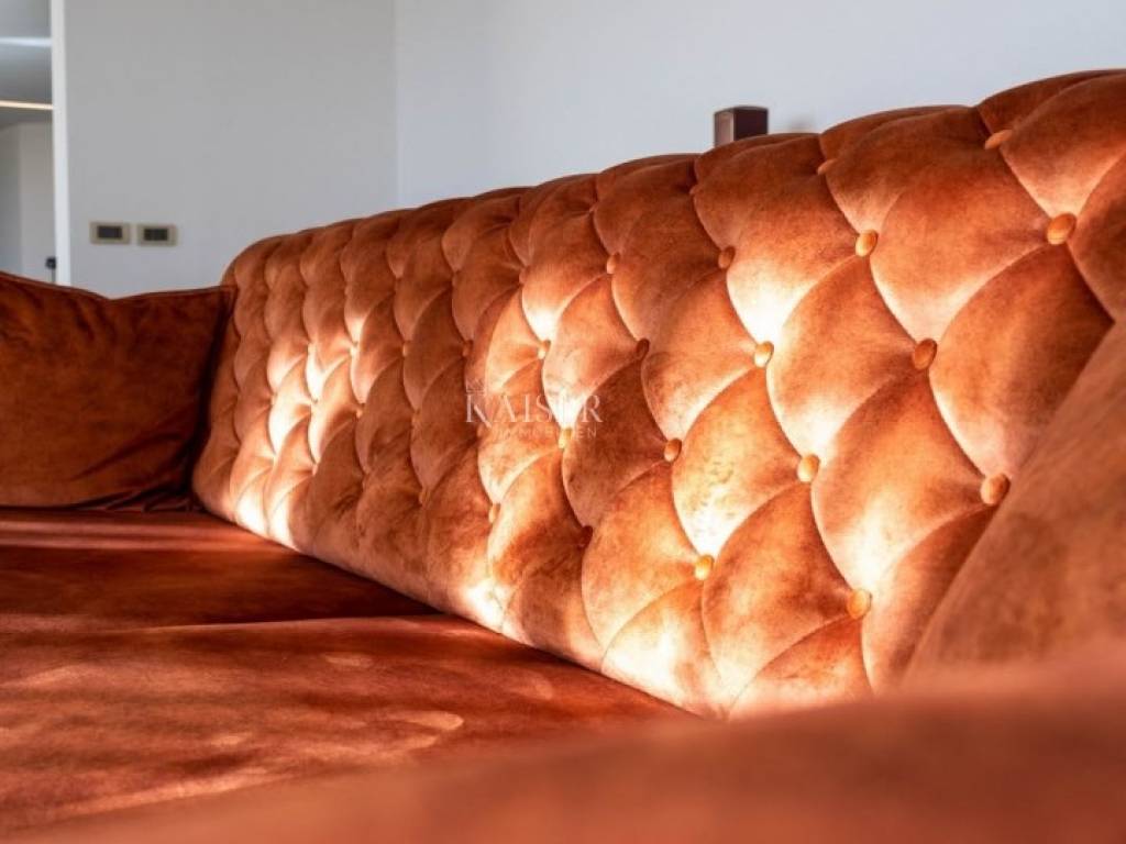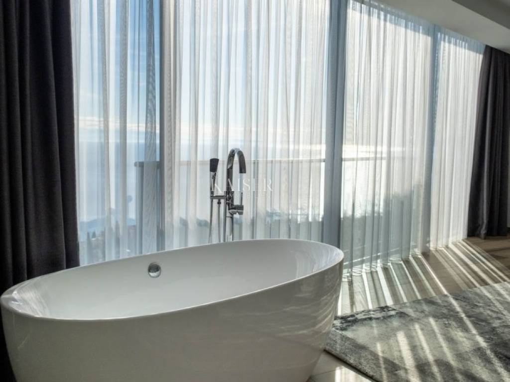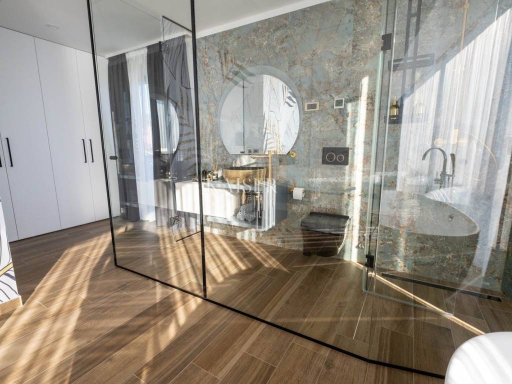 Kaiser Immobilien puts on the market a luxurious two-story penthouse with a panoramic view of the sea. The apartment is modernly furnished and top quality materials and appliances were used. On the second floor, there is a spacious modern kitchen with a large island, which will surely be the center of all gatherings with family and friends. On the same floor there is also a dining room, a living room, a bedroom with a bathroom and a covered terrace with comfortable furniture for relaxing on warmer days. In the attic there is a master bedroom with a private bathroom and a walk-in wardrobe that exudes pure luxury, there is also a hallway, another bedroom with a bathroom and a spacious uncovered terrace. The apartment is sold fully furnished with top quality modern furniture, carefully designed lighting to highlight all the details of this luxury apartment even better.