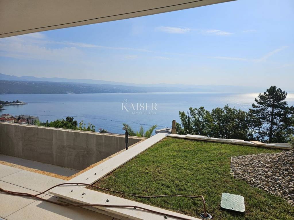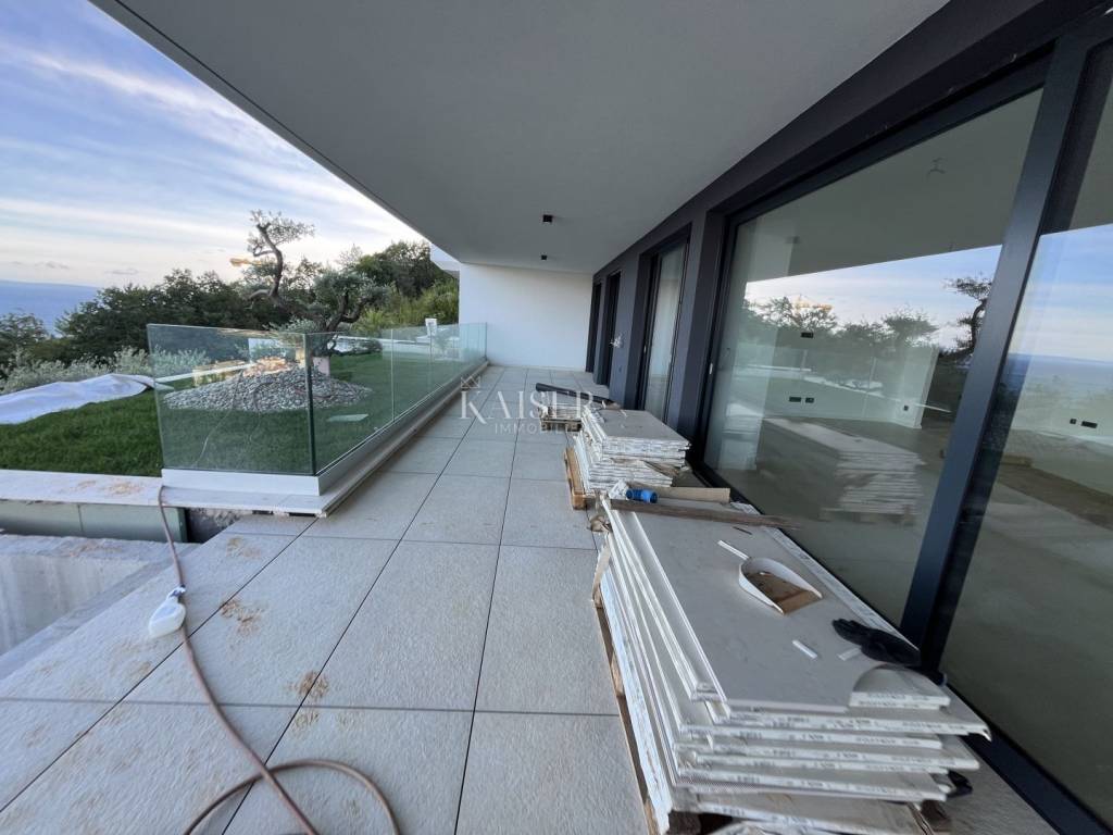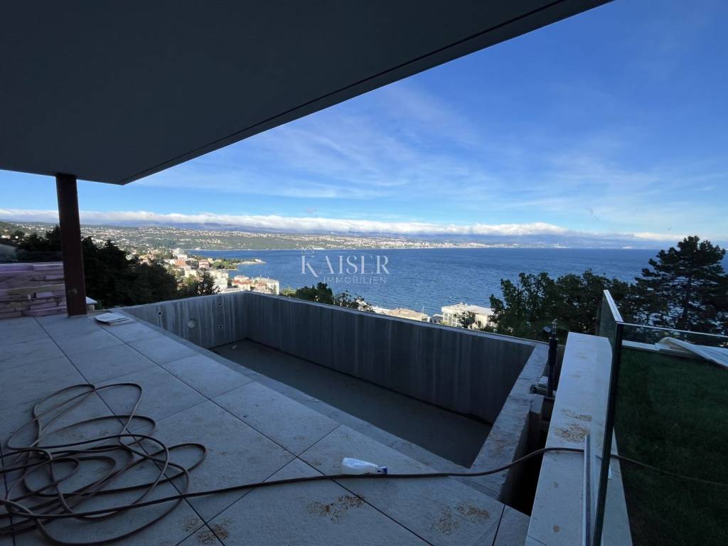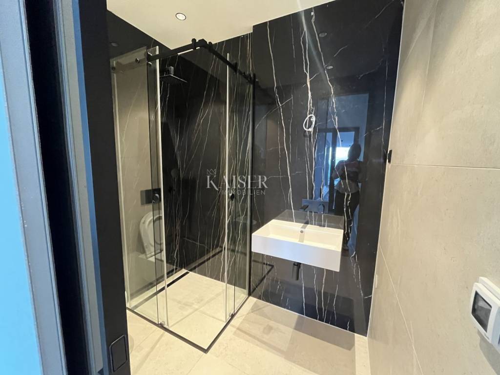 Kaiser Immobilien puts this luxury apartment on the market near the very center of Opatija, which has a panoramic view of the sea and offers an ideal location close to all facilities, as well as cafes, restaurants and boutiques. It is located on the ground floor of a modern, luxurious building that boasts contemporary architectural lines that fit naturally into the environment. This exceptional property is equipped with the highest quality finishes, the most advanced equipment and a selection of materials such as three-layer oak parquet, Schuco aluminum joinery with three-layer glass and electric external blinds. Additionally, we highlight the external carpentry with large sliding walls, heat pump underfloor heating and ventilated external facade. The apartment has a total of 49 m2 of underground garage sufficient for four cars and a storage room with direct elevator access from the underground garage. The apartment is located on the ground floor and consists of two corridors, a toilet, three bathrooms, three bedrooms, a storage room, three wardrobes, a gym, a kitchen, a dining room and a living room with a total usable area of 153.59 m2, which includes the side part: covered and uncovered terrace, total usable area 39.66 m2, and belongings: pool storage and machine room, swimming pool, greenery in the garden and parking spaces PM 5, PM 6 and PM 13, total usable area 57.93 m2. The total useful value of the area of apartment S2 is 251.18 m², which is 16/100 of the building as a whole. For all questions and viewing of the property, please contact the agent. Tamara Lay mob: 099 4555 131 e-mail: tamara@kaiser-immobilien.hr