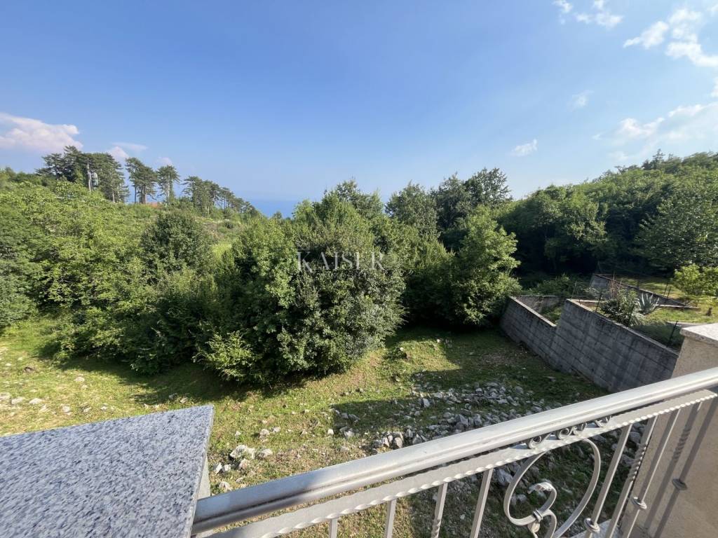 On the first floor there is a large three-bedroom apartment with two bathrooms, kitchen, dining room, living room, storage room, balcony and terrace with a beautiful view of the Kvarner Bay.