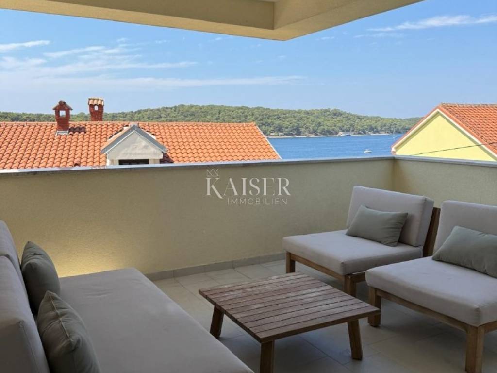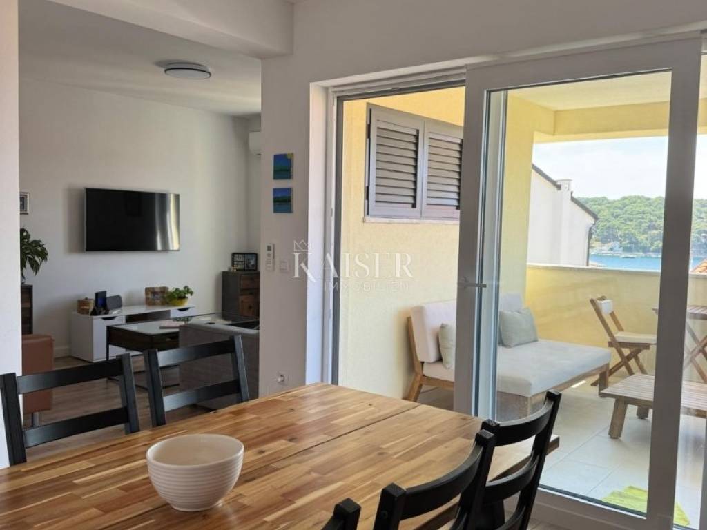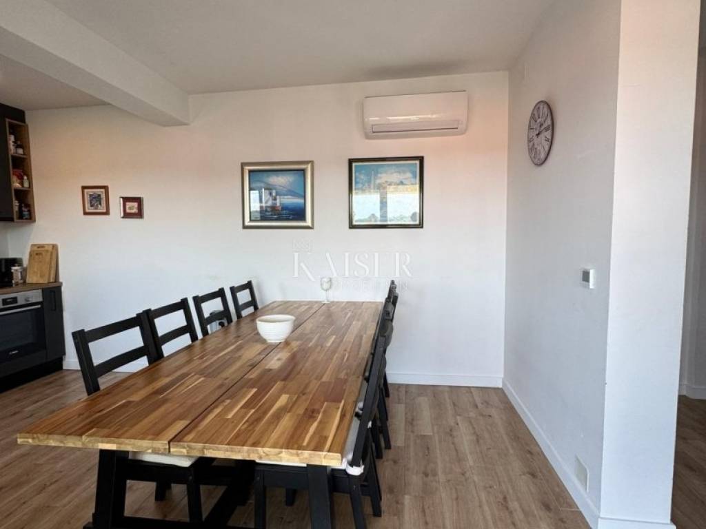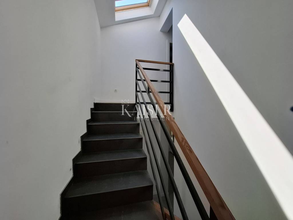 The island of Lošinj, located in the Kvarner Bay, is a true paradise for all lovers of natural beauty, crystal clear sea and sun. Known for its beautiful beaches, Lošinj offers a variety of opportunities for relaxation and enjoyment. From hidden coves with breathtaking blue waters to wide pebble beaches, every visitor can find their perfect place under the sun. Kaiser-Immobilien mediates the sale of a beautiful newly built luxury apartment of 110.70 m2 of living space, located in a quiet location in the heart of Mali Lošinj. This apartment is ideal for anyone who wants to enjoy a luxurious life by the sea, surrounded by natural beauty and unforgettable views, and for those who appreciate peace, nature and a sophisticated lifestyle. The apartment consists of 2 floors, on the first floor there is an entrance area, a living room, a living room, a kitchen, a dining room, an office and a covered terrace of 12.75 m2. On the second floor there is a staircase, hallway, storage room, 2 bedrooms, 2 bathrooms, and an uncovered terrace of 6.20 m2. In addition to 110.70 m2 of living space, the apartment also includes a part of the building's courtyard and garden, parking for 2 vehicles, a separate storage room of 8.80 m2, as well as a flat roof on the top of the building with an area of 25.80 m2. It is equipped with a top-notch air conditioning system, a smoke channel, underfloor heating, and top-notch materials in the form of built-in ceramics, aluminum joinery, security doors, and floor coverings. The apartment is located in a building with three residential units, with a contemporary architectural solution, high standard, and high-quality materials. It is perfect for a family or as a luxury vacation and rental apartment. The outdoor terraces are perfect for relaxing after a day spent on the nearby beaches, diving, hiking in the nearby hills, or cycling, while the panoramic view of the Lošinj harbor and Augusta Bay is literally breathtaking. Distance of the property from: Rijeka Airport, 98 km Zagreb Airport, 263 km Ljubljana, 219 km Vienna, 600 km Prague, 932 km Munich, 628 km This apartment represents an ideal opportunity for those who want to enjoy the Mediterranean lifestyle or invest in real estate on one of the most beautiful islands in the Adriatic Sea. Don't miss the opportunity to become the owner of this beautiful property and secure your part of the Mediterranean paradise! Agent's recommendation! The commission of the agency for the buyer is 3% + VAT and is paid in case of real estate purchase, when the first legal deed is concluded. For more detailed information, please contact the agent: Moris Saganić e-mail: moris@kaiser-immobilien.hr phone: +385-99-861-0036