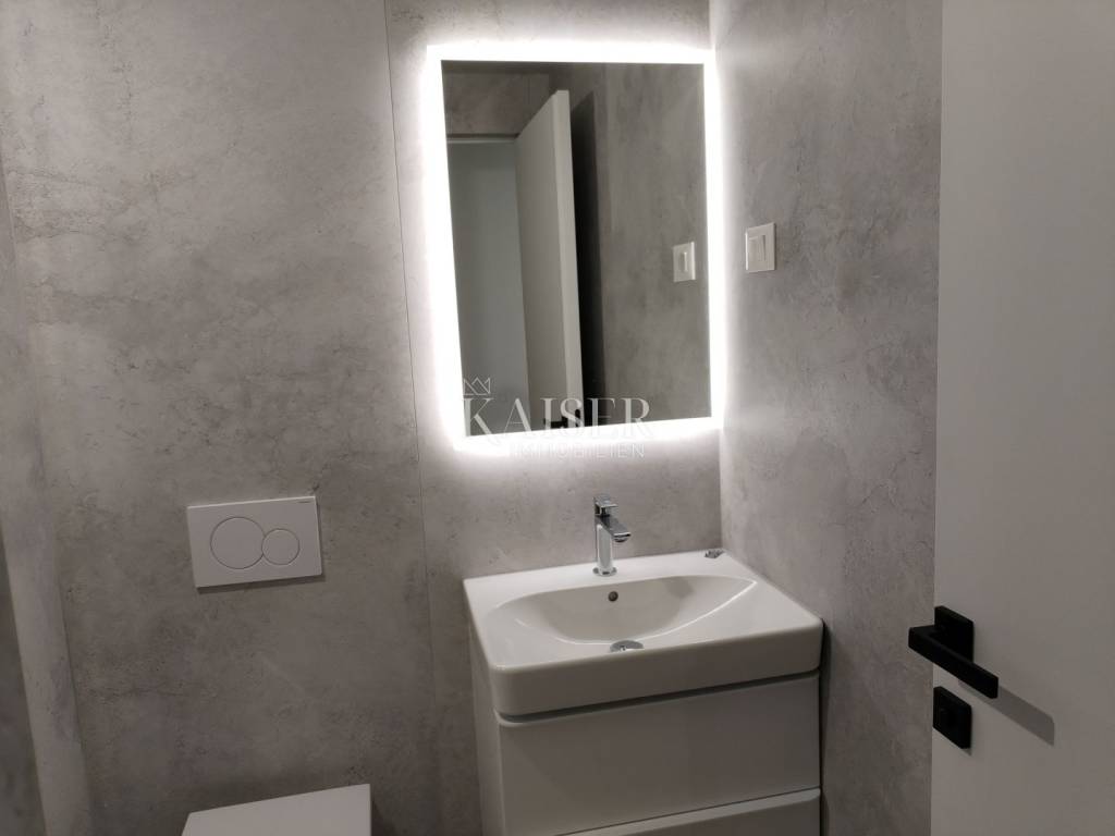 Kaiser Immobilien presents a modern apartment in the center of Umag, overlooking the sea, in an exclusive location. The special advantage of this property is its proximity to the beach, only 40 meters away, which further increases the value and attractiveness of the location. We offer an apartment on the second row from the sea, with a total area of 80.66 m2, located on the third floor of a residential and commercial building with a total of 18 residential units, a modern new building with an elevator. The apartment consists of a spacious living room with an open-plan kitchen and dining room, two bedrooms, one of which is a master bedroom with its own bathroom, a hallway, a bathroom, a storage room and a balcony with a view of the sea. Modern and top quality materials are used: Electric underfloor heating at 12V (economical). Klime multi split system, three devices on one outdoor unit. Schindler lift of large dimensions (10 persons) The floors are made of large-format ceramics and large-format parquet. The joinery is aluminum Wicona Wicslide 160 three-layer glass with UV protection and gas. Parking space in the garage is charged at 25000.00 + VAT. The price of the apartment includes VAT, the apartment is sold on a turnkey basis, without furniture. Distance: Pula Airport - 80 km Koper - 30 km Ljubljana - 140 km Munich - 540 km Vienna - 520 km Prague - 850 km The agency commission for the buyer is 3% + VAT and is paid in the case of purchasing a property, upon conclusion of the first legal act. Do not miss the opportunity to become the owner of this beautiful modern apartment that offers the perfect combination of luxury and excellent location. Contact us with confidence for more information and to arrange a viewing. Seller: Dean Cerovac phone: 0038598538347 email address: dean.cerovac@kaiser-immobilien.hr