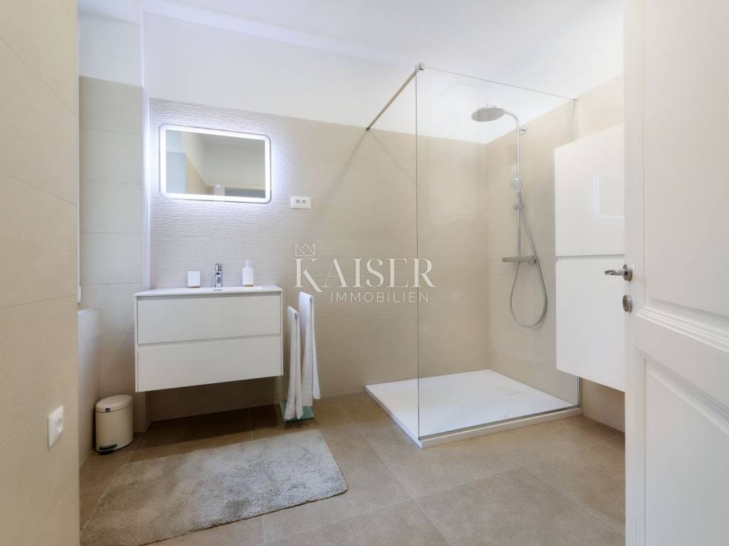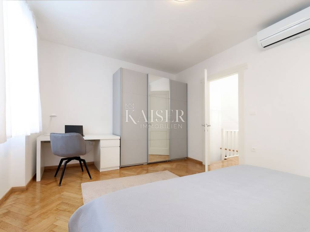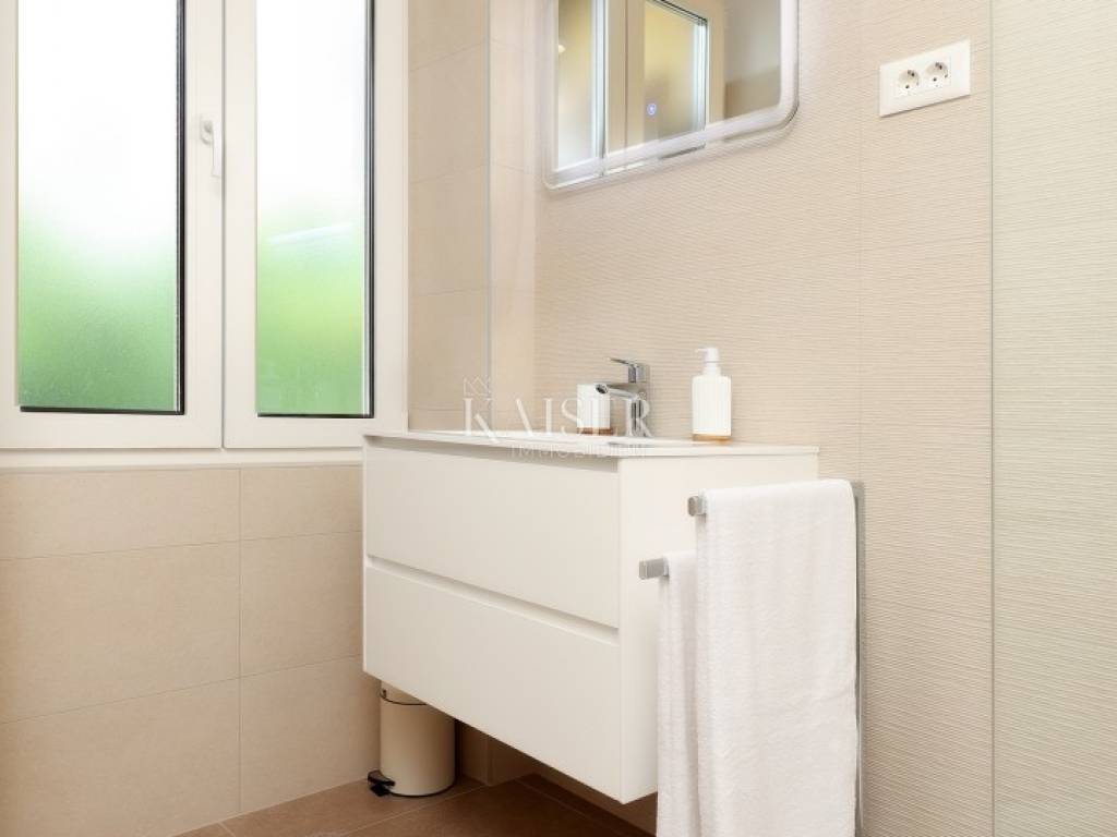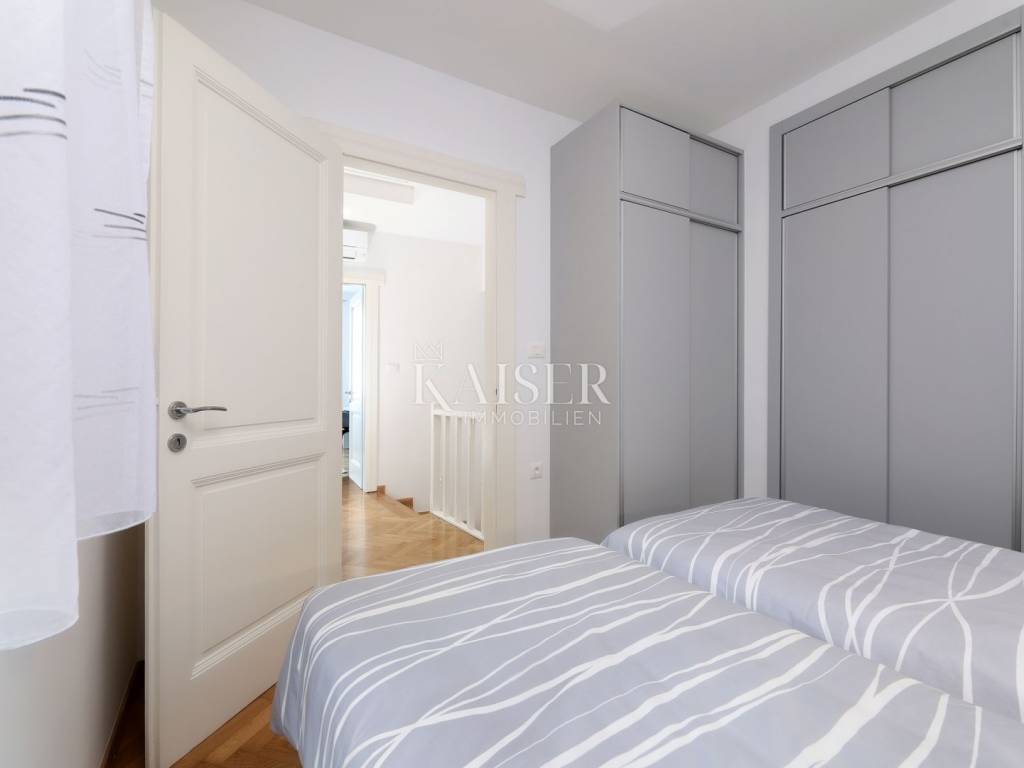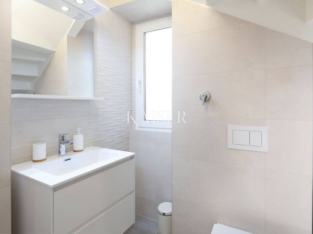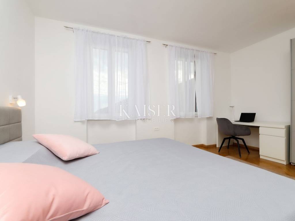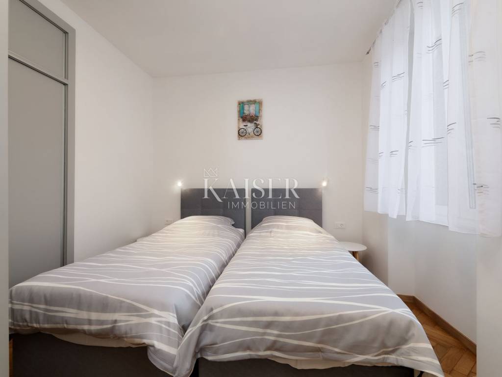 Mošćenička Draga, a fishing and tourist town located at the foot of Učka on the eastern coast of Istria, with beautiful pebble beaches, and the famous Sipar beach. The old core that exudes the spirit of bygone times of narrow stone streets and flower pots. In such an environment is located this beautiful apartment, first row to the sea with a view of the open sea, the blue of the sea and the forest - the greenery of the area under Učka and the old town of Mošćenice. Upon entering the apartment, we are greeted by a picture of the sea coast, a port with boats and barges that sway and sway on the sea waiting for their owners to take them. On the ground floor we will find: a dining room, a small kitchen, a hallway, a toilet and a living room with a balcony from which there is a special view of the town, the sea and the environment. On the first floor there are two bedrooms and a bathroom with a walk-in shower. The space is heated by electric underfloor heating and air conditioning units heating-cooling which are located in the living room and two on the first floor. An optical connection to the high-speed internet network is expected soon. At this location you will feel the smell of the sea, the tranquility that offers you a view of the open sea and greenery, and the peace of rest and untouched nature with a mild Mediterranean climate. In the immediate vicinity, within a walking distance of 5 to 10 minutes. you will find all the necessary facilities: bus station, kiosk, butcher, shop, school, kindergarten, clinic, library, pharmacy, etc. For lovers of walks by the sea, a pleasant promenade along the sea to the last beach awaits you, and in the vicinity there is also a path leading to the old town of Mošćenice, and other educational paths towards Učka. The gastronomic offer of the town of Mošćenička draga and several Michelin-starred restaurants will provide, in addition to a visual romantic view of the town, a gourmet experience for lovers of fish and local specialties. There is a free parking space for residents of this location approximately 50 meters from the location. Distance from major centers: Lovran 15 min, Opatija 30 min, Rijeka 45 min, Pula 2h, Zagreb 2h, Vienna 5h, Trieste 1h 50 min, Ljubljana 2h 15 min approx. drive by car. For more information, call +385916133776 agent Eli Lovko. The agency fee is 1 rent + VAT and is paid upon the first money transaction.