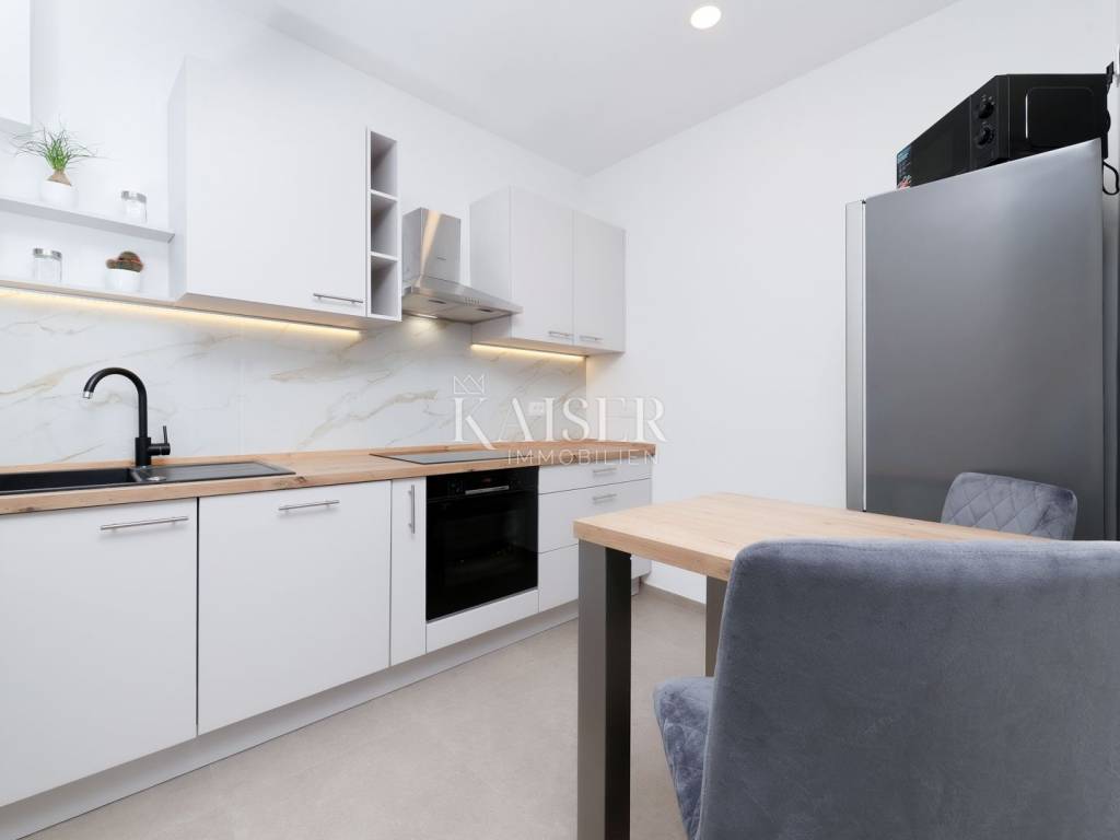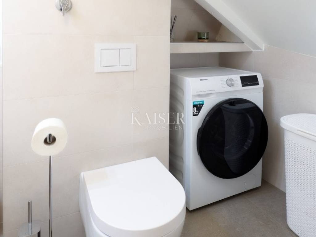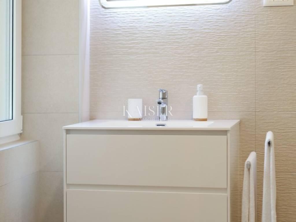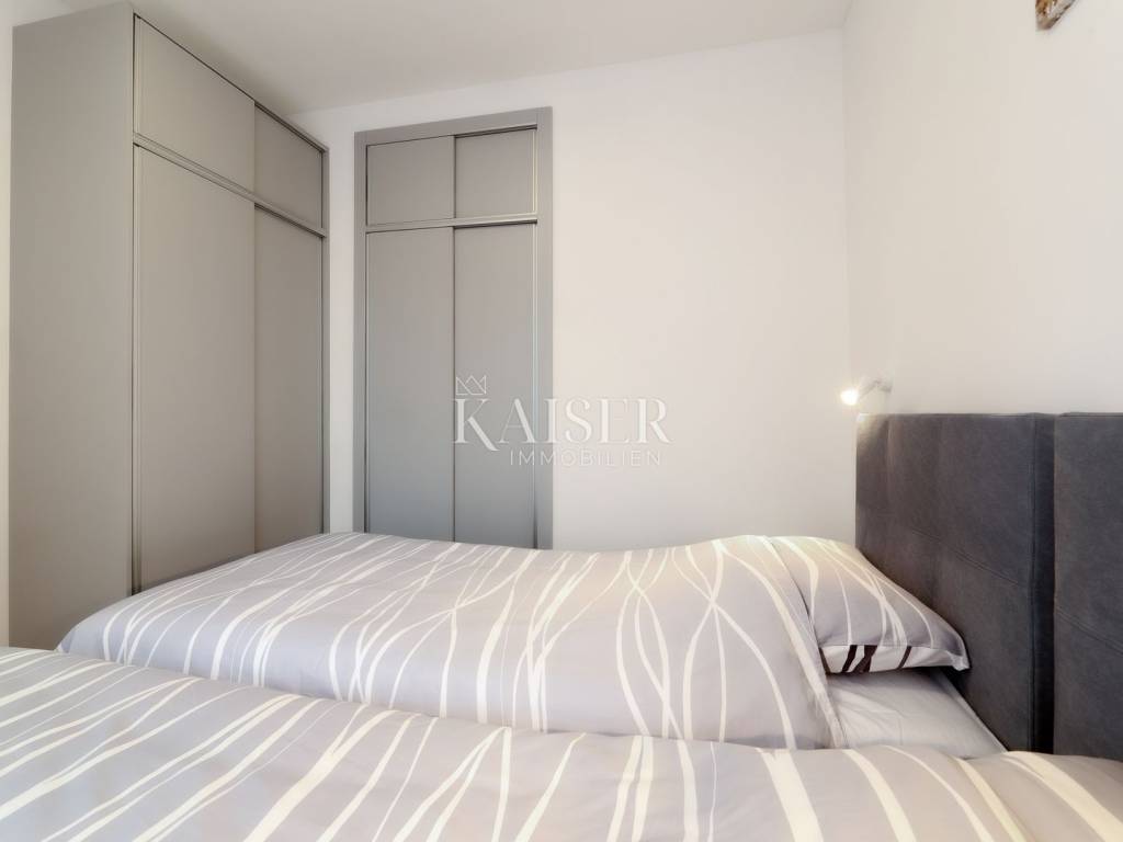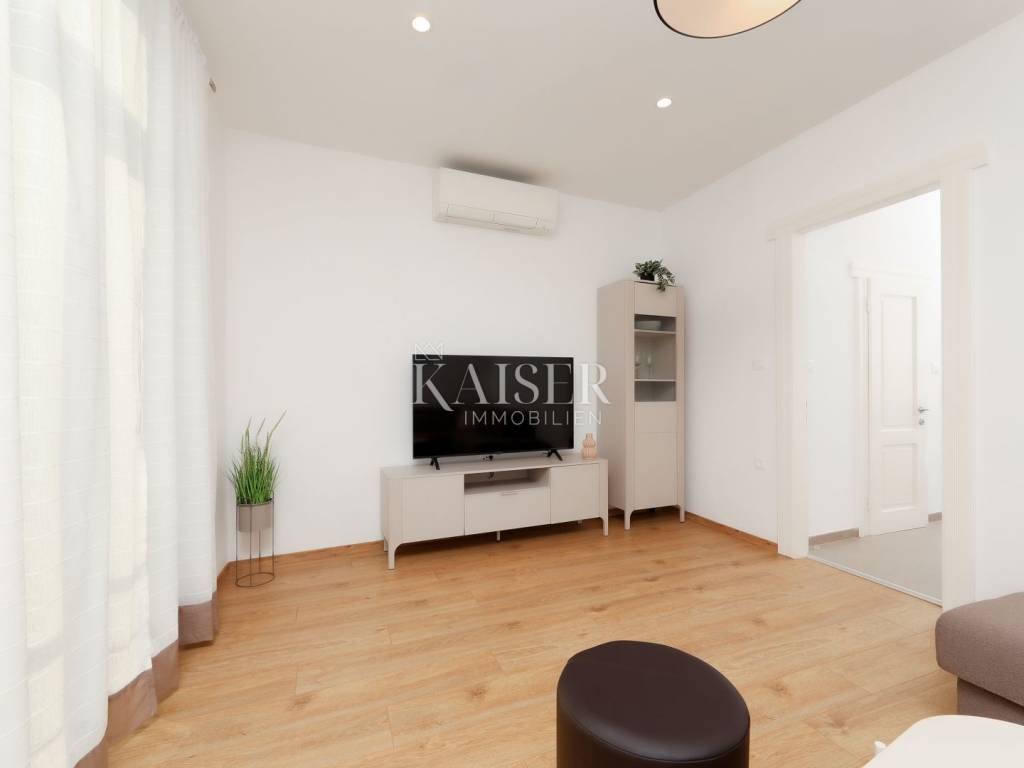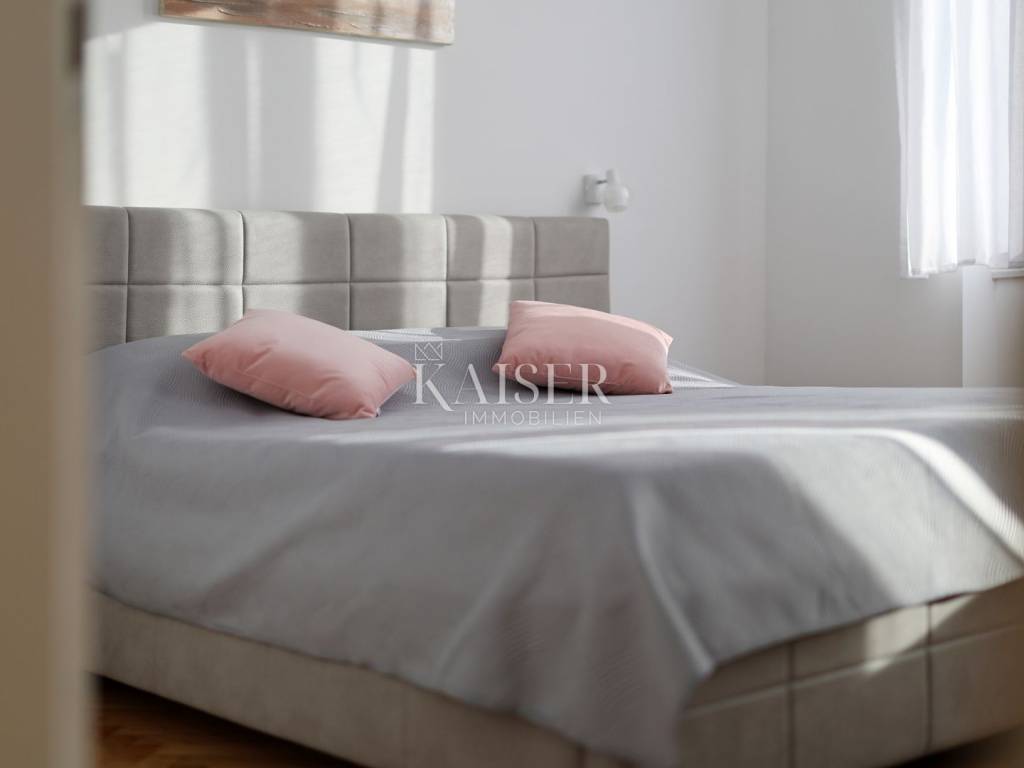 Mošćenička Draga, a fishing and tourist town located at the foot of Učka on the eastern coast of Istria, with beautiful pebble beaches, and the famous Sipar beach. The old core that exudes the spirit of bygone times of narrow stone streets and flower pots. In such an environment is located this beautiful apartment, first row to the sea with a view of the open sea, the blue of the sea and the forest - the greenery of the area under Učka and the old town of Mošćenice. Upon entering the apartment, we are greeted by a picture of the sea coast, a port with boats and barges that sway and sway on the sea waiting for their owners to take them. On the ground floor we will find: a dining room, a small kitchen, a hallway, a toilet and a living room with a balcony from which there is a special view of the town, the sea and the environment. On the first floor there are two bedrooms and a bathroom with a walk-in shower. The space is heated by electric underfloor heating and air conditioning units heating-cooling which are located in the living room and two on the first floor. An optical connection to the high-speed internet network is expected soon. At this location you will feel the smell of the sea, the tranquility that offers you a view of the open sea and greenery, and the peace of rest and untouched nature with a mild Mediterranean climate. In the immediate vicinity, within a walking distance of 5 to 10 minutes. you will find all the necessary facilities: bus station, kiosk, butcher, shop, school, kindergarten, clinic, library, pharmacy, etc. For lovers of walks by the sea, a pleasant promenade along the sea to the last beach awaits you, and in the vicinity there is also a path leading to the old town of Mošćenice, and other educational paths towards Učka. The gastronomic offer of the town of Mošćenička draga and several Michelin-starred restaurants will provide, in addition to a visual romantic view of the town, a gourmet experience for lovers of fish and local specialties. There is a free parking space for residents of this location approximately 50 meters from the location. Distance from major centers: Lovran 15 min, Opatija 30 min, Rijeka 45 min, Pula 2h, Zagreb 2h, Vienna 5h, Trieste 1h 50 min, Ljubljana 2h 15 min approx. drive by car. For more information, call +385916133776 agent Eli Lovko. The agency fee is 1 rent + VAT and is paid upon the first money transaction.