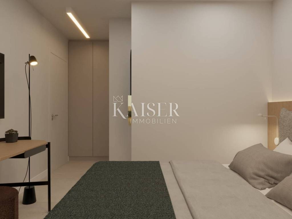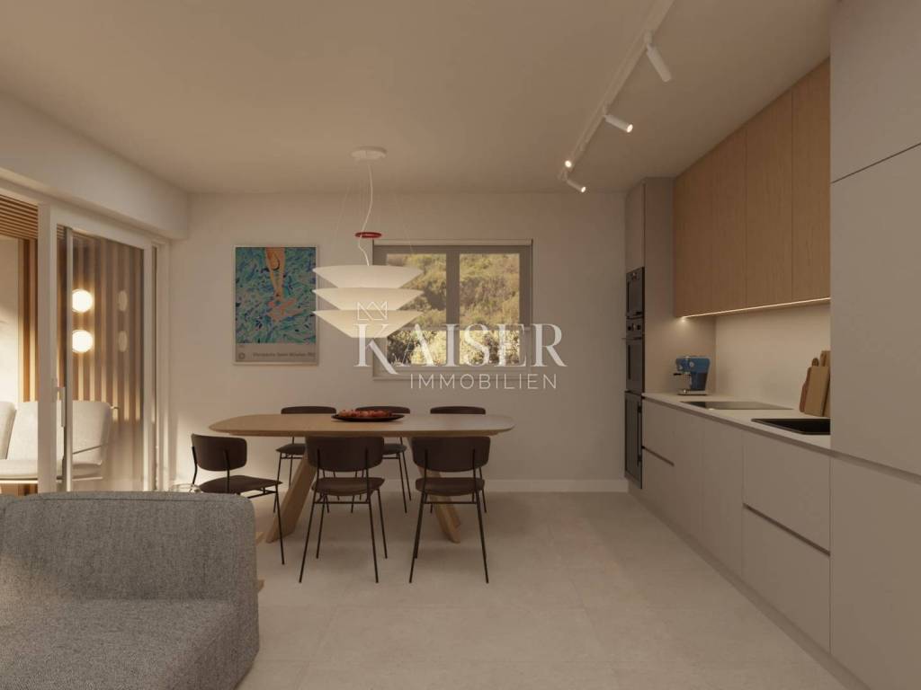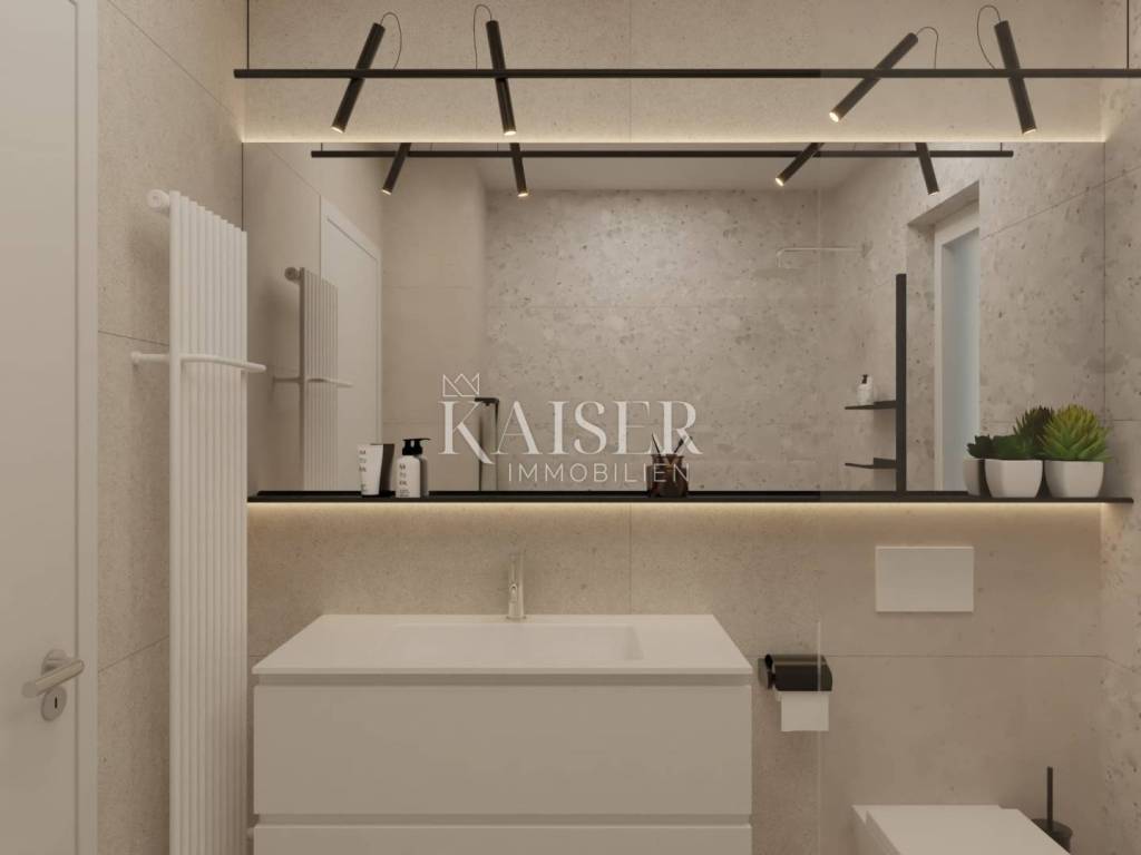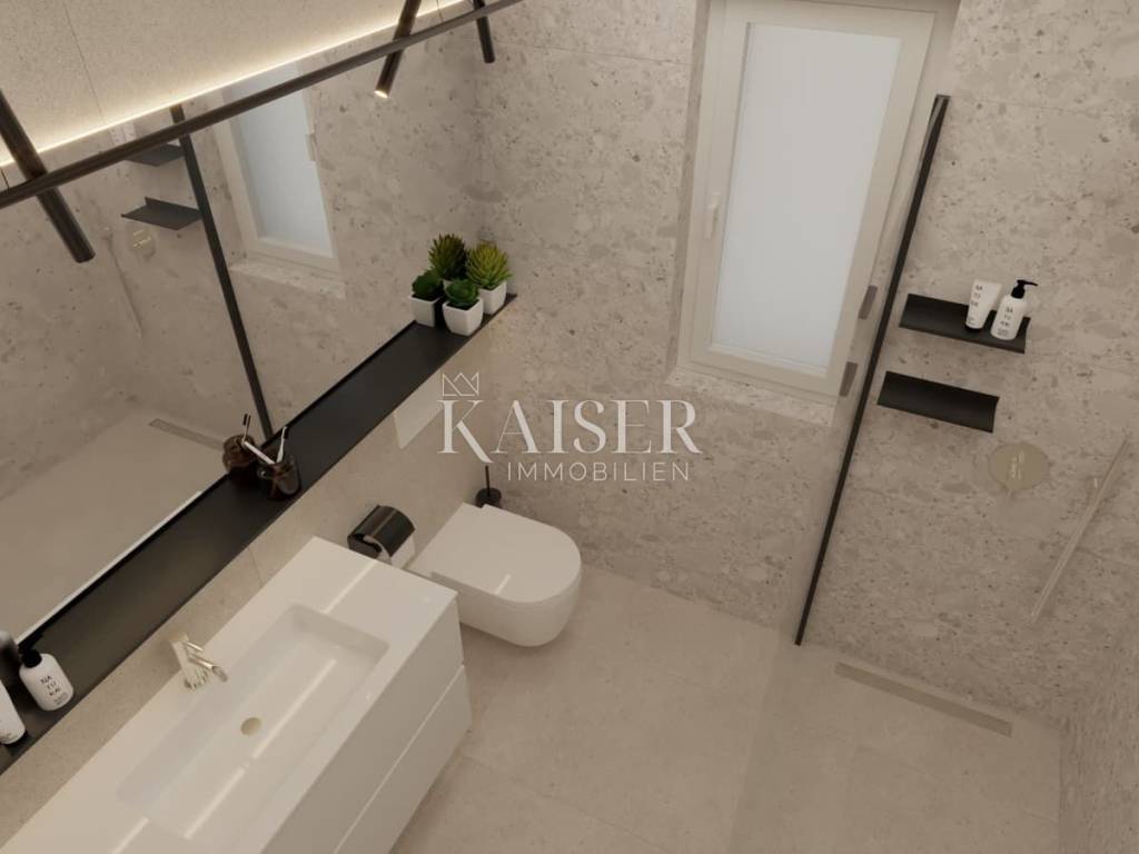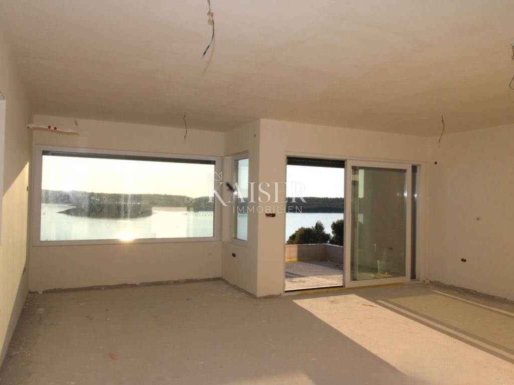 Medulin is a charming coastal town located in the south of Istria, known for its beautiful beaches, crystal clear sea and rich tourist content. The Medulin Riviera offers unique natural beauty, including the picturesque sandy beach of Bijeca and numerous coves ideal for swimming. With a rich gastronomic offer and various sports activities such as cycling, sailing, tennis, horse riding and diving, Medulin attracts both tourists and those looking for a quiet place to live or relax. Kaiser Immobilien is proud to present an exclusive penthouse in the first row to the sea, measuring 82.66 m², located on the second floor of a modern residential building with only three residential units. This unique property offers spectacular panoramic sea views and comes with its own 36.83 m² garage equipped with an electric door, electricity and water connection. An internal staircase made of natural Brač stone leads you to the entrance to the penthouse, where you are greeted by a security door from the renowned Italian brand Dierre and an elegant hallway measuring 7.35 m². The space is thoughtfully divided into a living and sleeping area. To the right of the hallway is a spacious open space that combines the kitchen, dining room and living room of 32.44 m², from which, through large glass walls, there is an unobstructed view of the sea from every corner of the space. The left side of the apartment is reserved for peace and comfort and includes two bedrooms, one of which is a master bedroom with a private bathroom of 4.82 m² equipped with a walk-in shower and top-quality Geberit and Hansgrohe sanitary ware. The master bedroom is 14.27 m², while the smaller bedroom is 11.40 m², and right next to it is an additional bathroom of 3.72 m², also with a walk-in shower and modern furnishings. The living area opens onto a spacious balcony of 14.98 m², of which 4.67 m² is a covered loggia - the perfect place to relax with an unforgettable view of the sea and sunset. What makes this property particularly valuable is the fact that it is located in the first row of buildings, and in front of the building there is a green zone where construction is not allowed, which permanently protects the sea view. The apartment stands out for its top-quality construction and carefully selected materials. It is equipped with high-quality PVC joinery with triple-layer 4S glass from Saint-Gobain, water-based underfloor heating, electric shutters on most windows and lacquered interior doors without frames for better sound and thermal insulation. The entrance doors of the building are made of high-quality aluminum from the Inotherm brand, and the excellent thermal insulation of the facade and flat roof ensures maximum energy efficiency. Each room has an air conditioner for heating and cooling. The price includes a conceptual interior design with a design booklet and renderings, which gives the future owner a clear insight into the final appearance of the space and the aesthetics of the design. The building is in an advanced stage of construction, with the carpentry already installed, and the completion of the works is planned for spring 2026. The building consists of a total of 3 apartments. What sets this penthouse apart from the rest of the market is its extraordinary location - first row to the sea, a view that no one can take away, and the environment that is currently being developed to become the most elite part of the place. The combination of top-notch architecture, luxurious equipment and a unique position makes this property the perfect choice for those looking for a home full of elegance, comfort and a Mediterranean atmosphere. Whether you are looking for a luxurious place to live or a secure investment opportunity, this penthouse offers everything that is rarely found - the sea at your fingertips, privacy and timeless value. Proximity to amenities: Medulin, center - 1 km Sea - 124 m beach - 210 m Restaurant - 1 km Cafe - 800 m Bakery - 1.1 km Shop - 1.1 km Pharmacy - 1.5 km Bus station - 1 km Elementary school - 1.2 km Kindergarten - 1.2 km Pula - 8 km Airport - 13 km Distance to larger cities: Medulin- Ljubljana: 200 km Medulin- Vienna: 580 km Medulin- Budapest: 600 km Medulin- Prague: 900 km Medulin- Munich: 600 km Medulin- Zagreb: 264 km The agency commission for the buyer is 3% + VAT and is paid in the case of purchasing a property, upon conclusion of the first legal act. Interested buyers can view only with the prior signing of a real estate brokerage contract. ID-CODE: 127-172 If you would like to visit the property in person, please contact: Jennifer Hofmann E-mail: jennifer@kaiser-immobilien.hr Tel: +385-91-515-0887 http://kaiser-immobilien.hr/