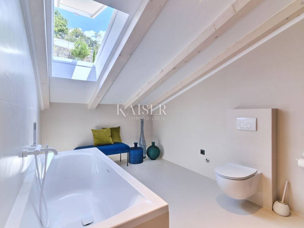 Kaiser Immobilien presents you with an extremely attractive, luxurious and modernly decorated apartment, located in one of the most desirable locations, just ten meters from the sea. This elegant home represents a combination of contemporary design, comfort and functionality, ideal for a modern family or those who want to live in an oasis of peace, right next to the crystal clear sea. The apartment stands out with its top-notch decoration and carefully selected materials, which create a sophisticated and pleasant atmosphere in which every detail has its purpose. The space is extremely bright thanks to large openings that let in natural light, and the modern design concept allows for fluidity and comfort in everyday life. The layout of the rooms has been carefully designed to provide maximum practicality: an elegant entrance area leads to the rest of the apartment, a spacious hallway connects all the main rooms, a modern kitchen with a dining room offers an ideal space for socializing and family moments, a comfortable room on the lower floor allows for peace and privacy, the bathroom is equipped with modern sanitary elements. On the second floor, or rather on the gallery, there is an additional spacious room, an attractive gallery that offers the possibility of different uses (work space, living room, relaxation corner) and another elegant bathroom. This layout makes the apartment ideal for families, but also for couples who want more space and multifunctionality. The location is unrivaled - in the immediate vicinity there are numerous cafes, restaurants, a market, as well as beautiful promenades leading along the coast. Everything you need for a comfortable, leisurely and quality life is literally at your fingertips. The beach is only ten meters away, which means you can enjoy the sea and the sun whenever you want, without the need for long walks or driving. This apartment represents an extraordinary opportunity for anyone looking for a luxurious, modern and carefree life by the sea, the perfect place to create unforgettable moments, whether you use it as a family home or as an investment in a property in a prime location. For more information or to arrange a viewing, please feel free to contact us. The commission of the agency for the buyer is 3% + VAT and is paid in the case of real estate purchase, when the first legal deed is concluded. For more detailed information, please contact: Silvija Blažić Phone: +385 915 223 893 E-mail: silvija.blazic@kaiser-immobilien.hr Real estate code: 111-75
