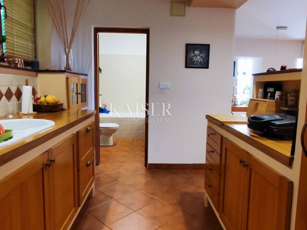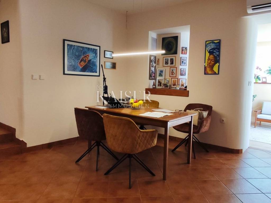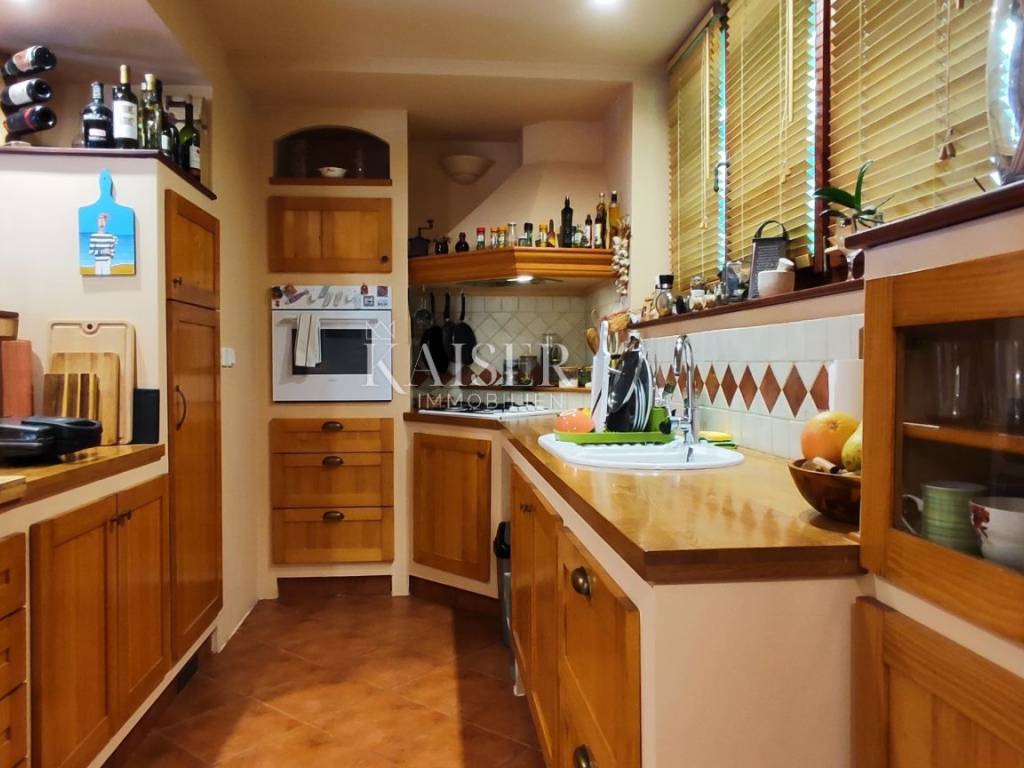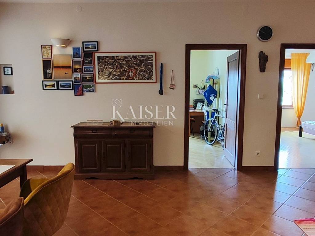 Kaiser Immobilien presents a newly furnished apartment near the center of Opatija. The apartment is located on the first floor of a family building with a total of two floors. The apartment consists of three bedrooms, two of which offer a wonderful view of the sea. It offers an open space used as a spacious living room and dining room with a kitchen. It offers an entrance hall that is illuminated by sunlight throughout the day and offers access to a terrace with a barbecue. The apartment also has an additional room that serves as a storage room and one bathroom. The property has a pleasant design and is fully equipped to make your life in it pleasant. The advantage of the property would certainly be a spacious terrace with a lot of potential and a view of the sea. The apartment comes with a parking space. It is located in a quiet street not far from the center and beaches. Numerous amenities such as cafes, restaurants, boutiques and the like are available in just a few minutes.