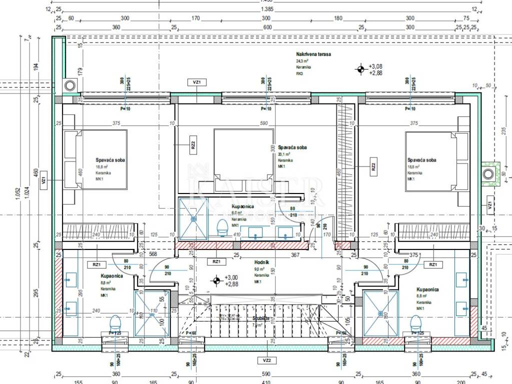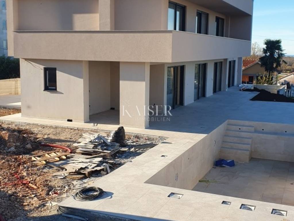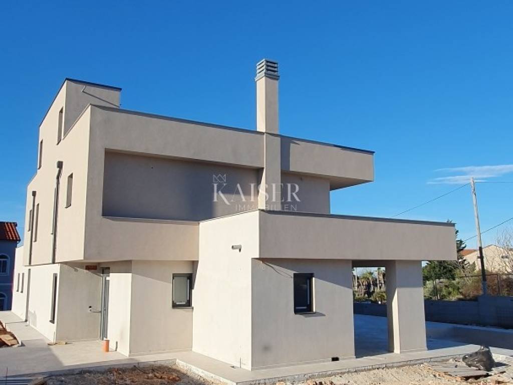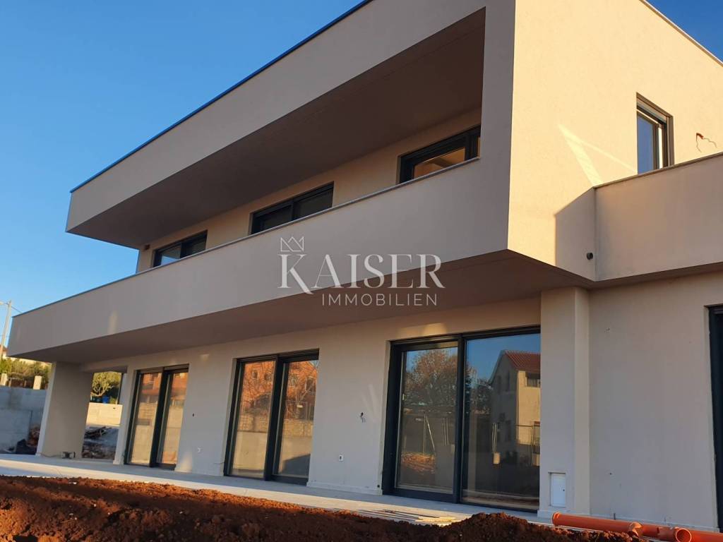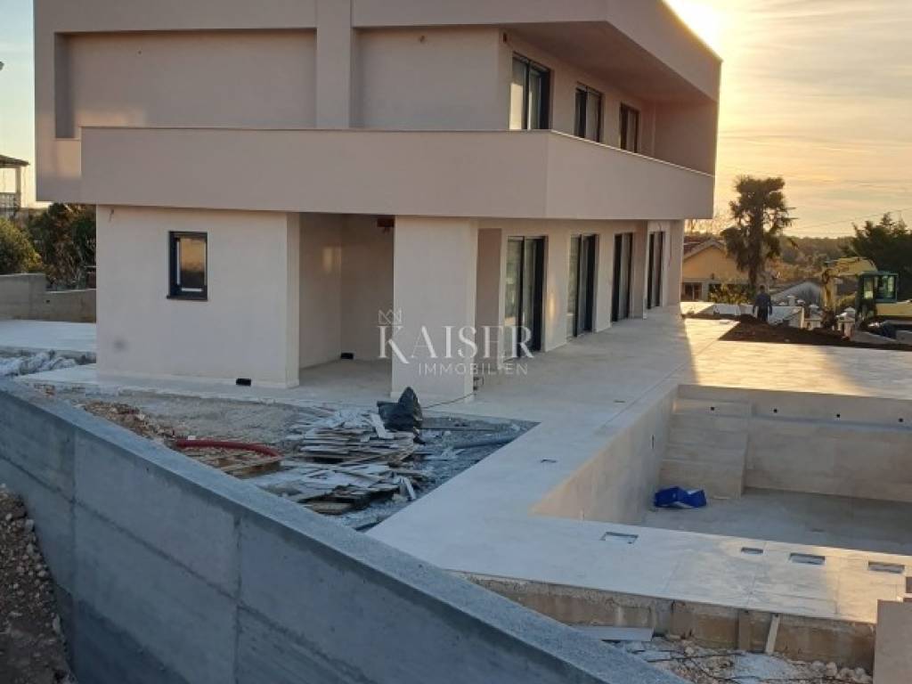 Kaiser Immobilien proudly presents a real beauty among villas., a modern and elegant villa with a swimming pool and sauna and with a beautiful view of the sea and the Austrian Alps. The villa is located in an ideal location only 10 km from the city of Poreč and the first beaches, and close to all the necessary amenities for life., market, school, kindergarten, restaurant that you will easily visit on foot without starting the car. This imposing villa stands gracefully as a detached building on a plot of 979 m2 and is surrounded by a quiet village, beautiful views and green areas. The area of the villa's inner net part is 240 m2, if we add the terraces we arrive at an area of 433 m2. The villa enchants with its perfect balance between contemporary design and modern elements. The exterior and interior of the villa are connected by a very modern design with a spacious and beautifully landscaped lawn with Mediterranean plants and a pleasant heated pool of 40 m2. The villa is a combination of modern design in a natural environment. The villa consists of a ground floor and a first floor, and the special feature of this villa is its spacious roof terrace, measuring 97 m2, which offers a breathtaking view of the sea, the Alps and the village around the villa. The ground floor of the villa is decorated with 1 bedroom with 1 bathroom and its own walk-in wardrobe, kitchen, living room, dining room, 1 guest toilet, storage room and a machine room that has an entrance from the outside and where everything is regulated for Daikin heat pumps, pool heating and underfloor heating. On the first floor of the villa there are 3 more bedrooms with 3 bathrooms, each room has an exit to a balcony, and one bedroom has another additional balcony for itself. Access to the terrace and to the floor inside the villa is provided by internal stairs, which lead to a spacious and beautiful roof terrace with a jacuzzi and sauna, with an irresistible view. The roof terrace provides the possibility of setting up other facilities to make your stay there unforgettable and even more enjoyable. The villa's courtyard will be landscaped with Mediterranean plants, and the entire yard is equipped with irrigation. There is a 40 m2 heated pool, a spacious sunbathing area around the pool and a summer kitchen. additional features: - 4 covered parking spaces, - anthracite black, PVC and aluminum joinery with electric lifts, - electric shutters - heated pool with counter-current swimming - jacuzzi and sauna - insulation - scale-free water softener - water heating - heat pumps Distance from the property to the town: Poreč - Pula Airport, 45 km Poreč - Ljubljana, 162 km Poreč - Vienna, 544 km Poreč - Prague, 868 km Poreč - Munich, 565 km If you are looking for your perfect villa, please contact us with confidence at the phone number 00385 923782803, or at the email address: ivana@kaiser-immobilien.hr. The agency commission is 3% + VAT, and is charged for the first legal act. The villa is subject to VAT and no additional tax is payable on it.