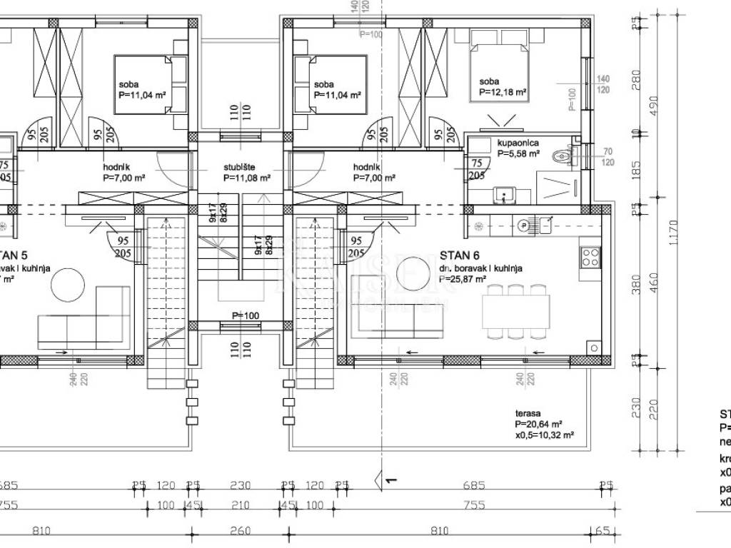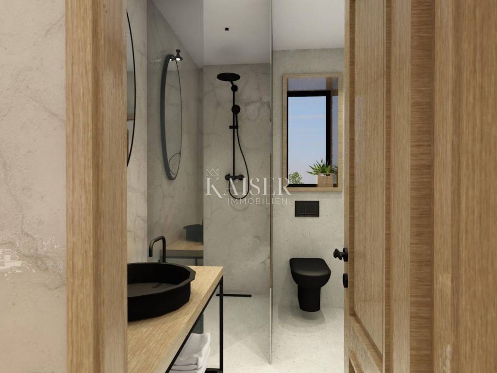 For sale is an apartment in a new building in Sukošan, only 200 meters from the sea and the beach. The building consists of a total of six apartments spread over two floors, and the completion of the works is planned for June 2026. The apartment is located on the second floor and has a total area of 91.69 m², of which the net area of the apartment is 61.67 m², a covered terrace of 20.43 m², a roof terrace of 68.81 m² (calculated 17.20 m²) and a parking space of 2.50 m². The apartment offers a beautiful view of the sea, which further contributes to its attractiveness. The apartment is modernly designed and consists of a living room with a kitchen and dining room of 25.87 m², two bedrooms of 12.18 m² and 11.04 m², a bathroom of 5.86 m², a hallway and a covered terrace of 20.43 m² (calculated 10.32 m²). A special value of this apartment is the large roof terrace of 68.81 m² (calculated 17.20 m²), which provides the perfect space for enjoying the outdoors with a panoramic view of the sea. Special attention has been paid to the quality of construction and furnishing. The building structure is made of reinforced concrete with brick walls, top-quality wood-aluminum joinery has been installed, and the floor coverings include first-class Italian porcelain Marazzi and Mirage and oak parquet in the bedrooms. The bathroom and living room have underfloor heating, while the air conditioning is solved by a Mitsubishi multi split system. Additional value is provided by natural stone in the staircase and entrance to the building, Villeroy & Boch sanitary ware, security doors, a parking space paved with concrete blocks, and a landscaped environment and horticulture. Sukošan is a quiet and attractive place located ten kilometers south of Zadar. It is known for the largest marina on the Adriatic - Dalmatia, numerous beautiful beaches, clear sea, traditional taverns and restaurants, but also excellent transport connections thanks to the proximity of the highway and the airport. The Kornati, Krka and Paklenica national parks are also located in the vicinity, which makes this place perfect for a vacation, life or investment. An apartment in Sukošan represents a combination of modern architecture, top-notch equipment and an ideal location in the immediate vicinity of the sea, which makes it an excellent choice for anyone looking for a quality living space or a safe investment on the Adriatic. The price is not fixed. The agency's commission for the buyer is 3% + VAT and is paid in the case of purchasing a property, upon conclusion of the first legal act. Contact us with confidence for more information and to arrange a viewing. Tel: +385915404646 Email: vedran@kaiser-immobilien.hr