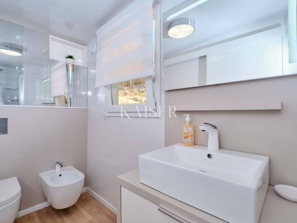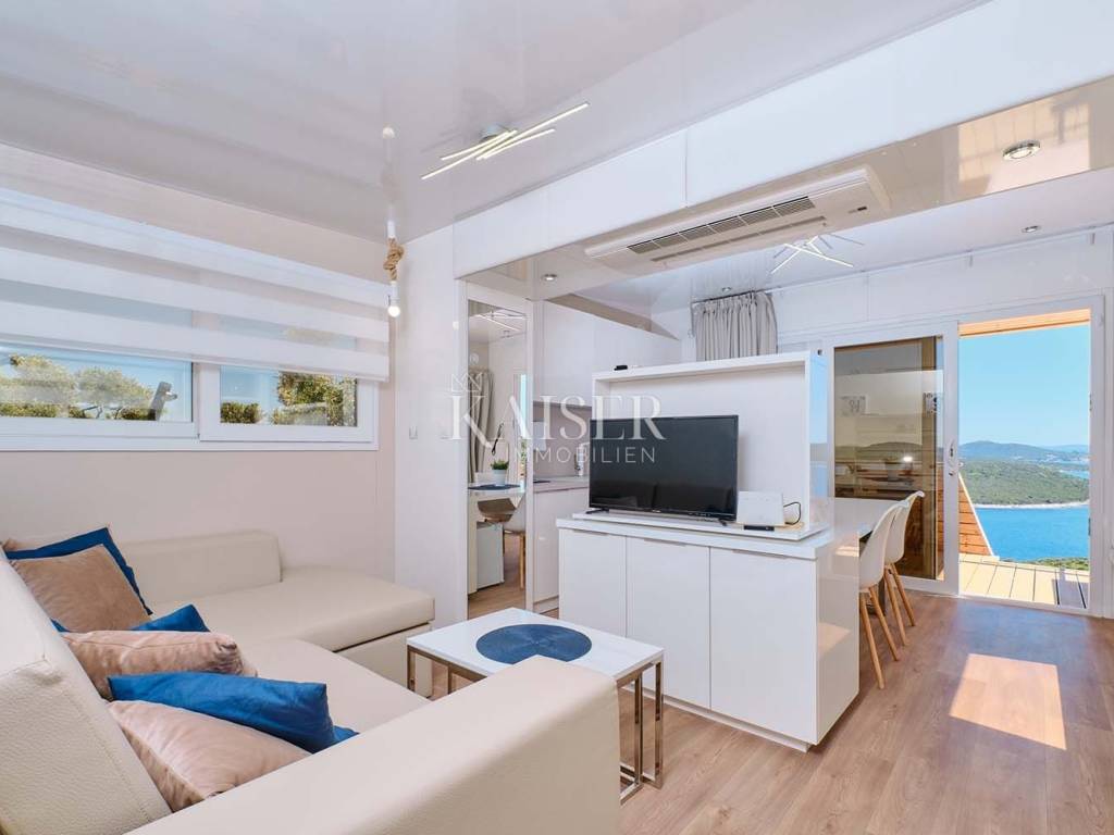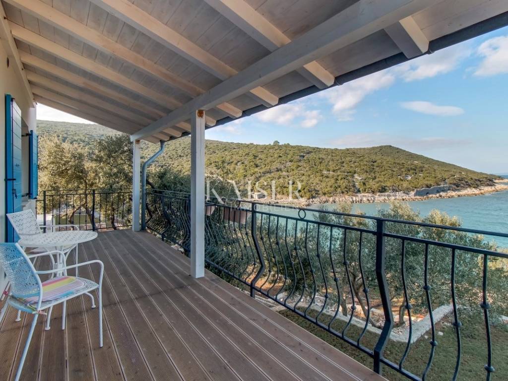 Detailed description of the properties 1. Main luxury villa (168 m²) A spacious residence designed for maximum comfort. • Interior: 2 spacious bedrooms with double beds, large living room with fireplace and access to the terrace, fully equipped kitchen with dining area. • Bathrooms: 2 bathrooms (one with a bathtub, the other with a shower). • Exterior: Enclosed garden providing privacy, large sun terraces, outdoor dining area, barbecue and outdoor shower. 2. Smaller stone house (42 m²) – "House by the Sea" Authentic Mediterranean architecture just a few steps from the water. • Layout: Independent unit ideal for guests, staff or as a beachside facility. • Atmosphere: Original stone elements combined with modern comfort, complete peace and view of the sea surface.