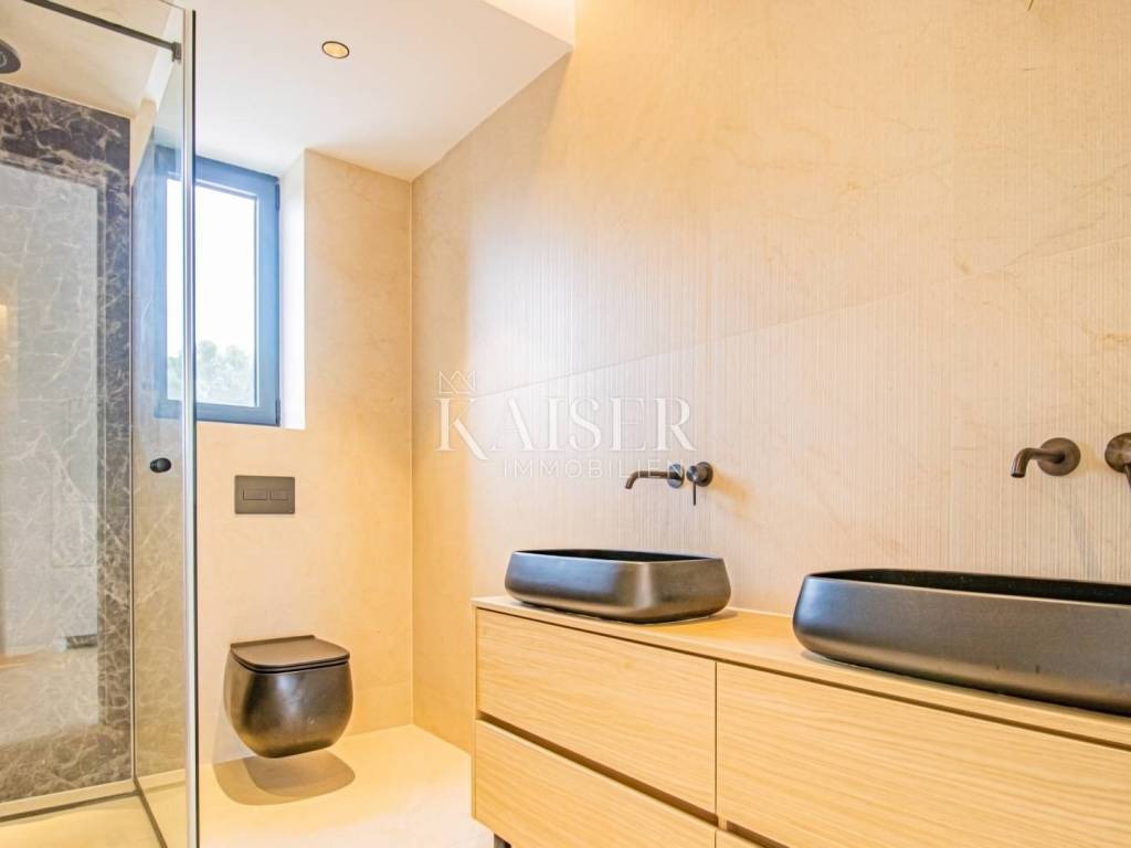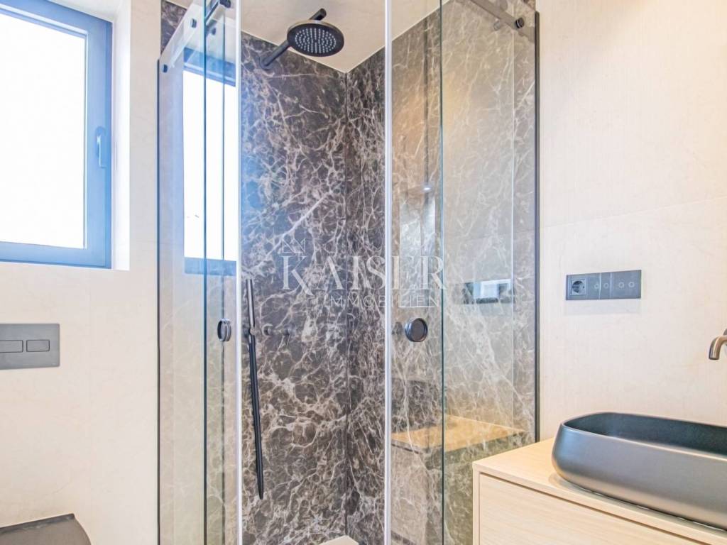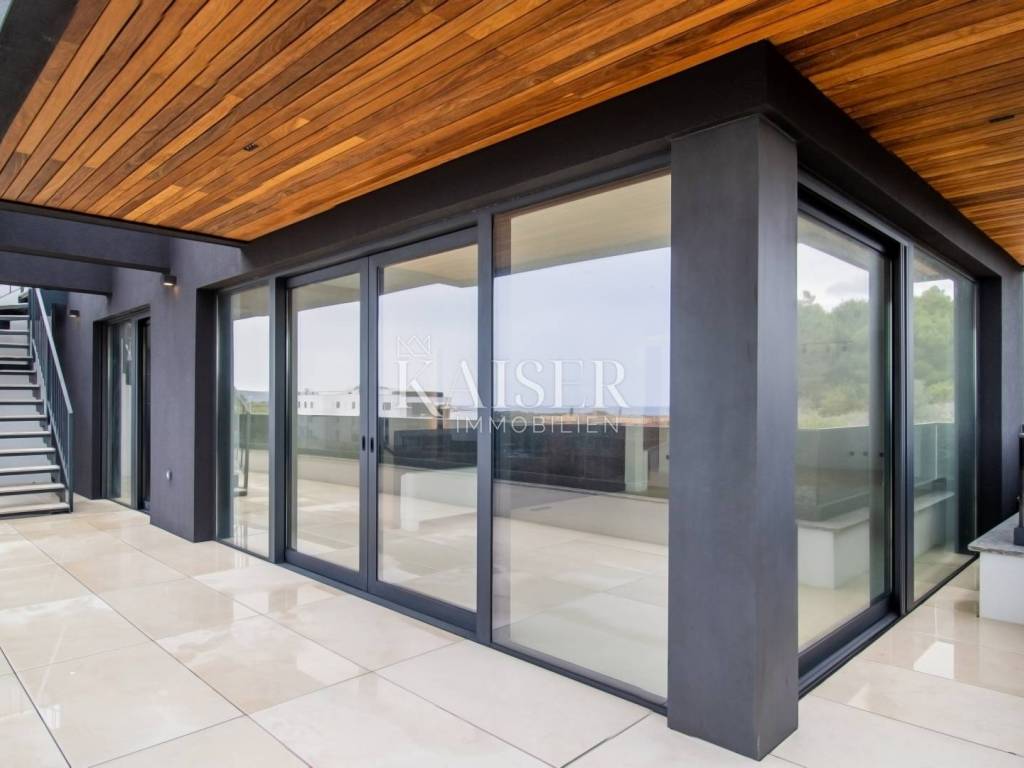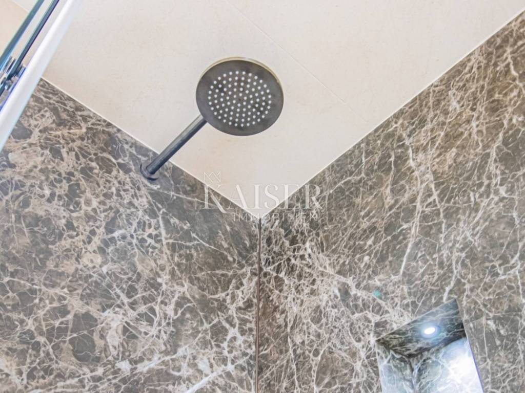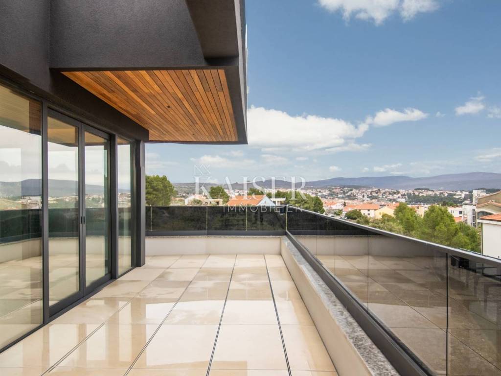 Kaiser immobilien is mediating the sale of an exclusive penthouse apartment in a very attractive location in the town of Krk. The penthouse is located on the second floor of a two-story house in a new building just 400m from the sea. The net area is 170m2 and includes an open space concept with a living room, kitchen and dining room of 53m2, three bedrooms, three bathrooms, a walk-in wardrobe, a storage room and a balcony of 38m2. The penthouse also has a roof terrace of 89m2 with preparations for a 21m2 swimming pool. The entire apartment offers a beautiful view of the sea, while the view from the balcony and especially the roof terrace is breathtaking. The apartment also has a storage room in the basement and two parking spaces. Top quality materials were used in the construction and furnishing, the exterior walls are well insulated with 15cm of thermal insulation, the highest quality ceramics have been installed, natural wood parquet floors in the rooms, stone stairs, a top quality lighting system and modern lighting fixtures, underfloor heating and cooling via fan coilers powered by heat pumps, massive aluminum joinery with mosquito nets and electric shutters. ID CODE 107-06 The agency commission for the buyer is 3% + VAT and is paid in the case of purchasing a property, upon conclusion of the first legal act.