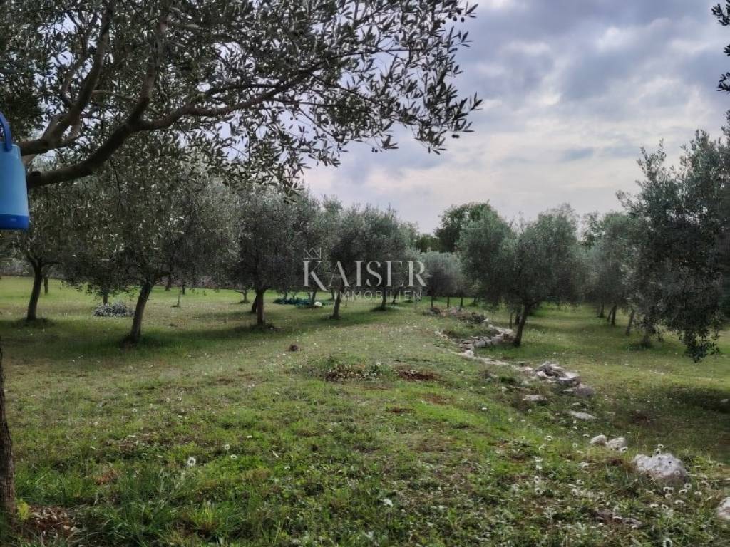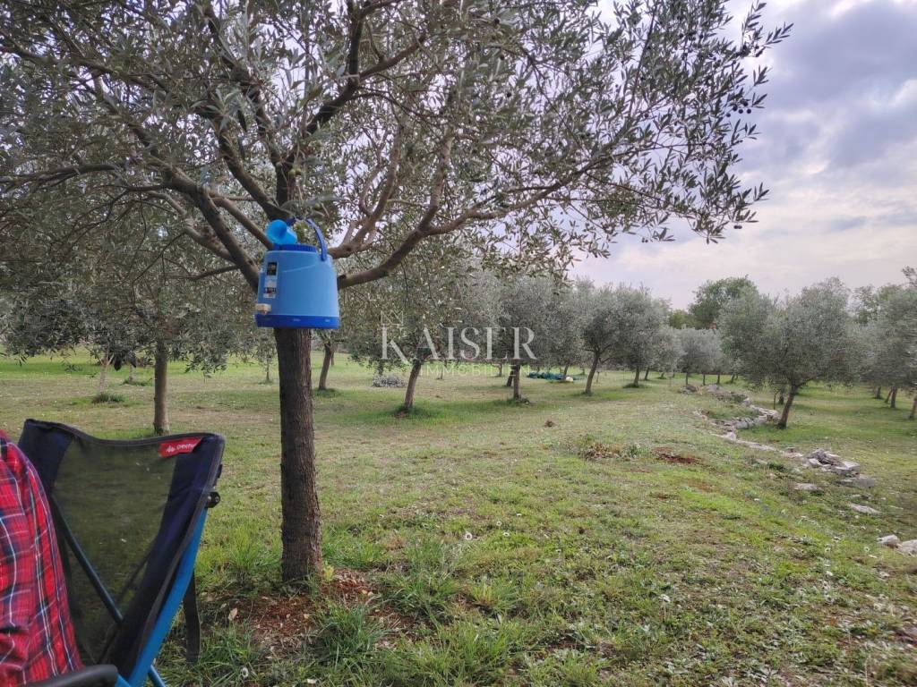 Kaiser Immobilien predstavlja veliko poljoprivredno zemljište površine 2126 m², na kojem se nalazi ograđeni maslinik sa 90 maslina posađenih prije dvadesetak godina. Parcela je pravilnog oblika, širine oko 36 metara i duljine oko 60 metara, te je u potpunosti ograđena tradicionalnim suhozidom. U sklopu zemljišta nalazi se i renovirani istarski kažun, što prostoru daje poseban šarm i autentičan istarski ugođaj. Glavni priključak za vodu nalazi se na udaljenosti od približno 800 metara. Masline redovito daju godišnji prinos od 600 do 700 kilograma ploda, uz radman od oko 13%. O njima se pažljivo brine svake godine – redovito se orezuju, špricaju i gnoje. Parcela je smještena u mirnom okruženju, okružena drugim maslinicima, što je čini idealnom za nastavak poljoprivredne proizvodnje, posebno uzgoja i prerade maslina, ali i kao mirno mjesto za odmor i uživanje u prirodi.