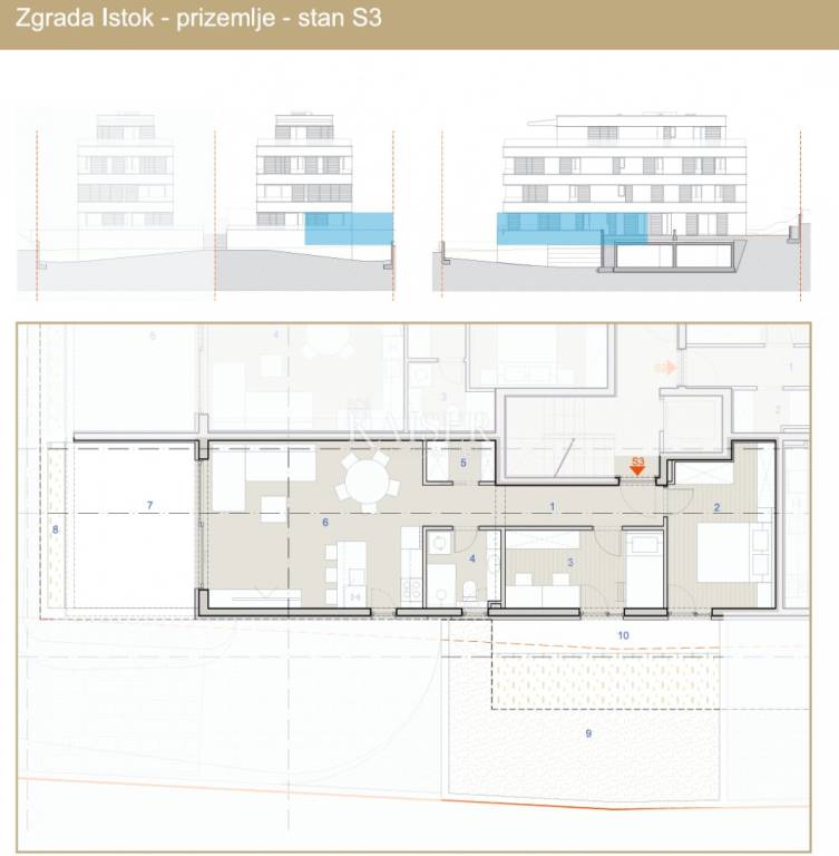 Kaiser Immobilien presents: Comfortable two-bedroom apartment (S3) on the ground floor with a private garden, FIRST ROW TO THE SEA, Kaštel Sućurac In an exceptional location, first row to the sea, this beautiful, new and modern two-bedroom apartment is located. As part of an exclusive residential complex, this ground floor apartment offers a unique blend of luxury, comfort and a direct connection to nature, with a beautiful sea view. ABOUT THE PROJECT: This apartment has been carefully designed to emphasize open, bright spaces and a seamless connection to the natural environment. Large terraces and private gardens offer beautiful sea views, while high-quality materials and refined architectural design ensure lasting value. The complex consists of smaller buildings with only 8 apartments, which guarantees privacy and exclusivity. ABOUT THE APARTMENT: Designation: Building Istok - Ground floor - Apartment S3 Total corrected area: 72.04 m² APARTMENT LAYOUT: Entrance area / hallway: 7.10 m² Bedroom 1: 11.85 m² Bedroom 2: 8.93 m² Bathroom: 4.13 m² Storage room / wardrobe: 2.03 m² Kitchen, dining room and living room: 25.87 m² Covered terrace: 15.57 m² (calculated 7.79 m²) Garden 1: 2.00 m² (calculated 0.20 m²) Garden 2: 28.36 m² (calculated 2.84 m²) Paved path: 6.52 m² (calculated 1.30 m²) TOP EQUIPMENT AND AMENITIES: First row to the sea location: Unobstructed sea view and direct access to the coast. Private garden and large covered terrace: Spacious outdoor area with a landscaped garden and a large terrace, ideal for relaxing and enjoying the Mediterranean ambiance. Underground garage: The garage is connected by an elevator to all floors for maximum comfort. High-quality materials: Top-quality parquet and ceramics. Air conditioning: Multi-zone air conditioning. Aluminum sliding shutters: For sun protection and additional privacy. Underfloor heating: In the bathroom for additional comfort. Flexibility: Possibility to choose finishing materials during construction. "Turnkey" concept: The apartment is sold completely finished (without furniture). PRICE AND TAX BENEFITS: VAT included in the price: No additional hidden costs. No real estate transfer tax: The buyer is exempt from paying real estate transfer tax (3%). Parking: Possibility to purchase a garage parking space at a price of €20,000 or an outdoor parking space at a price of €10,000. LOCATION: Kaštel Sućurac, located between Split and Trogir, offers the perfect combination of peaceful life by the sea and proximity to all urban amenities. This location provides quick access to the airport, highway and all cultural and historical landmarks of the region. Don't miss the opportunity to become the owner of this unique property in one of the most attractive locations on the Adriatic! The agency commission for the buyer is 3% + VAT and is paid in the case of purchasing a property, upon conclusion of the first legal act. Viewing the property is possible only with the prior signing of a real estate brokerage contract. If you would like to visit the property in person, please contact: Joško Bašić E-mail: josko@kaiser-immobilien.hr Tel: +385-91-511-2993 http://kaiser-immobilien.hr/