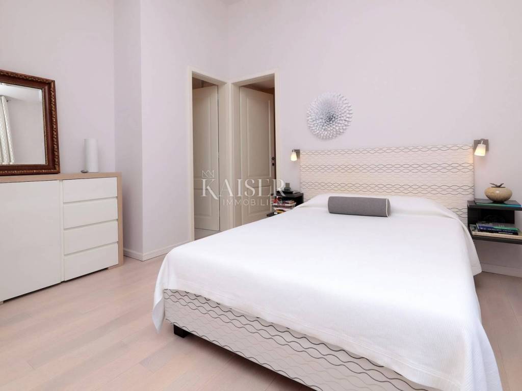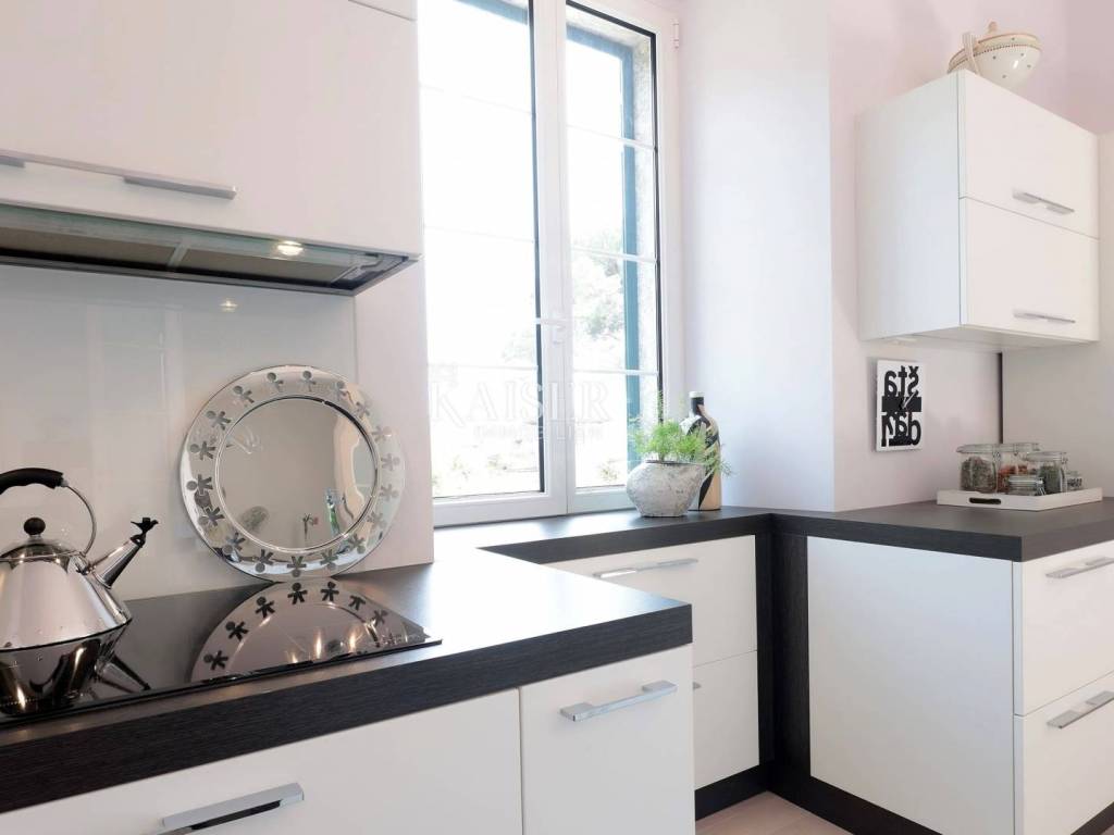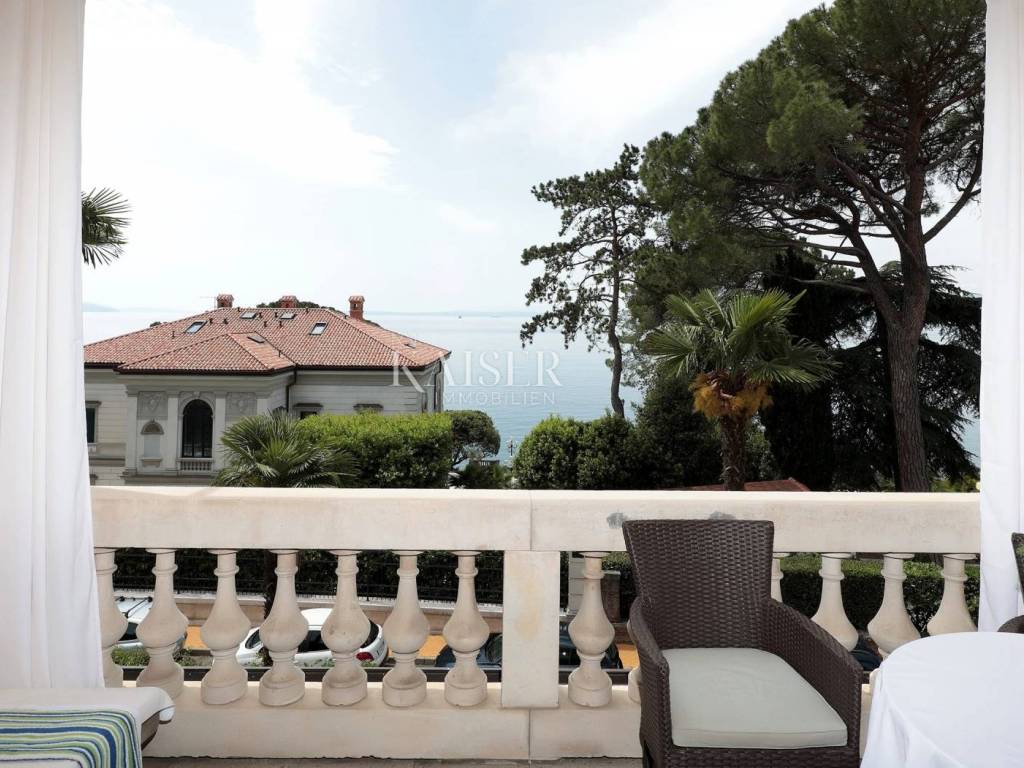 Kaiser Immobilien offers for sale a luxurious, modernly furnished apartment, located second row from the sea in a historic villa from the 19th century. This beautiful apartment of 82 m2 is south-facing, which ensures plenty of sunlight throughout the day. The apartment consists of a spacious and elegantly furnished living room that is connected to a modern open-concept kitchen. The kitchen is fully equipped with top-of-the-line appliances, while the central part is dominated by an island providing additional work space and a place to socialize. The living room opens onto a spacious terrace that extends towards the sea and offers a beautiful sea view. The apartment has two bedrooms, one of which has its own bathroom, providing additional privacy and comfort. In addition, the apartment has an additional storage room, ideal for storing things, and a separate toilet, which further increases the functionality of the space. Additional amenities include a 10 m2 attic room, and a 10 m2 woodshed perfect for storing things or other necessities. The apartment also includes a 50 m2 landscaped courtyard. The apartment has been completely renovated and is being sold furnished. The apartment also comes with one parking space, which is a rarity considering it is located in the very center. The location is extremely convenient, only 2 minutes from the beach and the center. LOCATION: Volosko is a charming seaside town, only 2 km from Opatija, known for its picturesque old town, charming harbor and beautiful Lungomare promenade, Opatija's favorite promenade that takes you all the way to Lovran. Volosko is also synonymous with good gastronomy today - from typical taverns and fish markets where you can enjoy local specialties, to top-notch restaurants that have found their place in the world's most prestigious gourmet guides - Volosko offers all this, and much more. Distance from the property to the town: Opatija - Ljubljana, 109 km Opatija - Vienna, 490 km Opatija - Prague, 762 km Opatija - Munich, 510 km The agency commission for the buyer is 3% + VAT. The commission covers all services related to the purchase and is paid only in the case of purchasing a property, upon conclusion of the first legal act. If you want this beautiful house to become your new home or are looking for a property for business purposes in the form of a rental, please contact me at 00385 976839504, or at the email address: ilijana@kaiser-immobilien.hr.