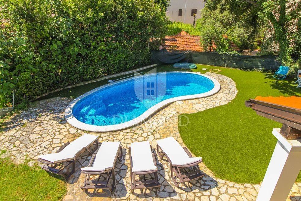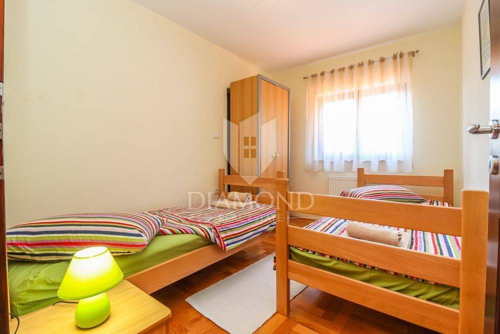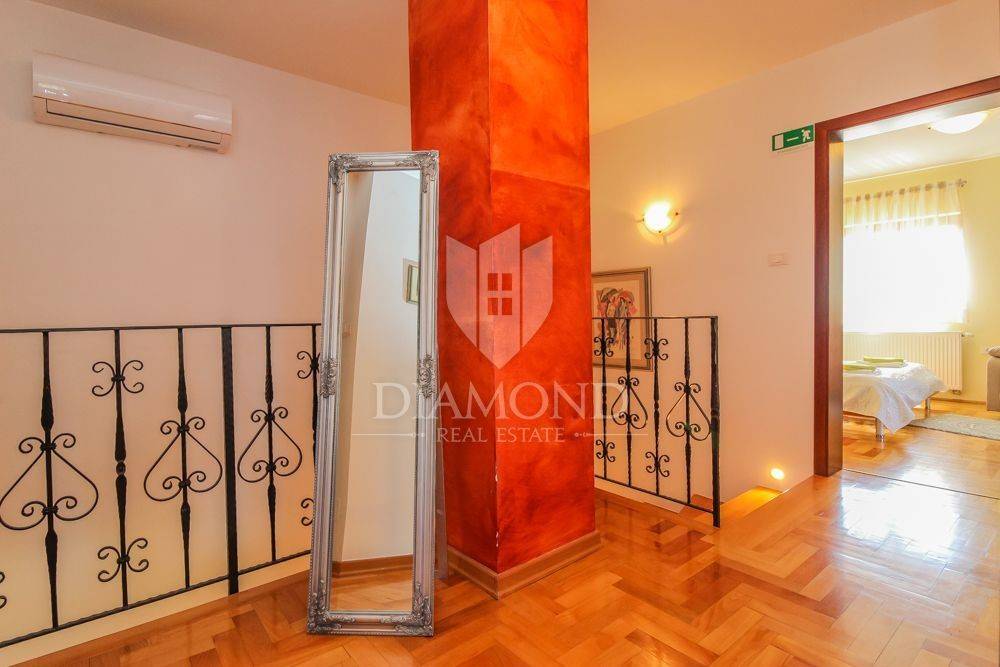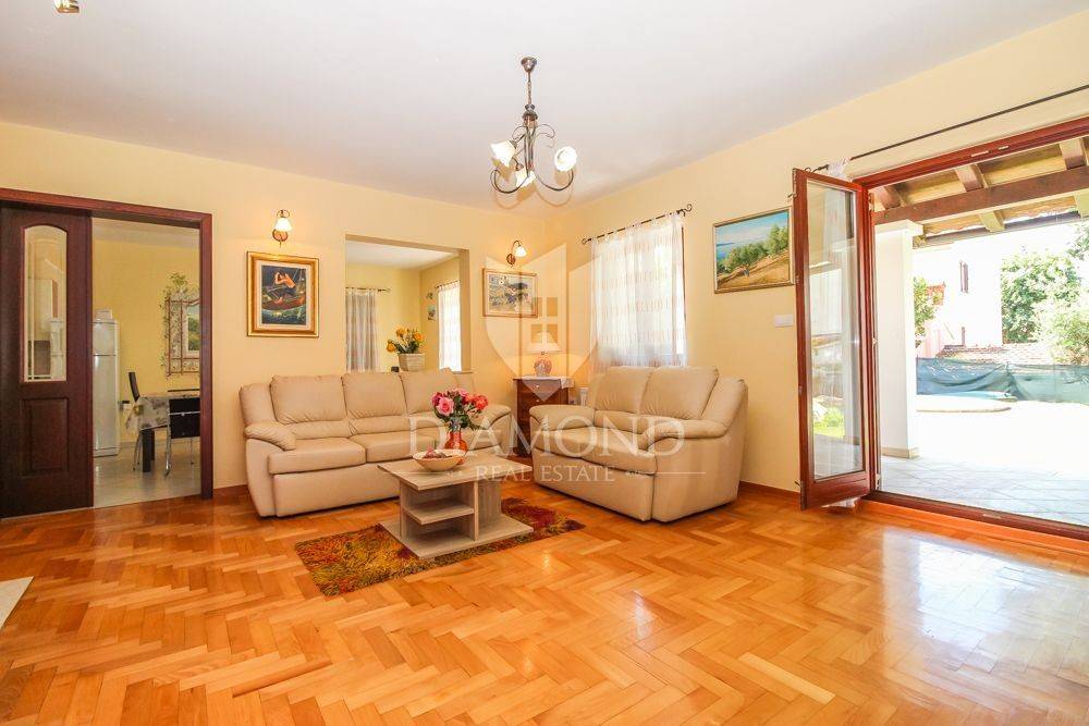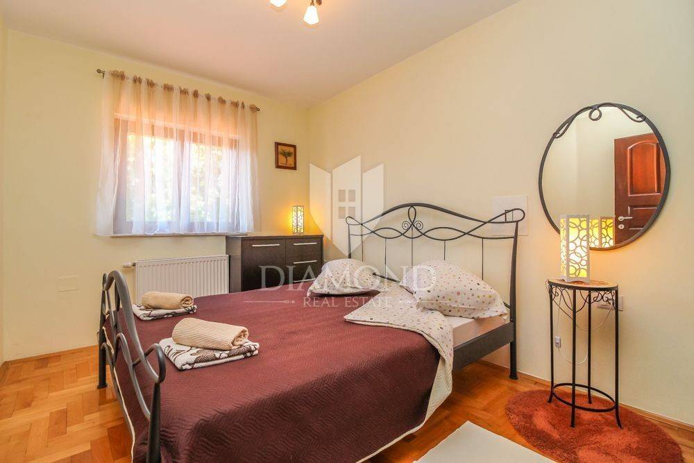 In this tourist resort Medulin, known for its long sandy beaches and numerous amenities, this elegant holiday home is located. The house is located on the edge of the settlement in only 800 m from the beach. The green, peaceful environment will surely be appreciated by green and peace lovers and animal owners. A short walk takes you to all the contents from gastronomy to entertainment and enjoyment.