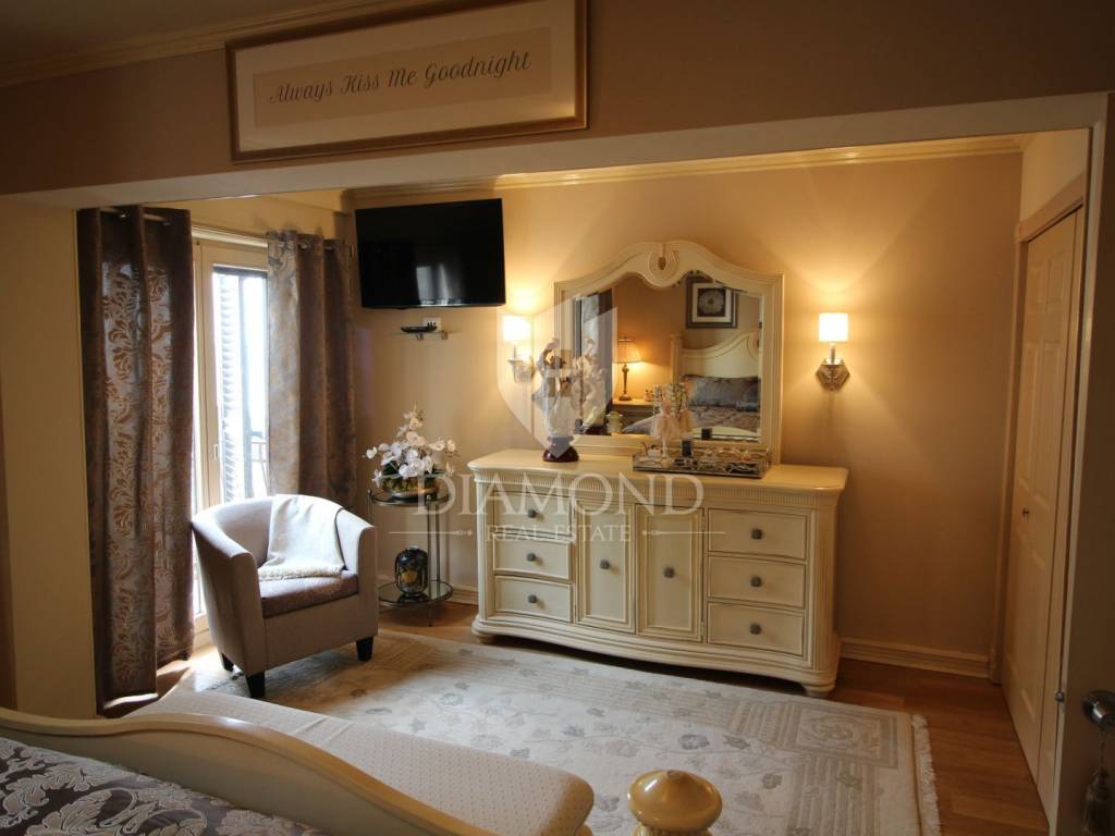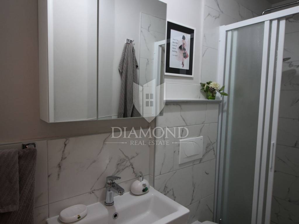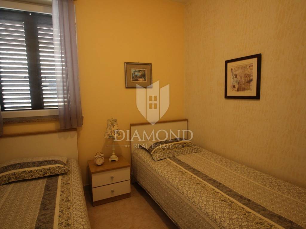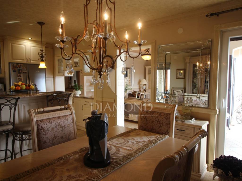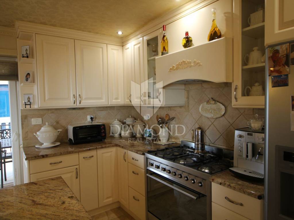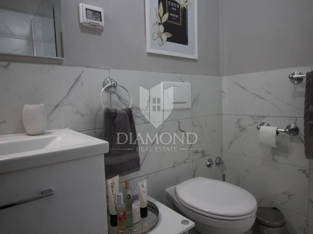 On a small hill not far from the town of Labin is this detached house with a priceless sea view. The house has a total area of 493 square meters, built on a plot of 662 square meters. It consists of a basement, ground floor and first floor. In the basement there is a kitchen, two bedrooms, a bathroom, a laundry room and a terrace with an open view of the sea. There are two separate apartments on the ground floor, which can be connected through a common entrance if there is a larger family in them. Apartments bring good income when renting out tourists. In one apartment, which was completely renovated in 2022, there is a kitchen, two bedrooms, two bathrooms, and a terrace with a priceless view of the sea. In the second apartment there is a kitchen, two bedrooms, a bathroom and two terraces, one of which offers a priceless view of the sea. From the second terrace, there is a partially open view of the sea and the view of the Old Town of Labin. It is ideal for evening get-togethers with your favorite summer drink. On the first floor there is a kitchen, living room, dining room, two bedrooms, bathroom and two terraces. One terrace offers a beautiful view of the sea, and the other offers a view of the sea and the Old Town of Labin. The second terrace is ideal for family get-togethers with family and friends. Behind the house in the garden, where there is a large terrace, there is the possibility of building a summer kitchen and setting up a barbecue. In front of the house on a spacious garden, there is the possibility of building a swimming pool that would offer a beautiful view of the sea. The issue of heating and cooling was solved by installing air conditioners and gas central heating. Parking for four cars is provided. The house is worth noting because of its location near the sea and the extraordinary view of Kvarner and the nearby islands. The property is ideal for an established tourist investment or family life.
