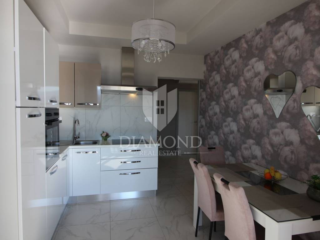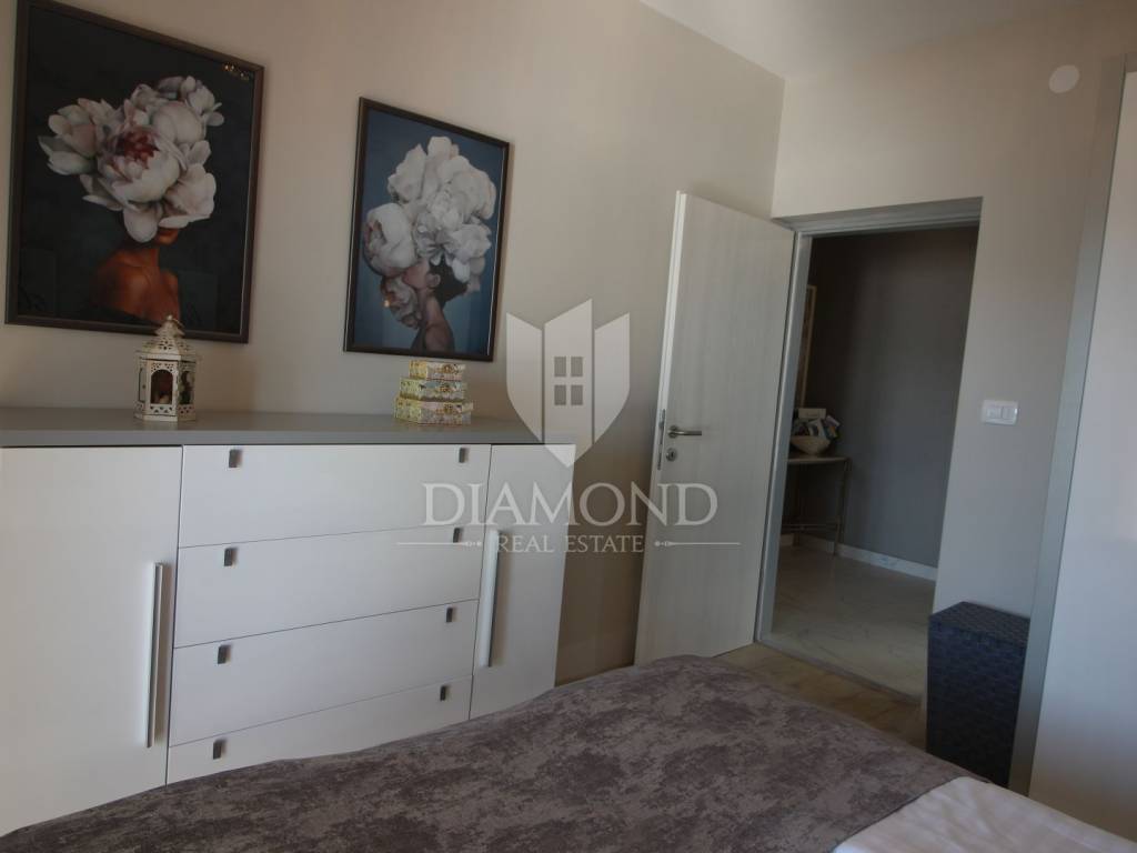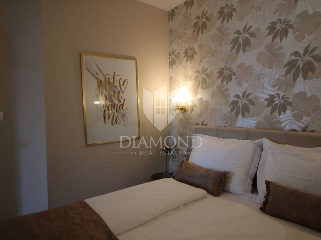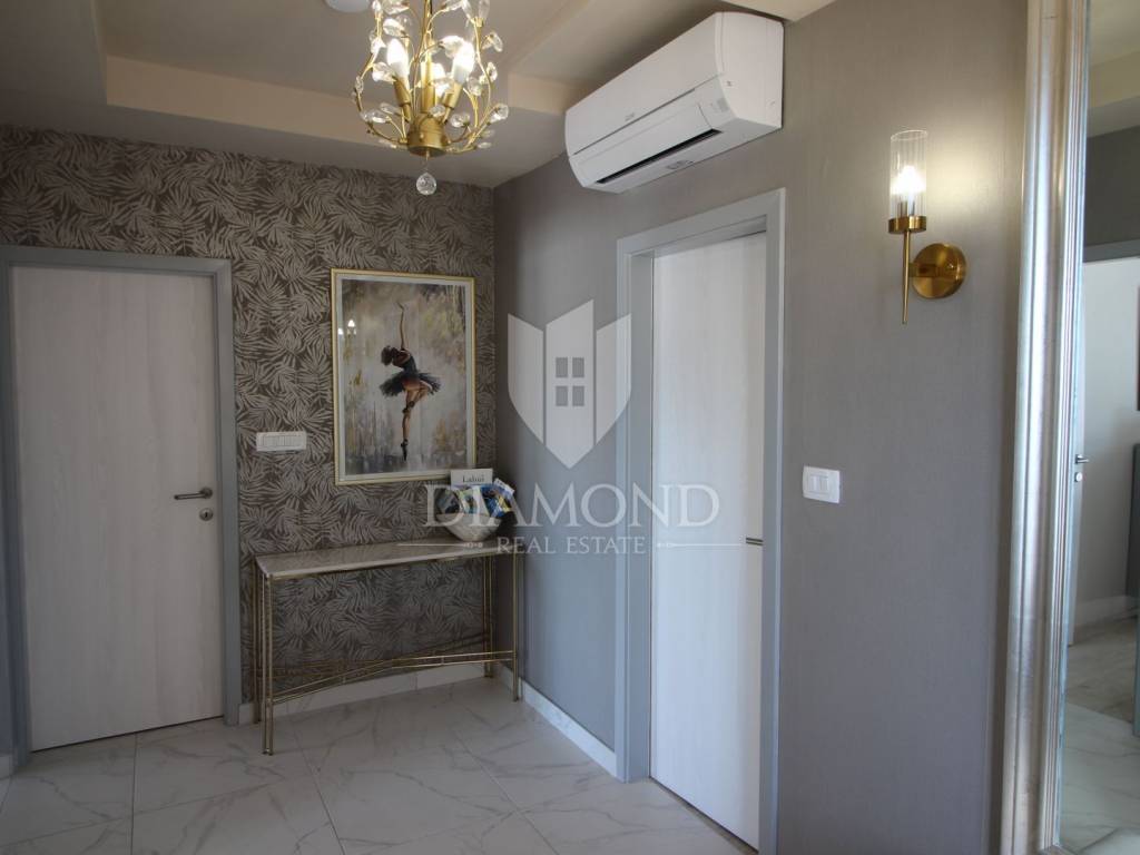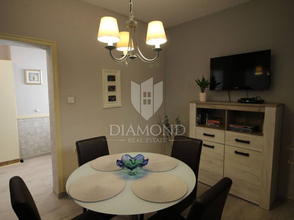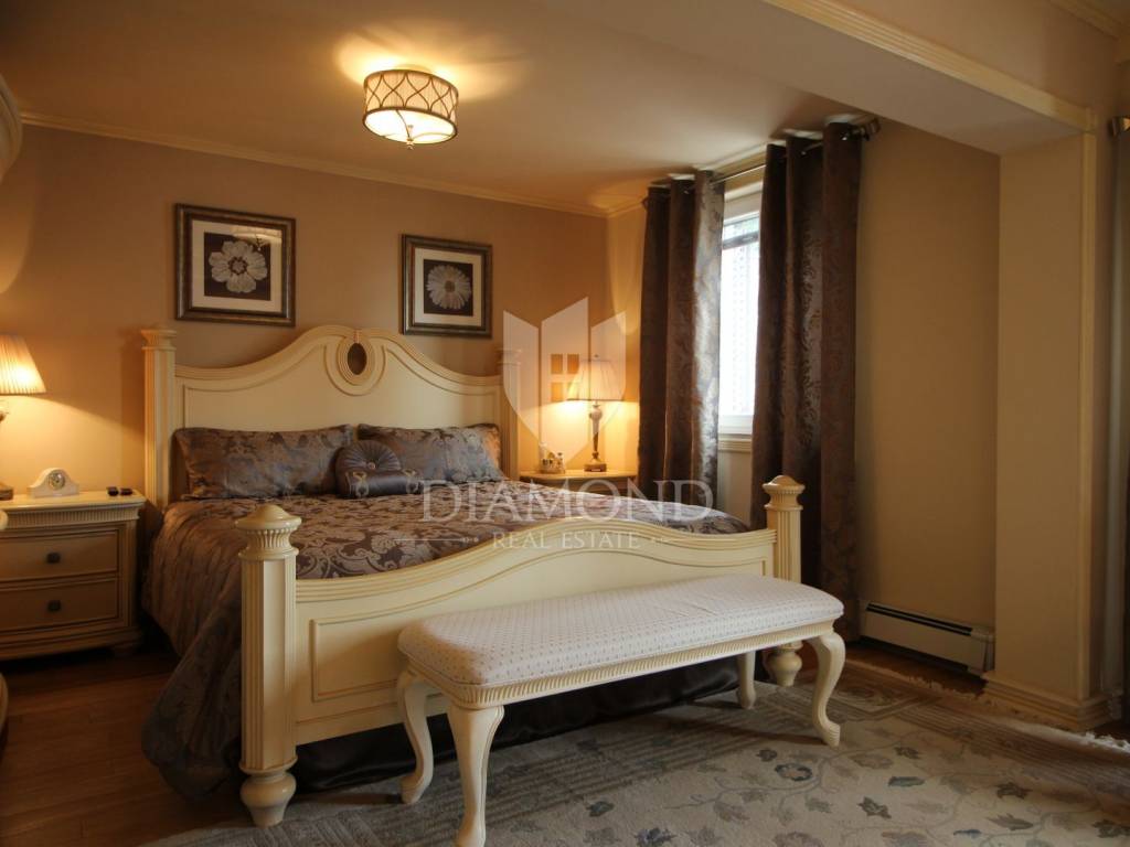 On a small hill not far from the town of Labin is this detached house with a priceless sea view. The house has a total area of 493 square meters, built on a plot of 662 square meters. It consists of a basement, ground floor and first floor. In the basement there is a kitchen, two bedrooms, a bathroom, a laundry room and a terrace with an open view of the sea. There are two separate apartments on the ground floor, which can be connected through a common entrance if there is a larger family in them. Apartments bring good income when renting out tourists. In one apartment, which was completely renovated in 2022, there is a kitchen, two bedrooms, two bathrooms, and a terrace with a priceless view of the sea. In the second apartment there is a kitchen, two bedrooms, a bathroom and two terraces, one of which offers a priceless view of the sea. From the second terrace, there is a partially open view of the sea and the view of the Old Town of Labin. It is ideal for evening get-togethers with your favorite summer drink. On the first floor there is a kitchen, living room, dining room, two bedrooms, bathroom and two terraces. One terrace offers a beautiful view of the sea, and the other offers a view of the sea and the Old Town of Labin. The second terrace is ideal for family get-togethers with family and friends. Behind the house in the garden, where there is a large terrace, there is the possibility of building a summer kitchen and setting up a barbecue. In front of the house on a spacious garden, there is the possibility of building a swimming pool that would offer a beautiful view of the sea. The issue of heating and cooling was solved by installing air conditioners and gas central heating. Parking for four cars is provided. The house is worth noting because of its location near the sea and the extraordinary view of Kvarner and the nearby islands. The property is ideal for an established tourist investment or family life.