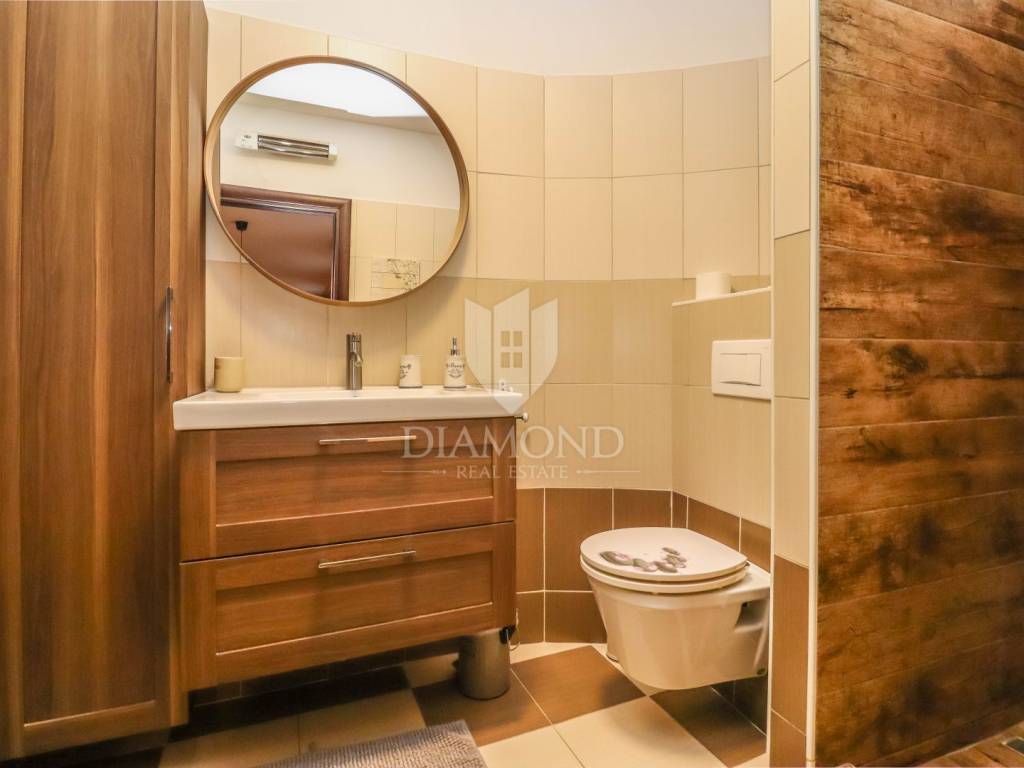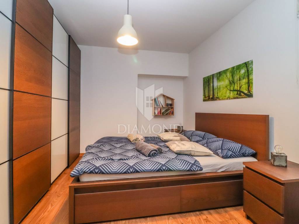 The apartment consists of an entrance hall, a spacious bedroom that is decorated for maximum comfort, and a modern bathroom. The central part consists of an open living room, kitchen and dining room, ideal for socializing and relaxing. Also, the apartment has a practical storage room on the ground floor of the building, which is perfect for additional storage.