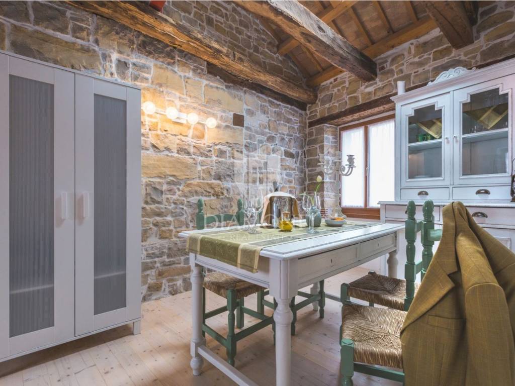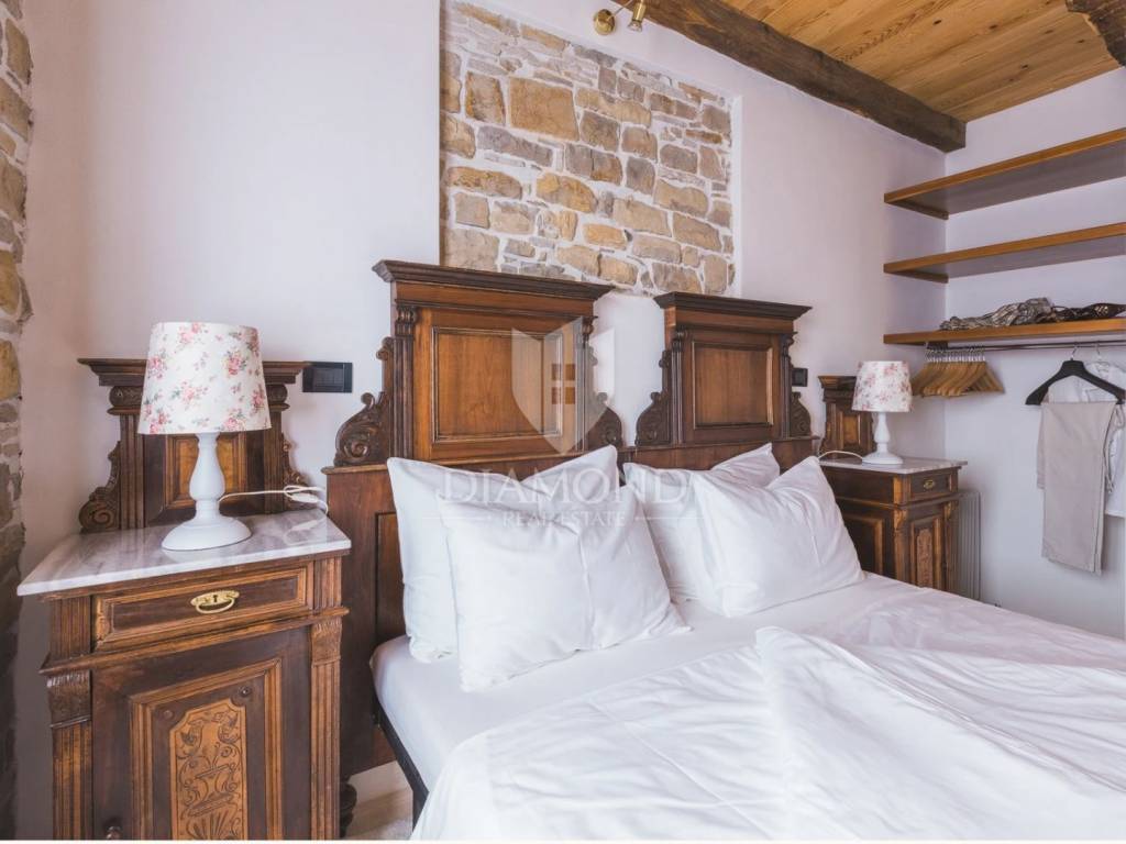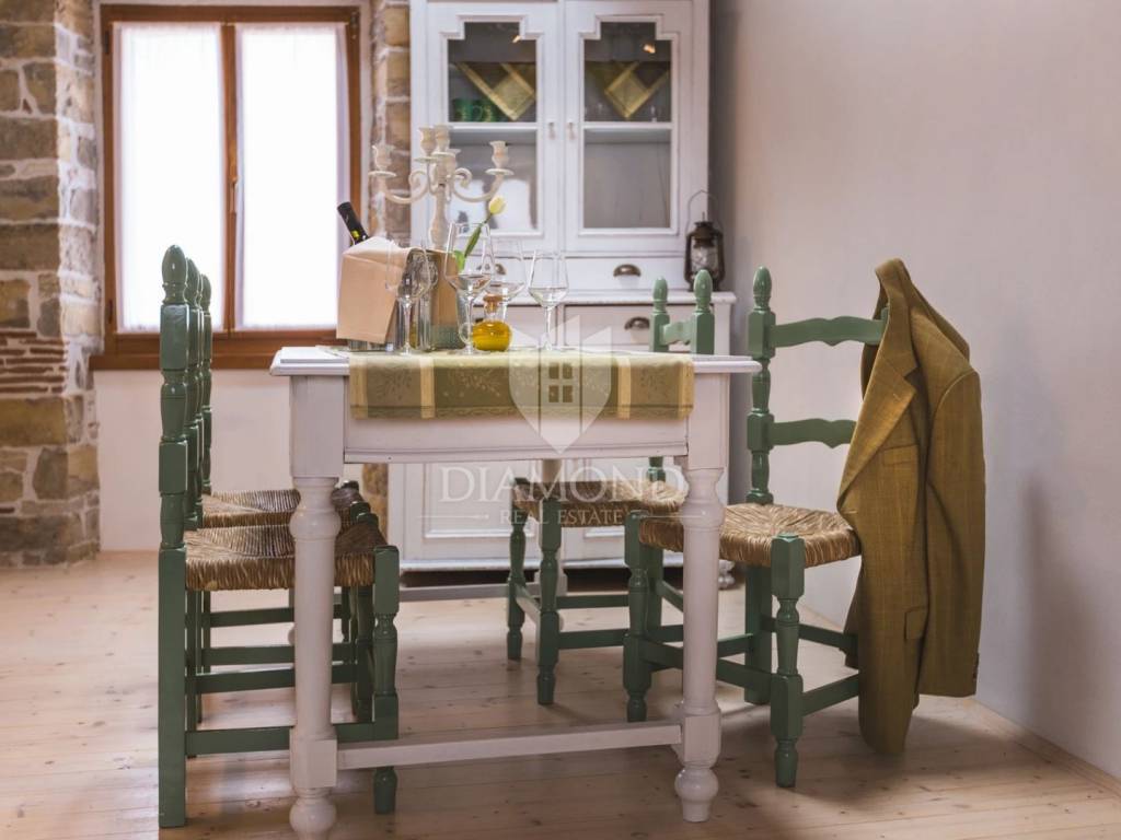 Located in the heart of the idyllic town of Oprtalj, this authentic house has been completely renovated with meticulous attention to every detail, focusing on preserving the Istrian tradition. Surrounded by the beautiful Istrian landscape, the property offers a unique opportunity for living and business in the old town center.