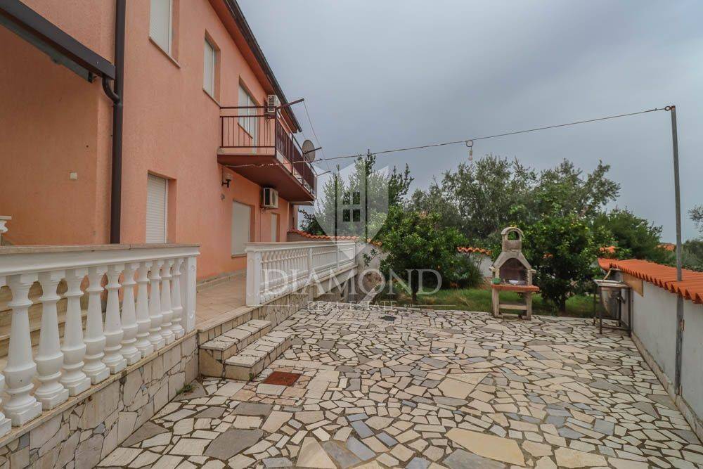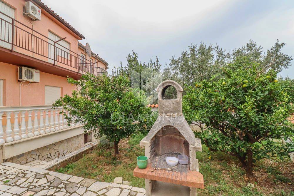 The house consists of 3 floors - basement, ground floor and 1st floor. The basement consists of two rooms (30m2). On the ground floor there are two apartments. One two-bedroom and one one-bedroom. On the first floor of the house there is a large apartment of 115m2 consisting of 3 bedrooms and a large terrace with a view of Premantura and the sea. In the garden there is a summer kitchen and greenery with planted fruit trees.