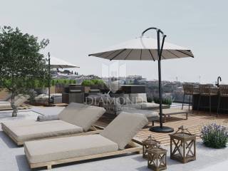 The apartment also boasts its own rooftop terrace, equipped with connections for a jacuzzi, sauna, and summer kitchen. The price includes two parking spaces, adding to the practicality and value of this property.