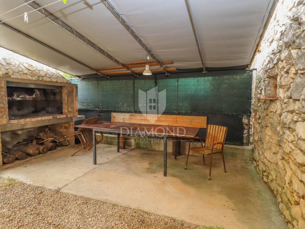 The area of the old house is 84m2, of which 40m2 is the floor plan. A new wooden roof has been made, so the house is dry, and the concrete floor. Electricity and water are nearby. The electricity connection has been temporarily resolved. The old house is temporarily used as a practical tavern with a covered courtyard where a brick fireplace is located. There is a possibility of building an additional floor, which gives it the possibility of building a comfortable family house with its own courtyard or parking.