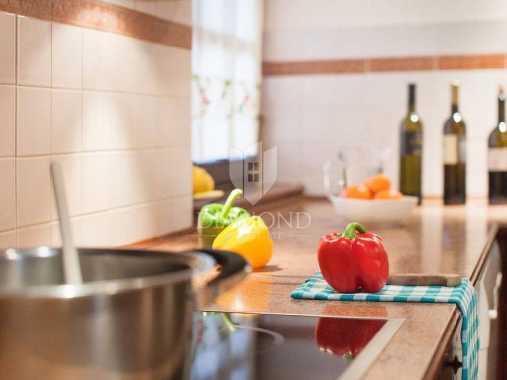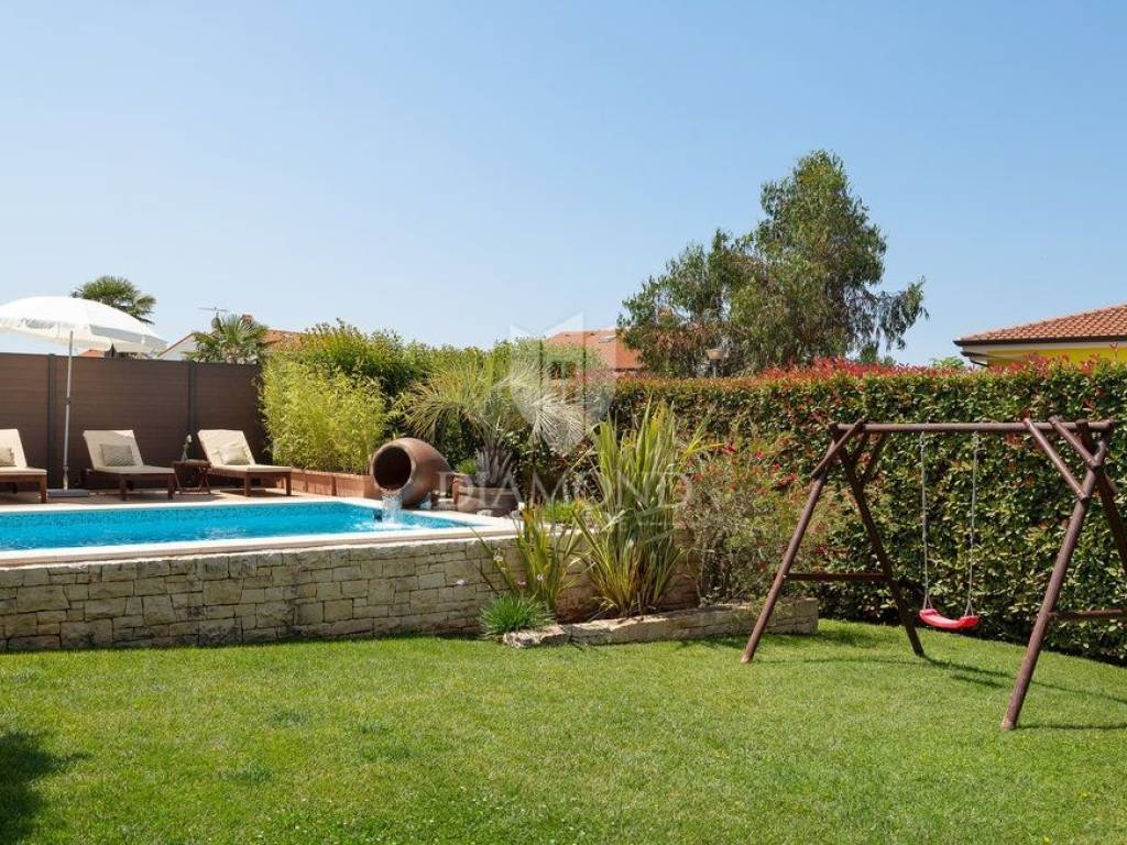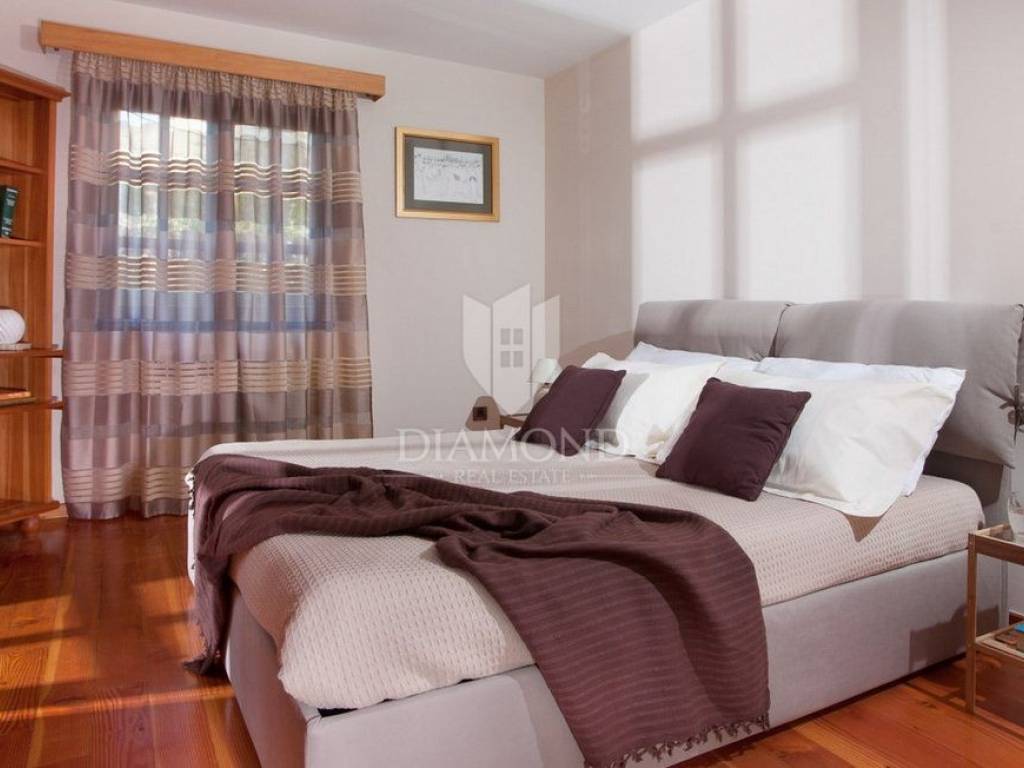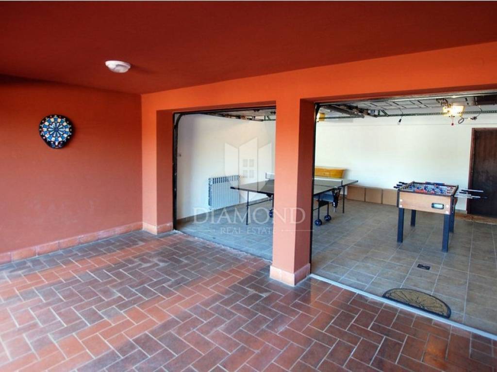 In a quiet location in the suburbs of Poreč, just 3 km from the city center, is this spacious house with a swimming pool, with a total living area of 330 m2. Situated on the edge of a construction zone, this property offers the perfect balance between privacy and proximity to all necessary amenities. The house is located 3.5 km from the nearest beaches, while shopping centers are only 2.5 km away. The location provides quick access to the city's infrastructure, while at the same time guaranteeing peace and relaxation. The house is spread over three floors: The basement includes a garage for two vehicles, a boiler room, a laundry room and an additional storage room. The ground floor is the central part of the house, with a spacious living room that connects to the dining room and kitchen. Glass walls provide direct access to the covered terrace by the pool. On this floor there are also three bedrooms, two bathrooms and a guest toilet. The attic has been adapted to additional needs, with a space that is currently used as a bedroom, but can also be used as an office. The garden features Mediterranean plants, a lawn and a large swimming pool with a sun terrace. An automatic irrigation system allows for easy maintenance of the garden. The garden is fully fenced, ensuring privacy, and public parking for several vehicles is available in front of the entrance gate. The house is sold fully furnished and equipped for comfortable living while also providing a return on investment through rentals. Don't miss the opportunity to own this exceptional property!