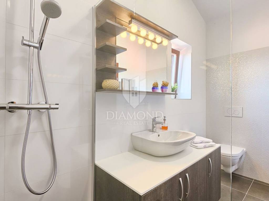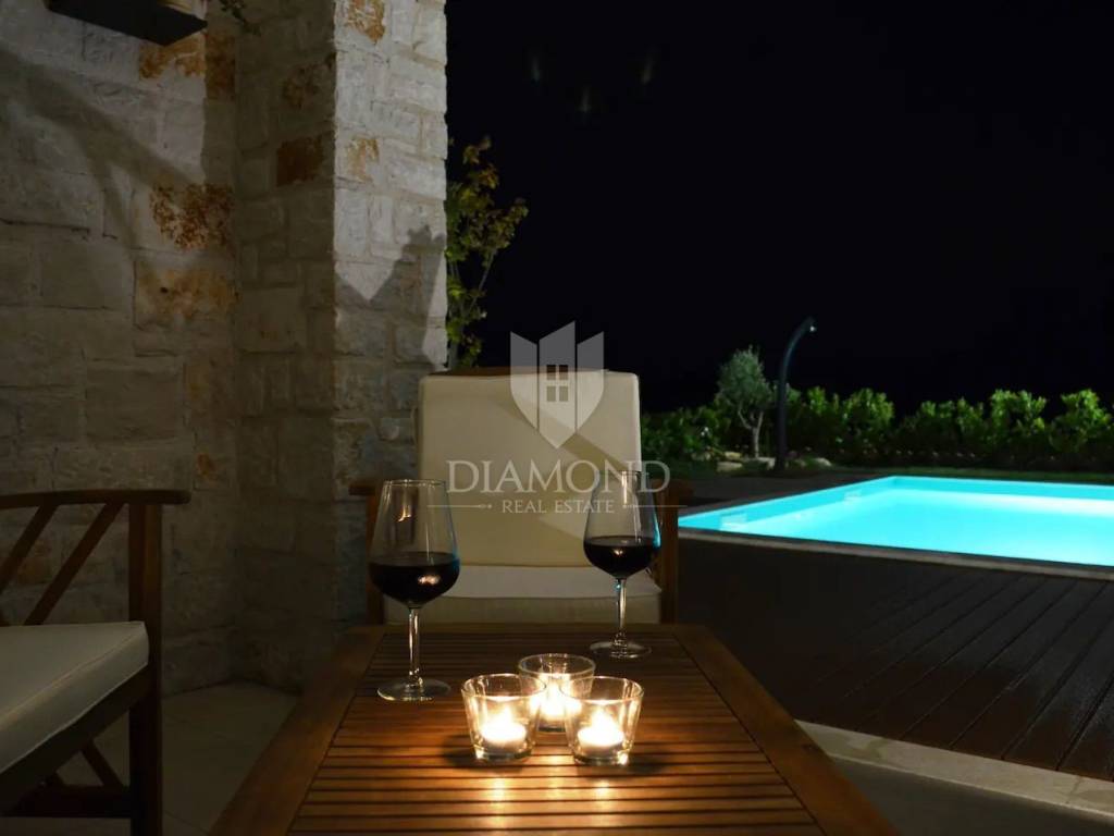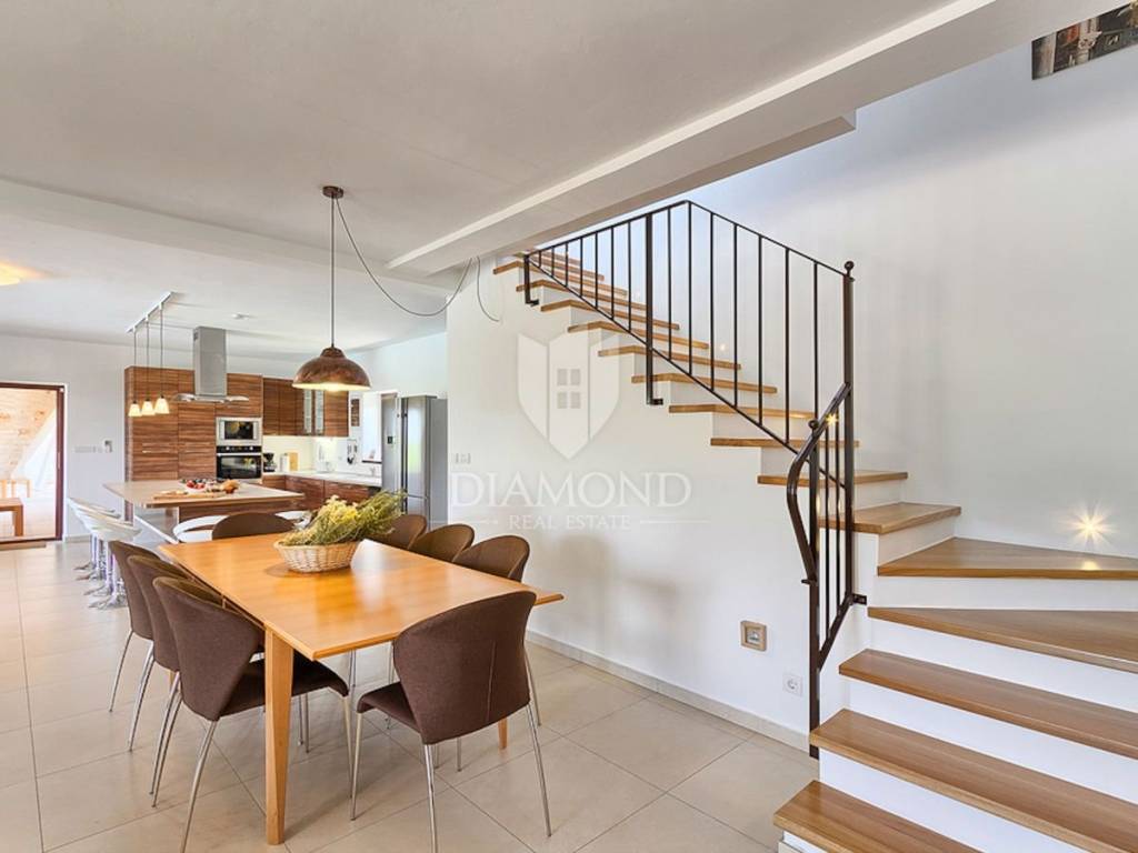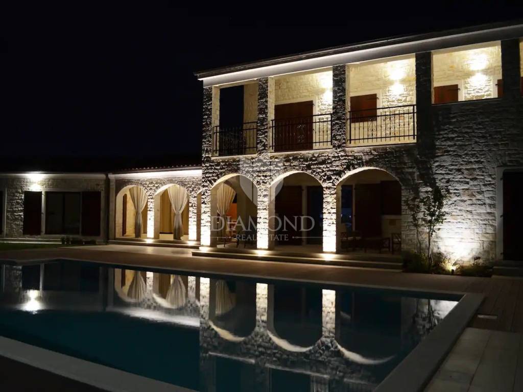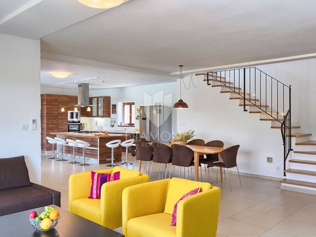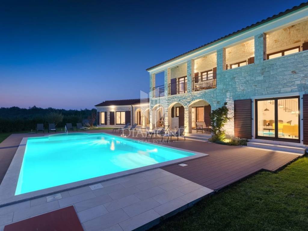 We are selling a beautiful villa with pool in one of the most beautiful locations in Central Istria. The villa is located on the edge of a small village near the town of Tinjan, surrounded by nature and beautiful greenery. The garden of the villa is fenced, offers its guests complete privacy, in the central part of the garden there is a large swimming pool and sun deck. The entrance to the Villa is paved, 2 parking spaces are covered and the rest of the garden has a landscaped lawn that has an irrigation system. The villa has an area of 238 square meters, built in the style of the indigenous Istrian Villa. It consists of large living areas and 3 bedrooms with attached bathrooms. The villa is equipped with quality custom-made furniture, all rooms are air conditioned, and there is electric underfloor heating in the living rooms and bedrooms. Large outdoor terraces are covered, in the yard there is a summer kitchen and the whole villa is sounded with quality speakers for an even better experience and relaxation from everyday life.