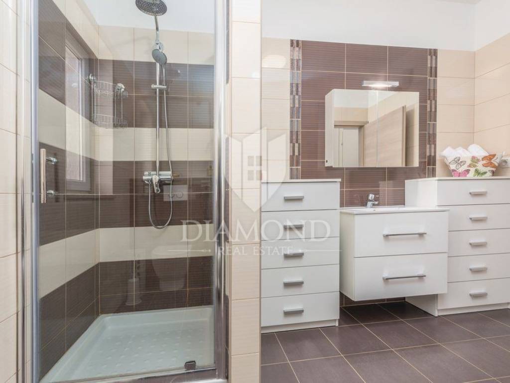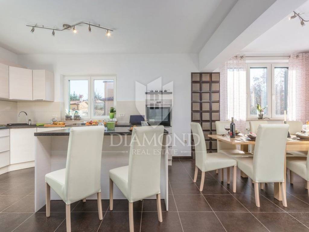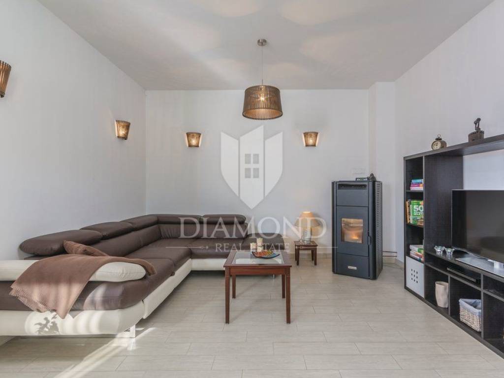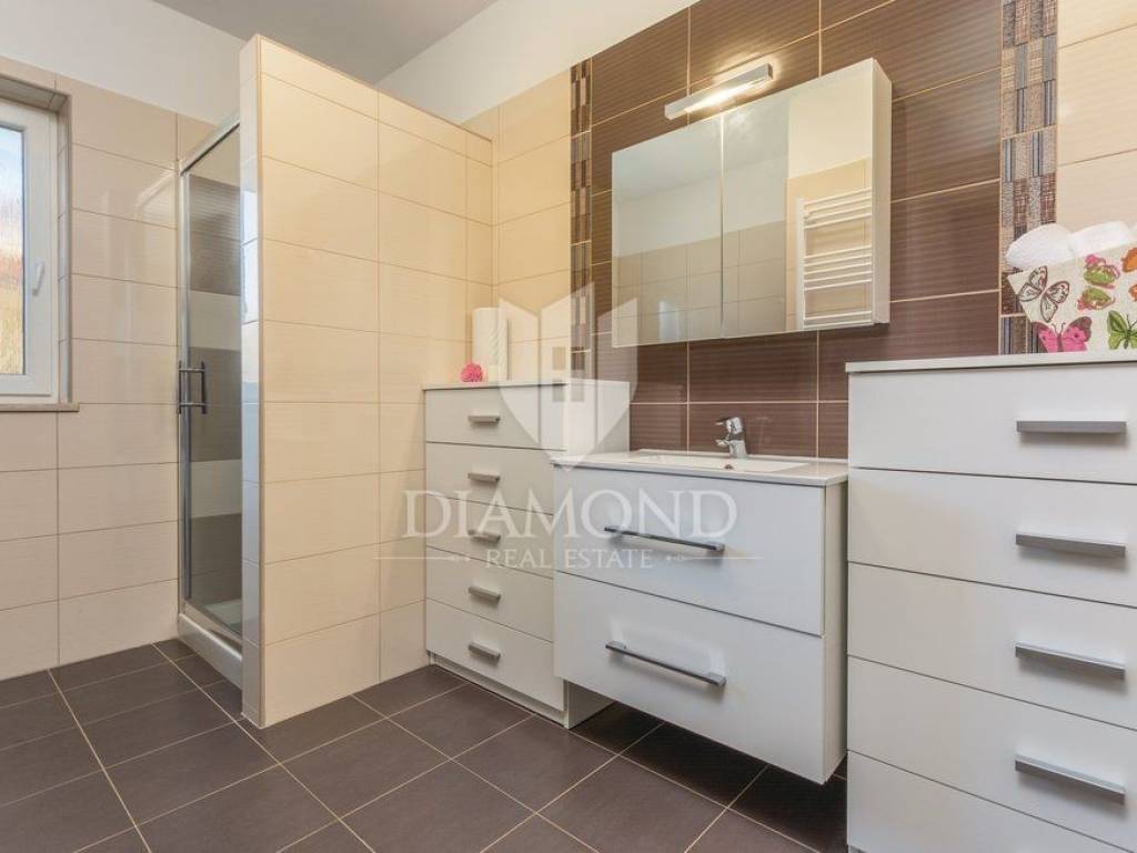 We are selling a holiday house in a small Istrian village, near the town of Labin. It is only 6.5 kilometers away from the tourist center, Rabac, a place with crystal clear sea and beautiful beaches. This house, measuring 143 square meters, spreads over two floors. On the first floor there is a living room, kitchen with dining area, one bedroom with bathroom and toilet. On the first floor there are two more bedrooms, each with its own bathroom, and one room opens onto a terrace, which offers a view of nature and greenery. From the hallway we go up to the gallery, which can also serve as another room. It is fully furnished with quality furniture, and each room and living room has its own air conditioning. The house also has central heating on pellets. Next to the pool is a spacious terrace where you can relax preparing your favorite barbecue dishes. In the yard, which is fenced and provides complete peace, there is a children's playground. The surrounding area is ideal for walking or cycling. The house is ideal for all those looking for peace and nature, or for rent, where the owner already has a well-established business.
