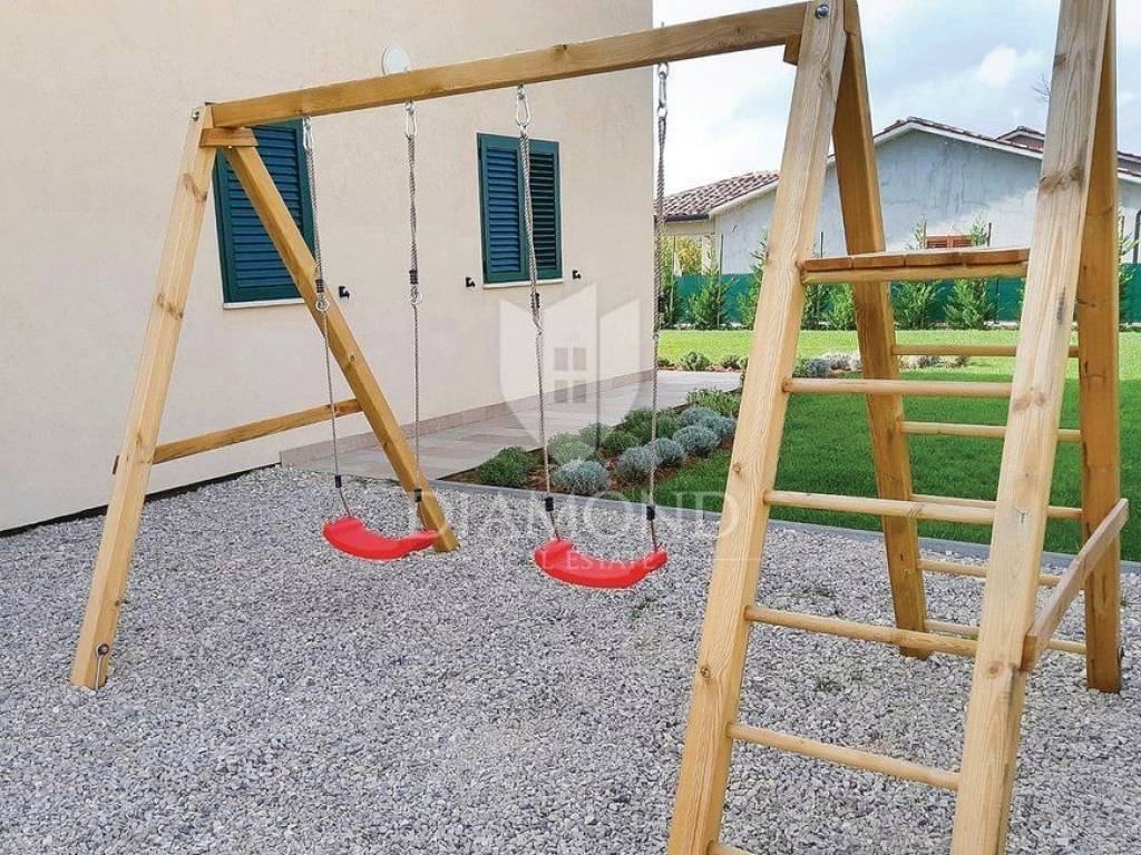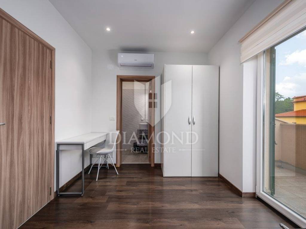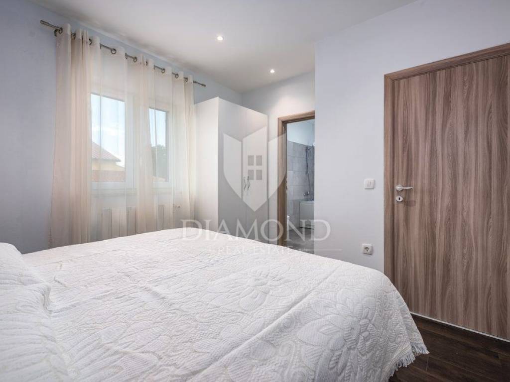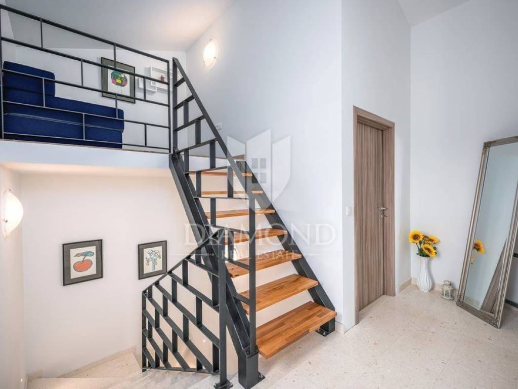 We are selling a holiday house in a small Istrian village, near the town of Labin. It is only 6.5 kilometers away from the tourist center, Rabac, a place with crystal clear sea and beautiful beaches. This house, measuring 143 square meters, spreads over two floors. On the first floor there is a living room, kitchen with dining area, one bedroom with bathroom and toilet. On the first floor there are two more bedrooms, each with its own bathroom, and one room opens onto a terrace, which offers a view of nature and greenery. From the hallway we go up to the gallery, which can also serve as another room. It is fully furnished with quality furniture, and each room and living room has its own air conditioning. The house also has central heating on pellets. Next to the pool is a spacious terrace where you can relax preparing your favorite barbecue dishes. In the yard, which is fenced and provides complete peace, there is a children's playground. The surrounding area is ideal for walking or cycling. The house is ideal for all those looking for peace and nature, or for rent, where the owner already has a well-established business.