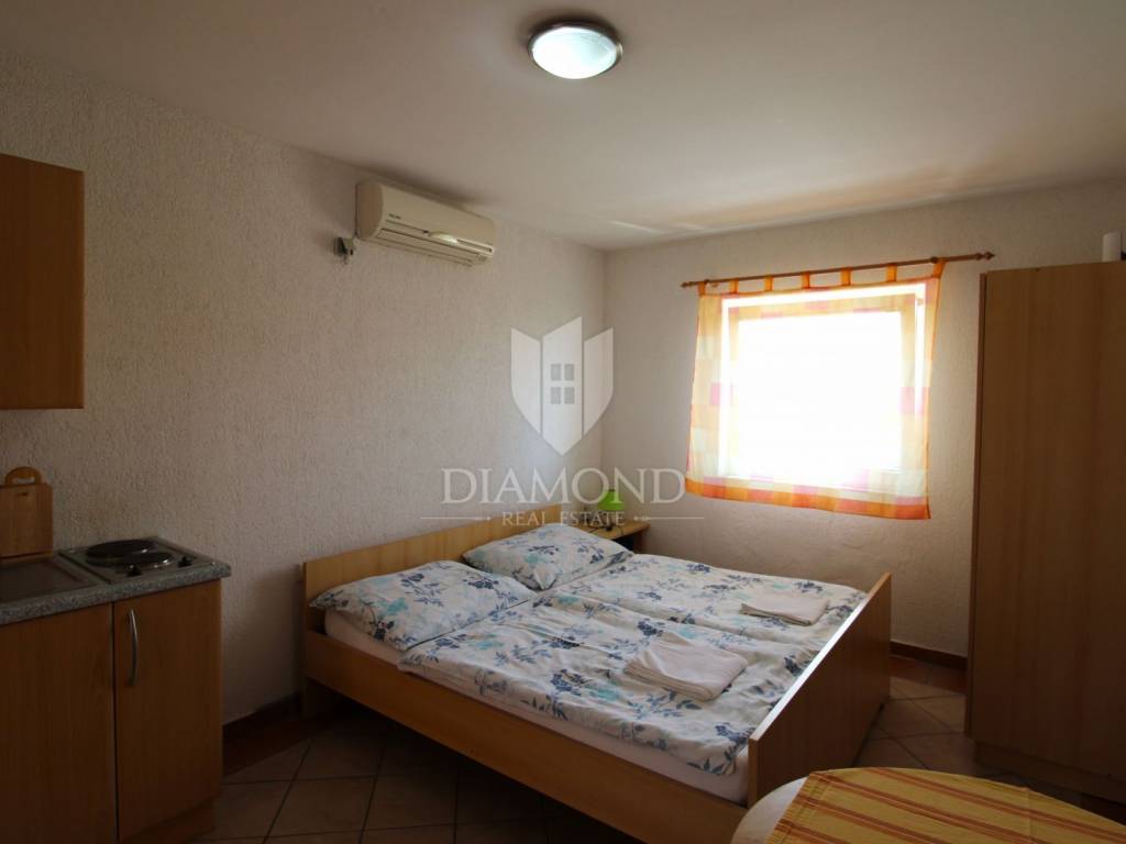 Located just a short walk from the sea, in a quiet part of Omišalj, this well-established apartment house offers a beautiful sea view and a developed rental business – an ideal opportunity for those seeking a ready-to-go, stable investment.