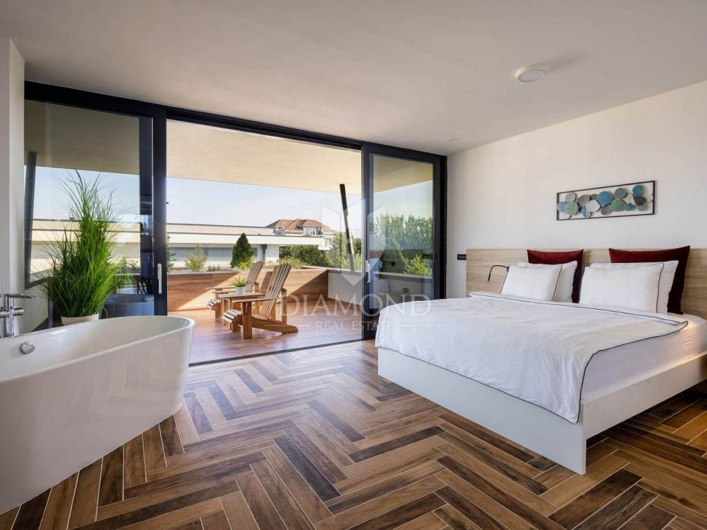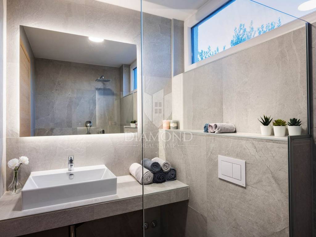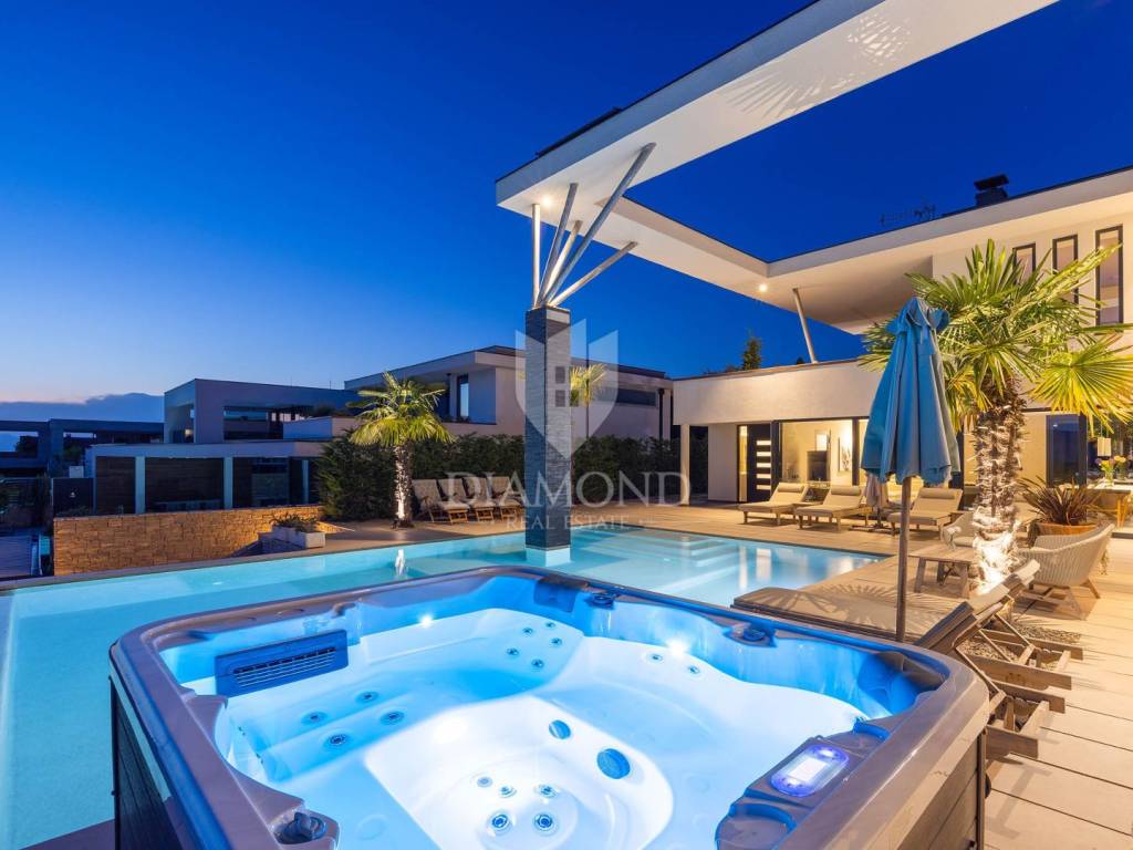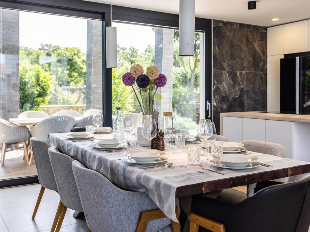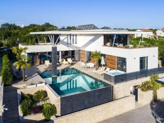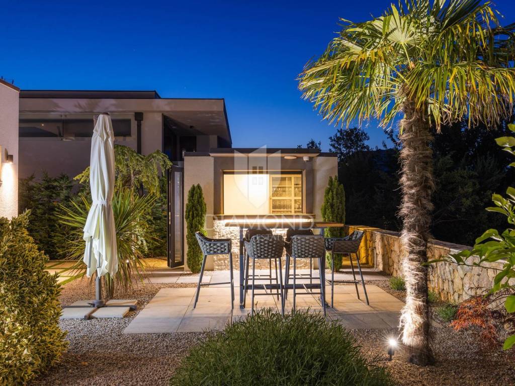 In a prestigious location on the island of Krk, this superb modern villa is located, perfectly combining luxury, comfort and refined design. The villa is spread over a spacious plot and offers five elegantly decorated bedrooms, each with its own bathroom, ensuring complete privacy and comfort. At the center of the outdoor space is a spectacular infinity heated pool with a view that extends towards the crystal clear sea, creating the impression of complete connection with the Mediterranean landscape. The interior of the villa is designed with an emphasis on contemporary design, high functionality and the use of the highest quality materials. The spacious living room, open-plan kitchen and dining room form the heart of the house, the perfect place to relax or socialize. The villa is fully equipped and furnished with carefully selected pieces of furniture and equipment from top brands, ready to move in or for luxury rental. Every detail has been carefully thought out, and the architectural design is signed by a renowned design team, making this property a unique combination of aesthetics and functionality. This exclusive villa represents the ideal blend of luxury, privacy and Mediterranean atmosphere, perfect for those looking for a top-notch property in one of the most sought-after destinations on the Croatian coast.