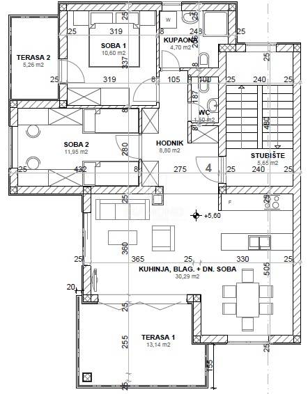 The apartment is situated on the first floor of the building and has a total area of 68 m².