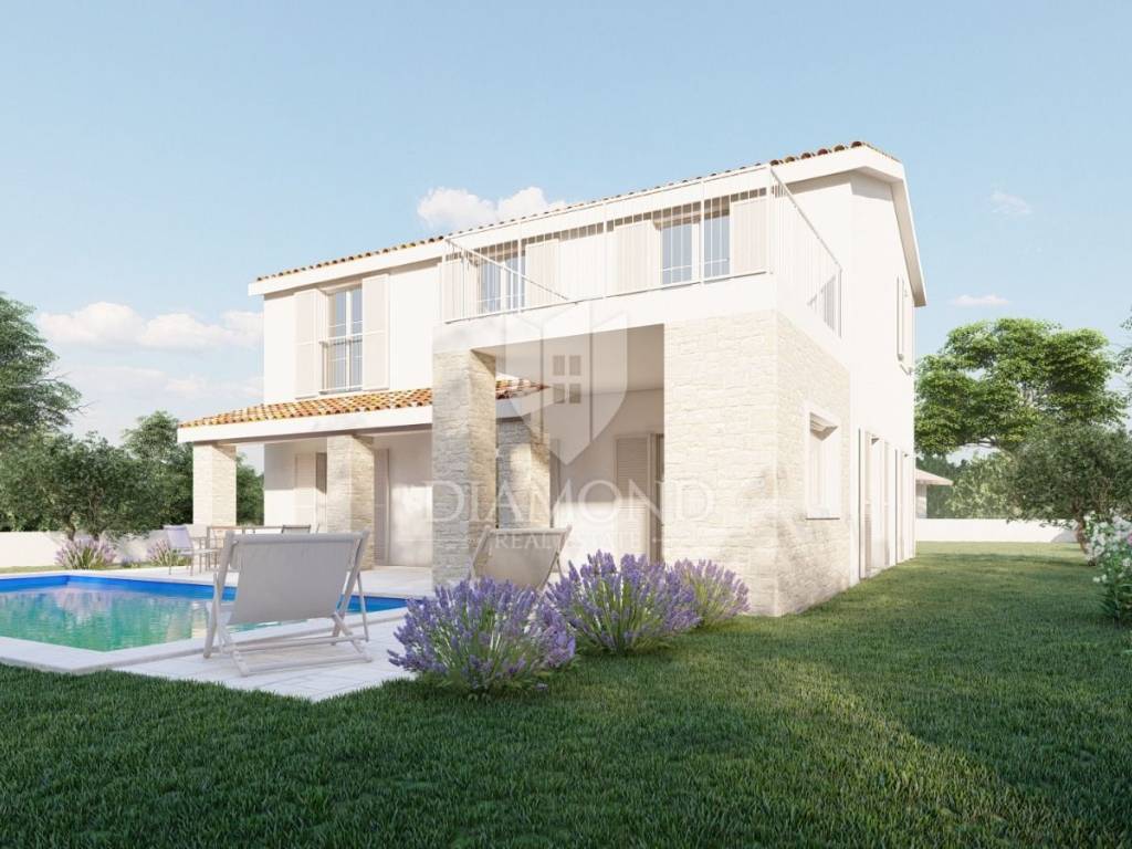 In a small place between Lim Channel and Vrsar, a modern house with authentic details is being built. The total net area of the house is 144 m2, with a 32 m2 pool and a spacious yard.