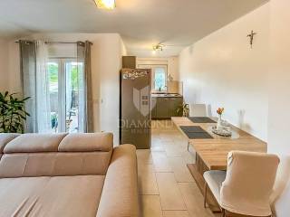 U ponudi je elegantan i prostran stan od 65 m², smješten u mirnoj zoni Novigrada, samo 2.5 km od živopisnog centra i kristalno čistog mora. Ovaj pažljivo uređen stan odiše svjetlošću i toplinom, a raspored prostorija pruža savršen spoj udobnosti i funkcionalnosti. Prostrani dnevni boravak povezan je s moderno opremljenom kuhinjom i blagovaonicom, dok dvije udobne spavaće sobe pružaju miran kutak za odmor. Izlaz na privatni balkon poziva na uživanje u jutarnjoj kavi ili zalascima sunca uz pogled na zelenilo.
