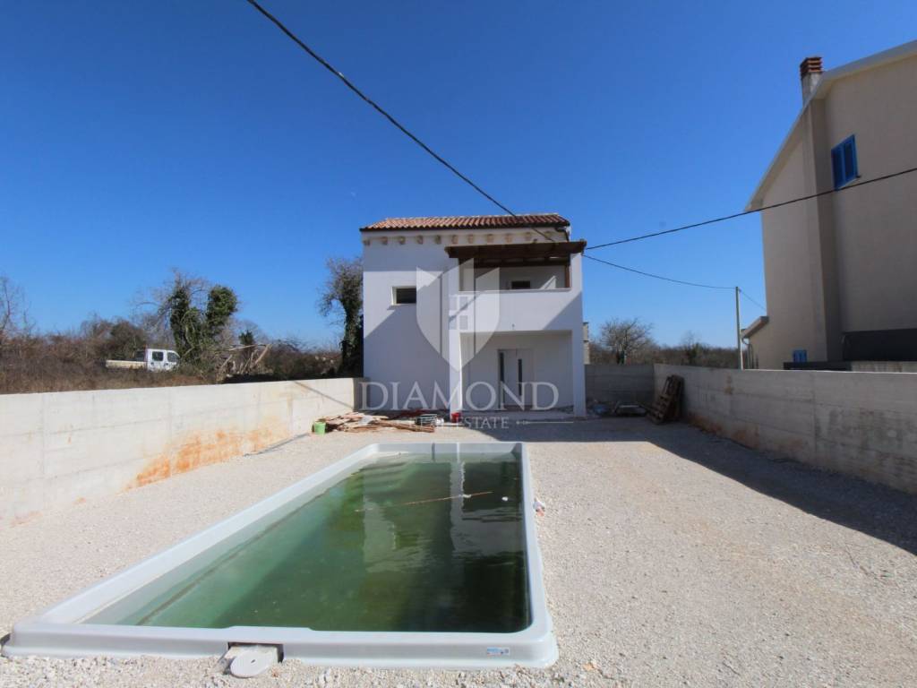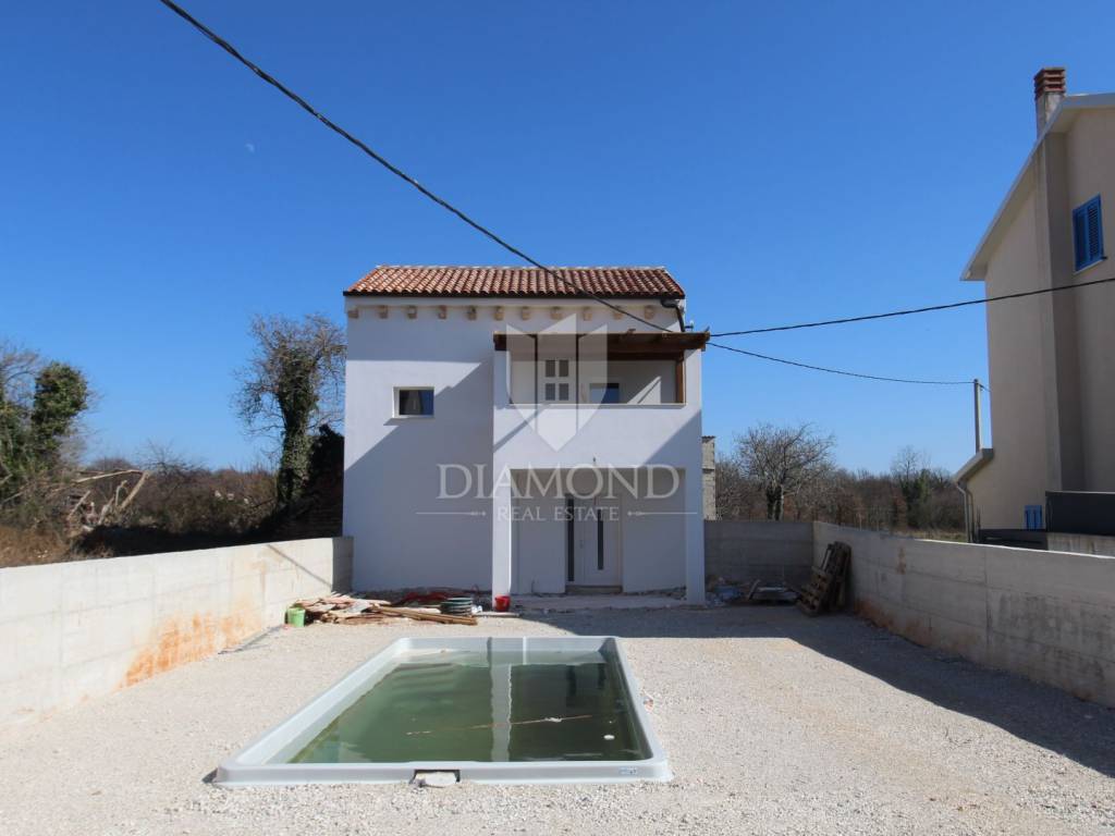 In a quiet Istrian village, a newly renovated house of 85 m² is for sale, ideal for family life or tourist rental. The house is spread over three floors, with the ground floor featuring a spacious living room connected to the kitchen and dining room. The second floor has one bedroom, bathroom and terrace, while the third floor has two bedrooms and an additional bathroom. In front of the house is a 7x4 meter swimming pool, perfect for relaxing and enjoying the summer months. The house is currently under construction, which allows the future owner to decorate the interior according to their own wishes. Located in a location with excellent connections to Pula and Rovinj, this property offers a combination of peace and privacy with easily accessible cultural and natural beauties that Istria offers.