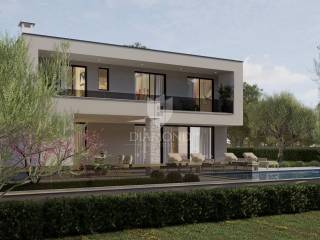 Labin, surroundings, a house under construction in a great location is for sale. This two-story house with a beautiful concept has a total living area of 170 m2. It consists of three bedrooms with private bathrooms, a spacious living area that includes a kitchen, dining room and living room, as well as a guest toilet, pantry, storage room. The living area is connected to an outdoor covered terrace and a garden where a place for a swimming pool is planned. The roh-bau phase of construction of this house includes preparatory work, including excavation and leveling of the terrain, construction of the foundation and foundation wall, masonry work that includes external and internal partition walls, roofing work with tin finishes and installation of external joinery.