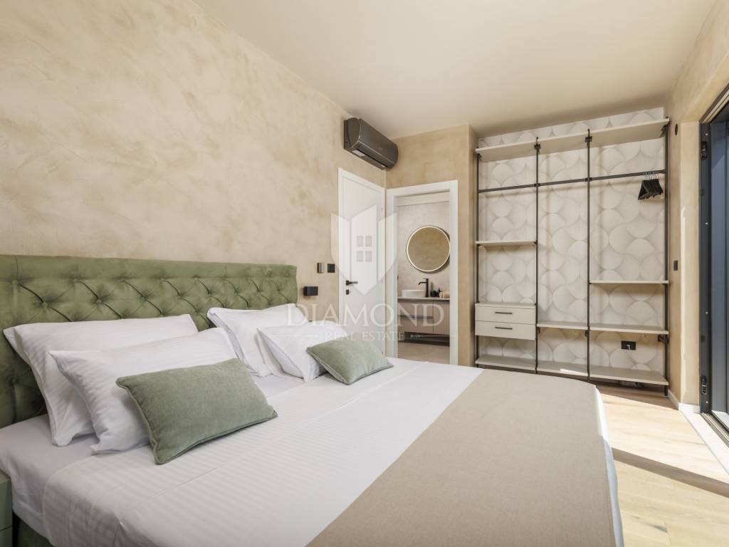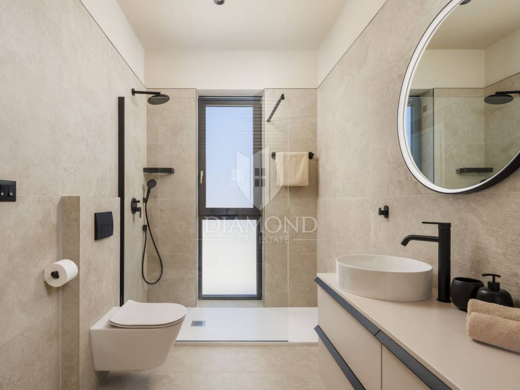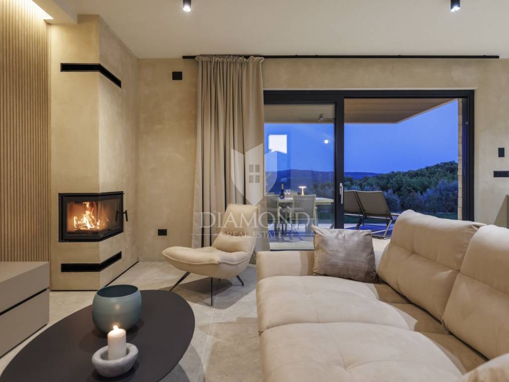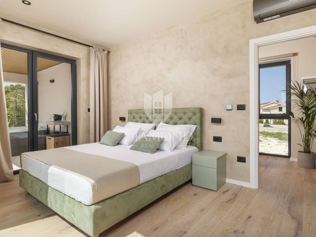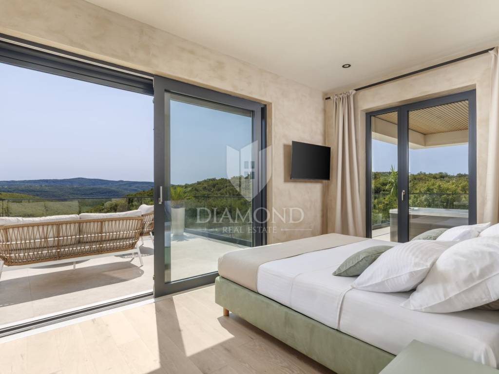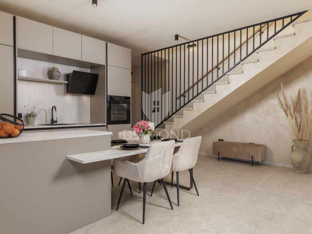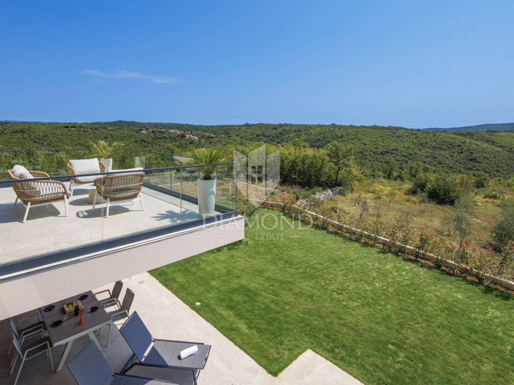 In a quiet area near Labin, a modern house with a swimming pool is for sale, located on the very edge of the village. The location of the property allows you to enjoy the authentic atmosphere of an Istrian town, ensures privacy and peace, while at the same time offering quick access to the sea and all the city amenities of Labin.