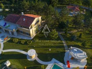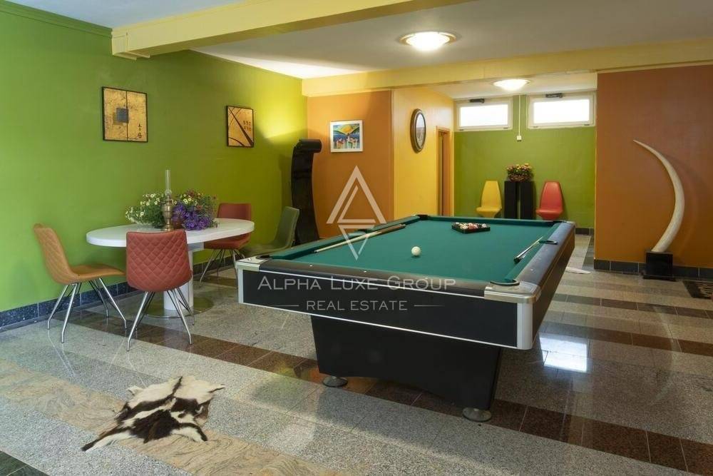 This exquisite villa spans a living space of 800 m2, set within a sprawling 41,558 m2 garden. The property's basement is a haven of leisure, featuring a Brunswick pool table, a well-stocked wine cellar, a fitness area, and a relaxing sauna, perfect for unwinding in style.