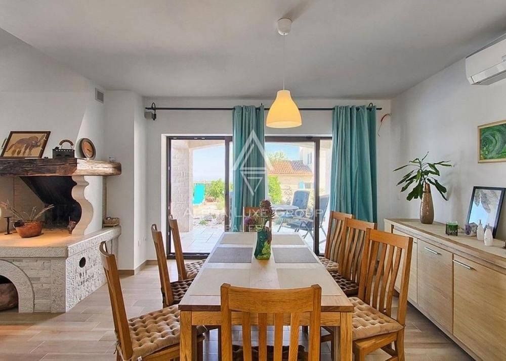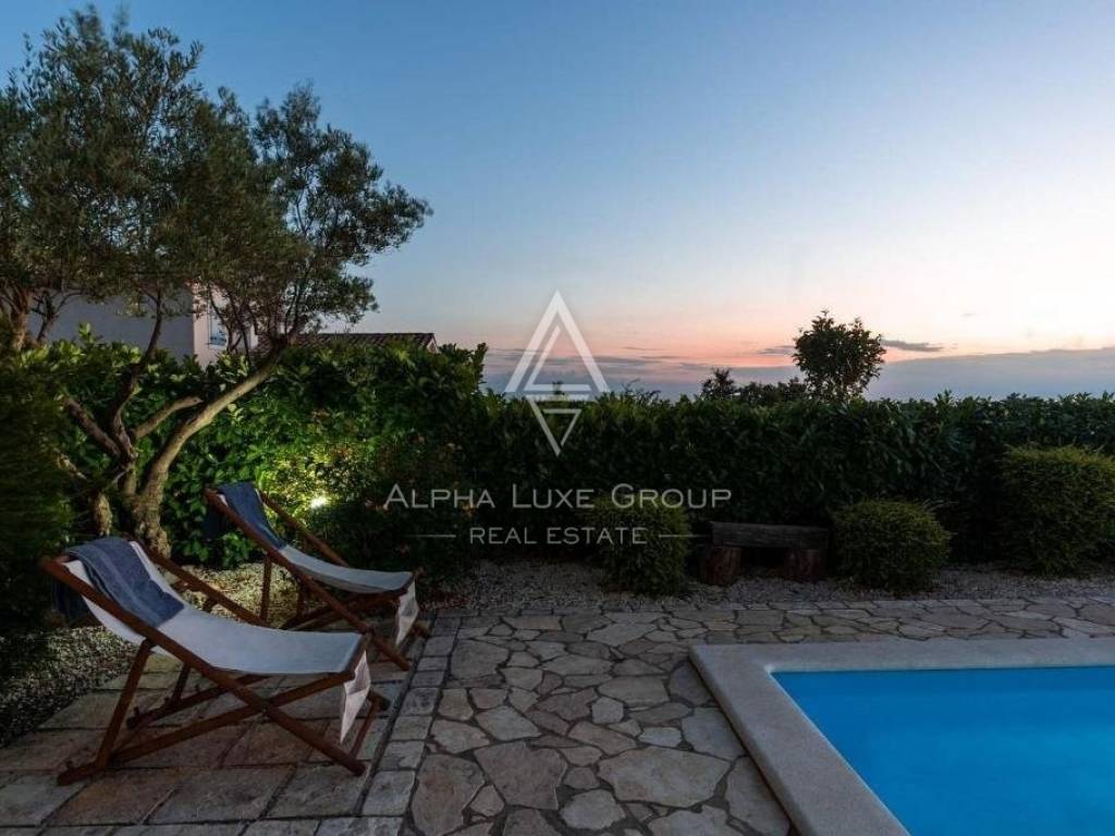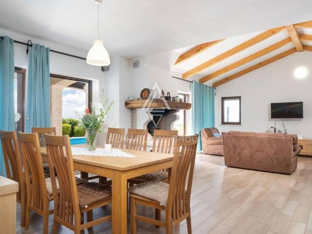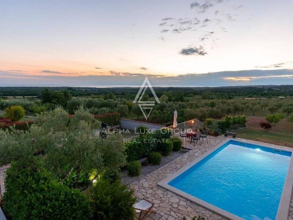 In the enchanting region of Istria, set against the vibrant backdrop of Višnjan, a villa of remarkable charm and panoramic views awaits. Višnjan, a vibrant town known for its picturesque landscapes and rich cultural tapestry, is home to this exquisite property. Perched on the village's edge, the villa offers breathtaking vistas that capture the essence of Istria's beauty.